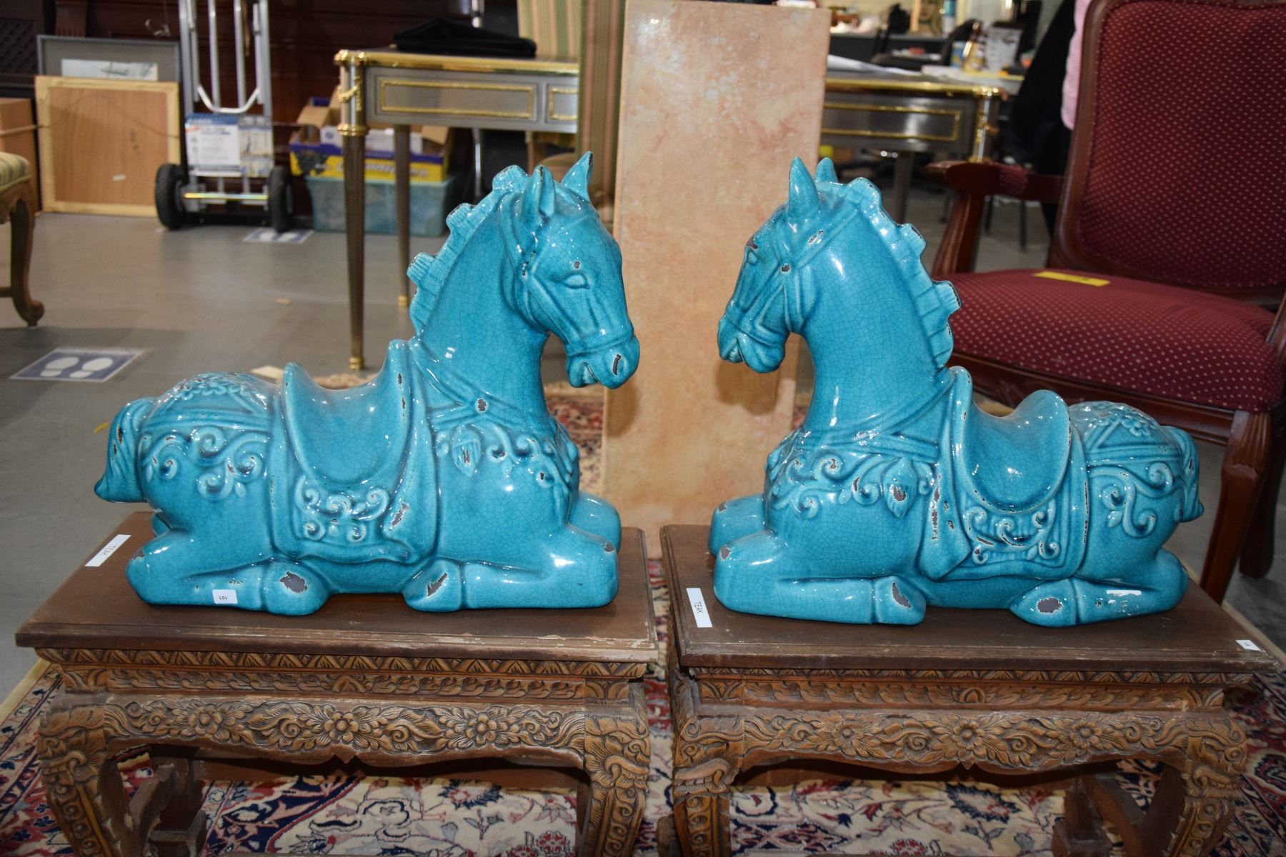 CERAMIC HORSE STATUES (18" X 6 1/2" X 14 1/2") (PAIR)
