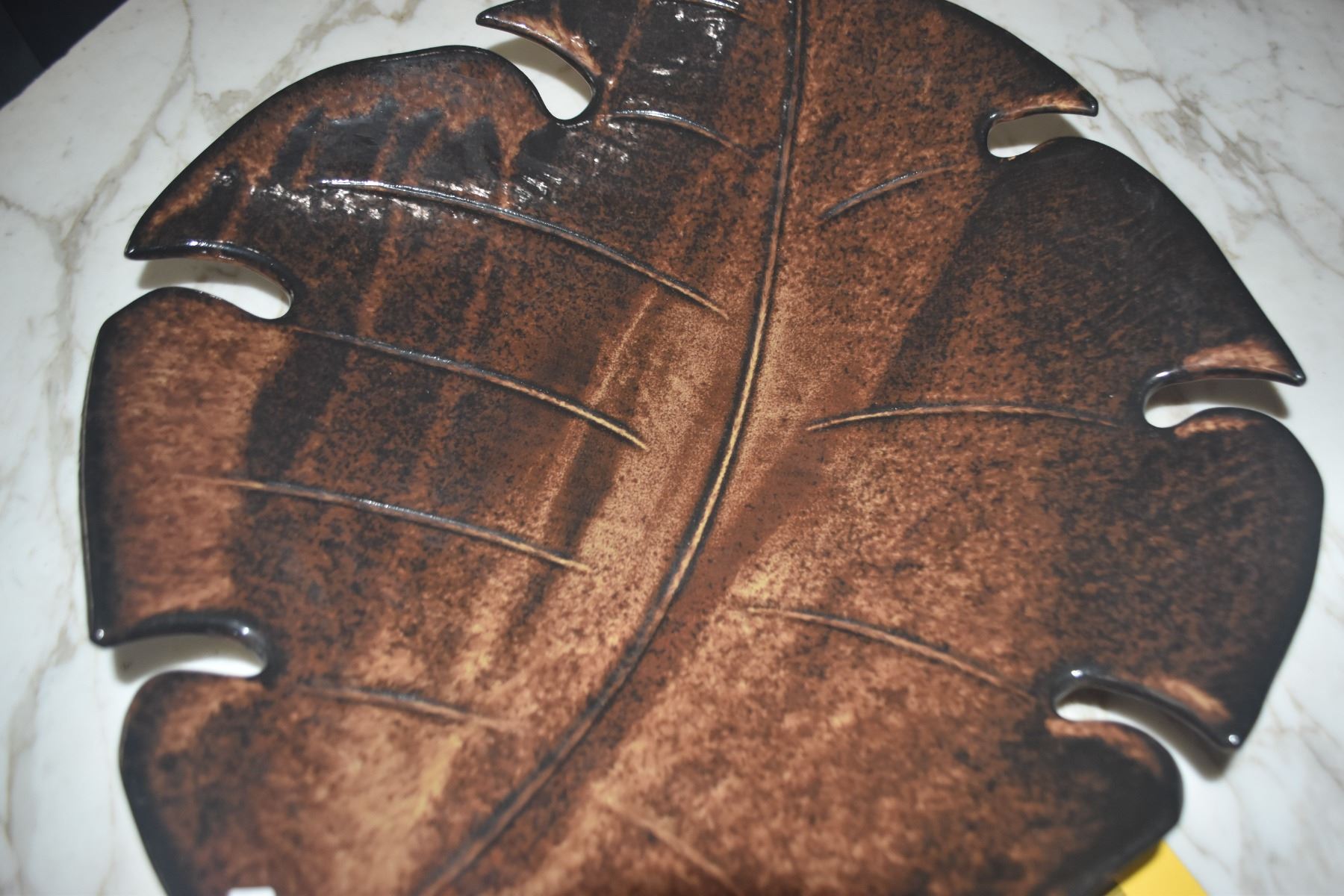 CERAMIC LEAF BOWL; SIGNED