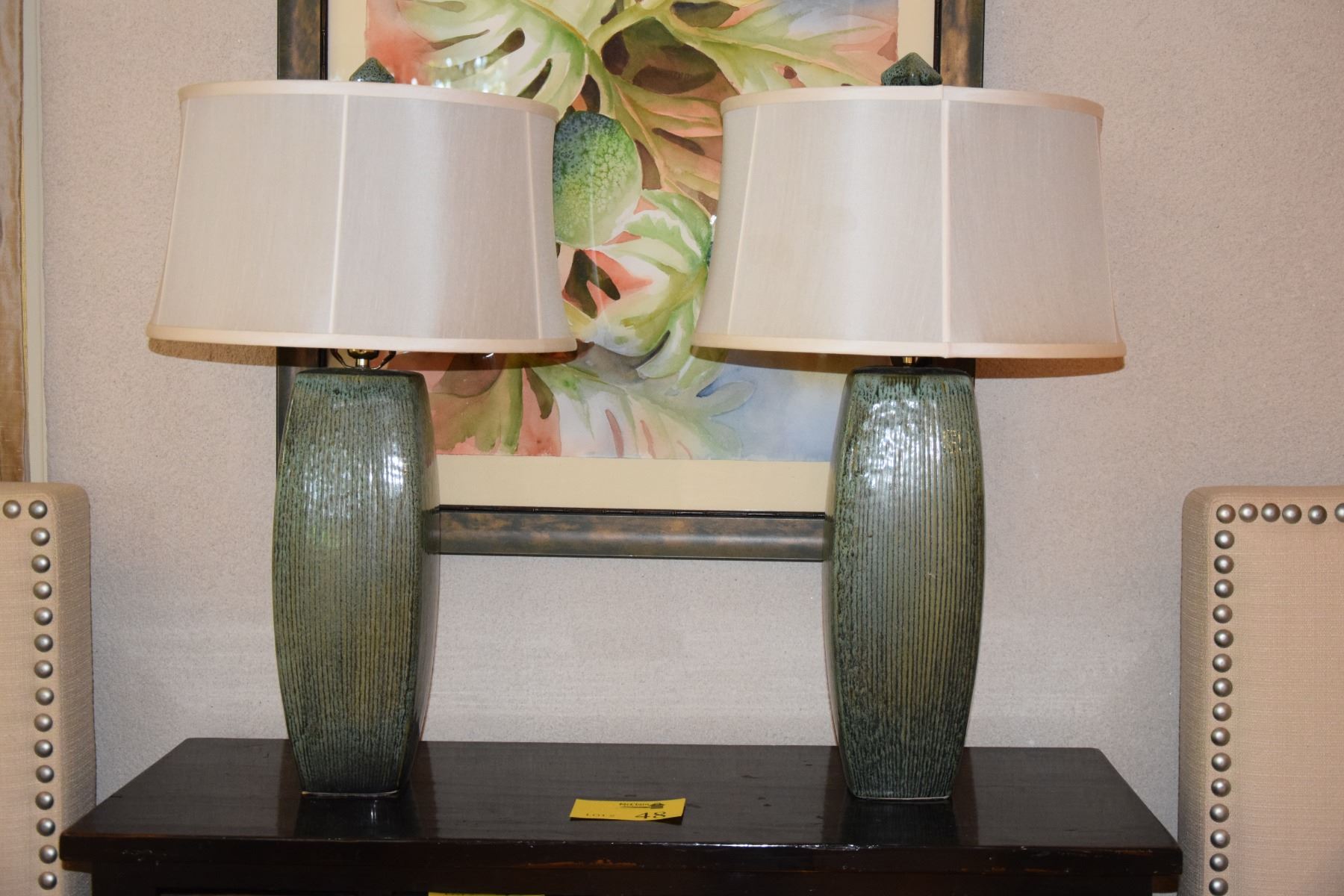 CERAMIC TABLE LAMPS W/SHADE (27" H) (PAIR)