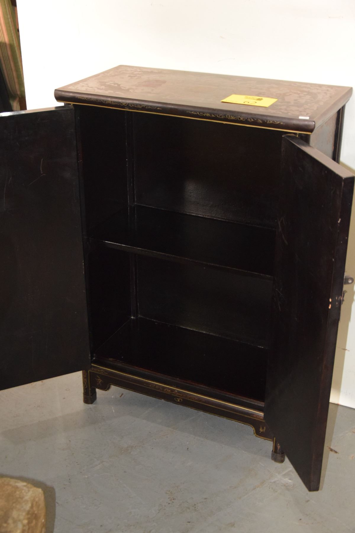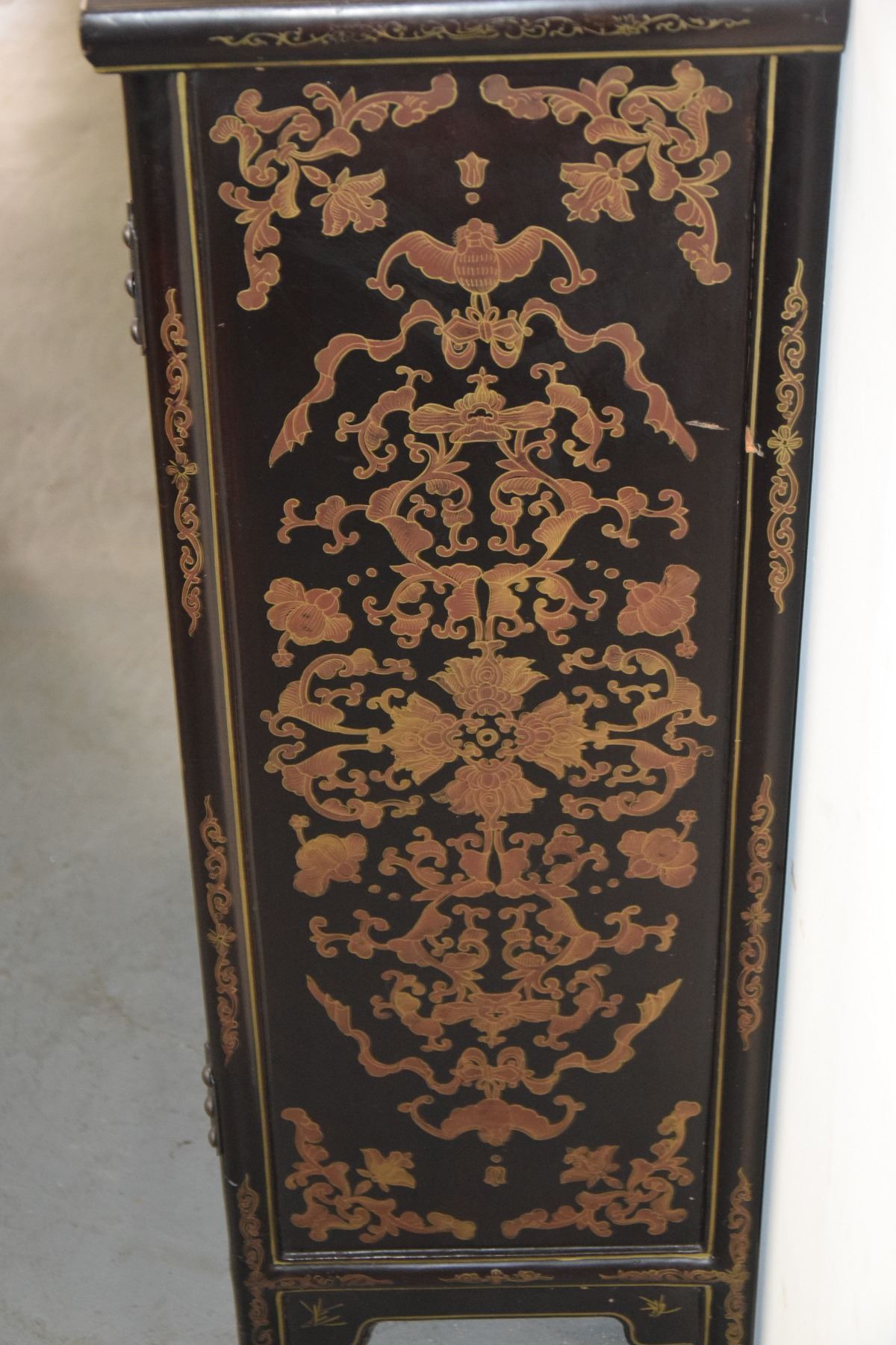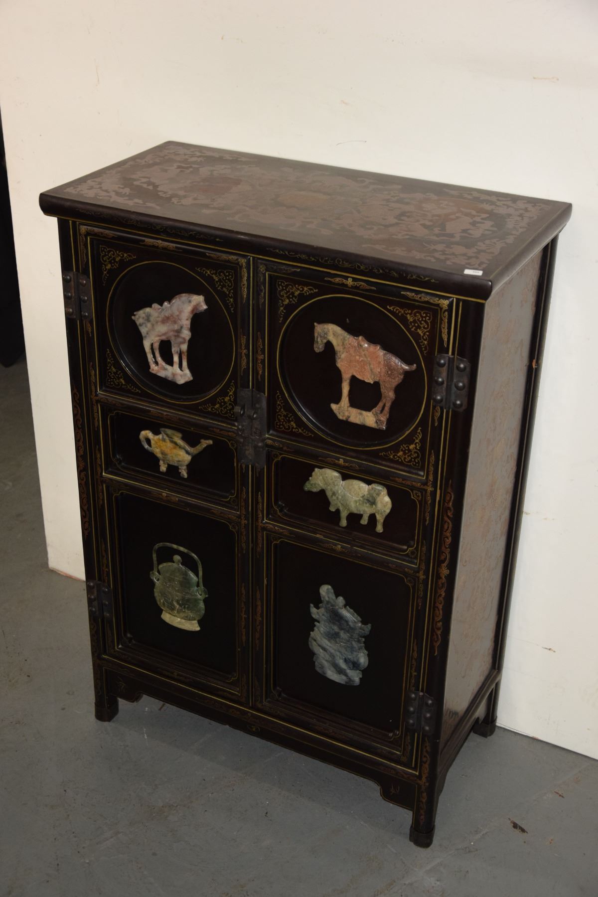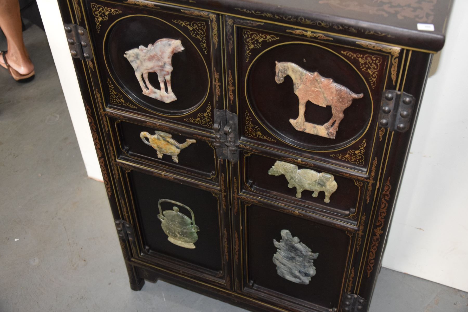 CHINESE 2 DOOR BLACK LACQUER CABINET W/JADE ACCENTS