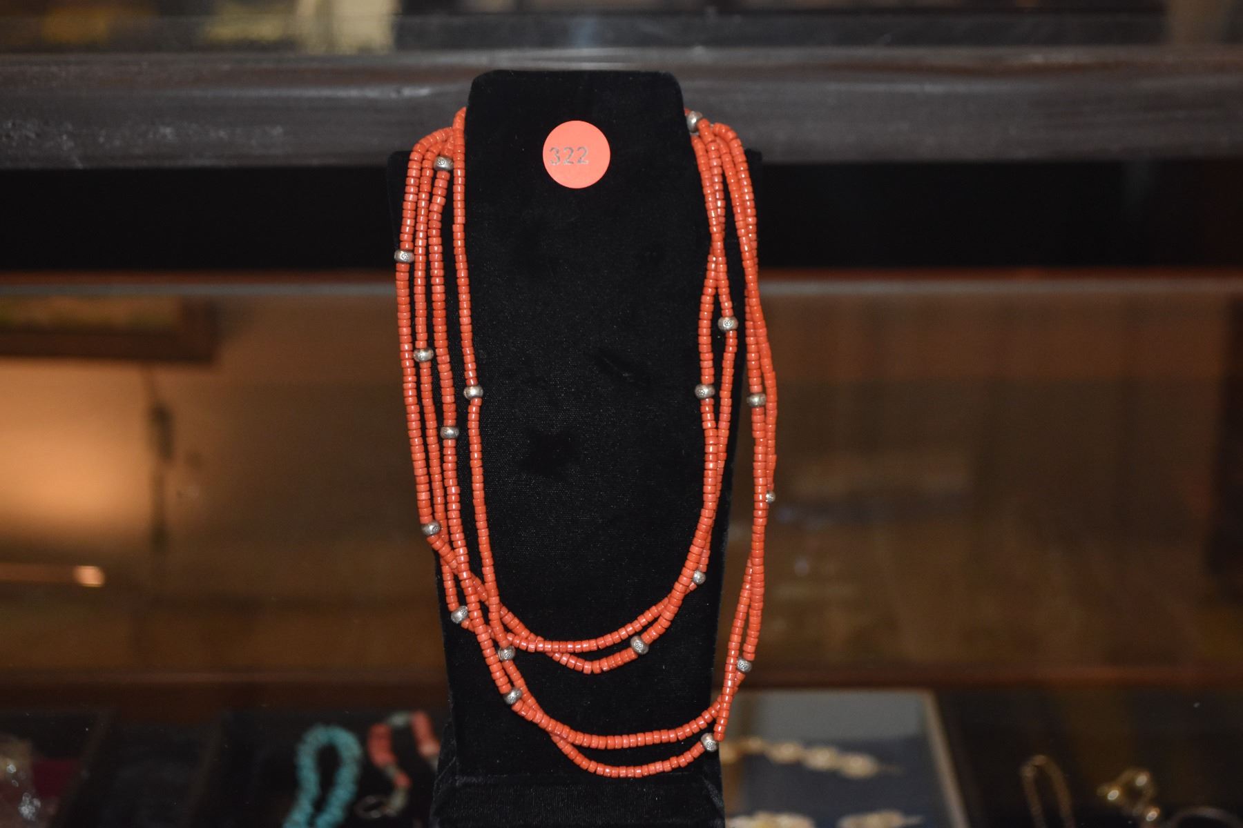 CHINESE 2 STRAND SILVER RED CORAL NECKLACE (36")