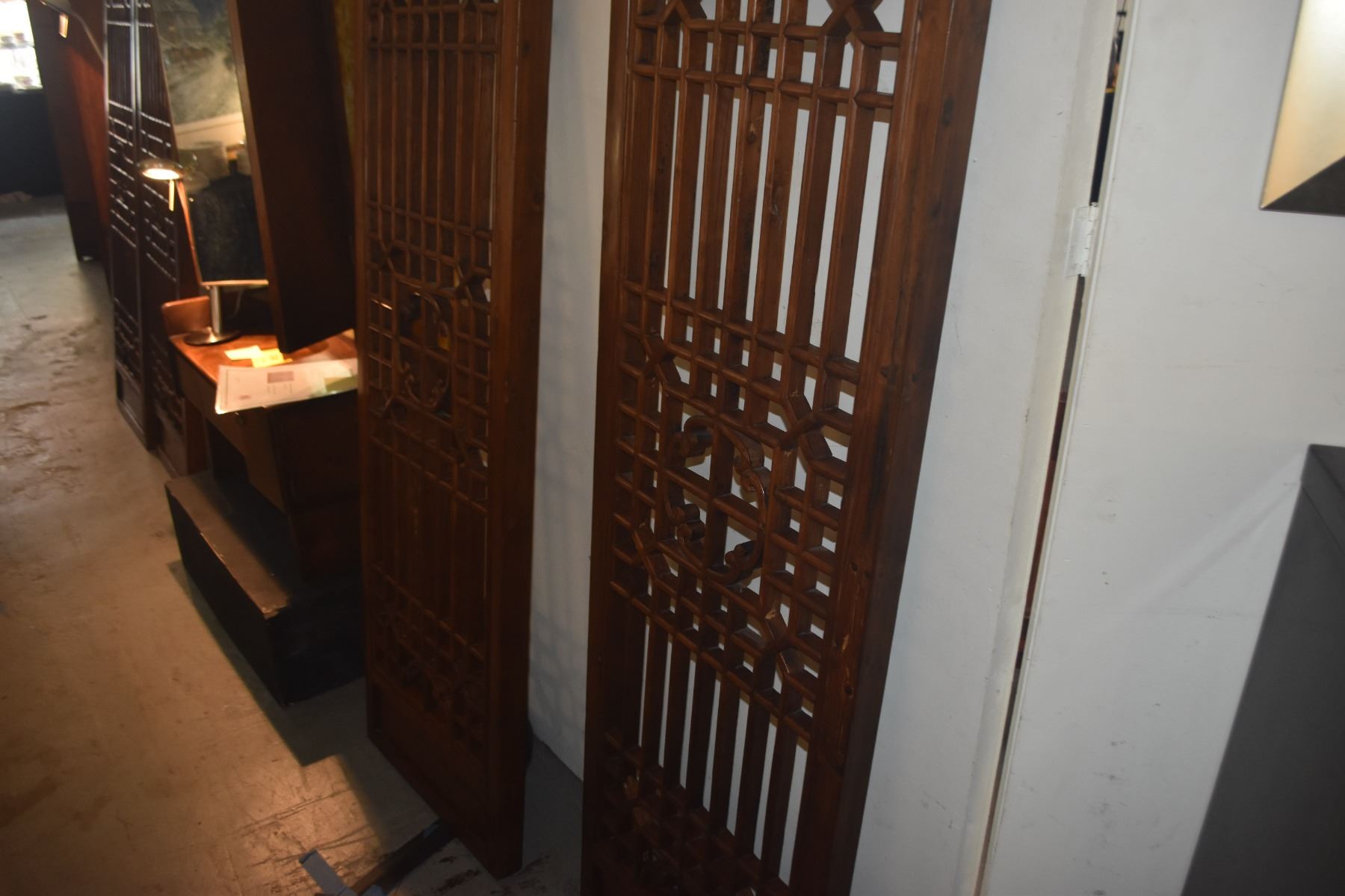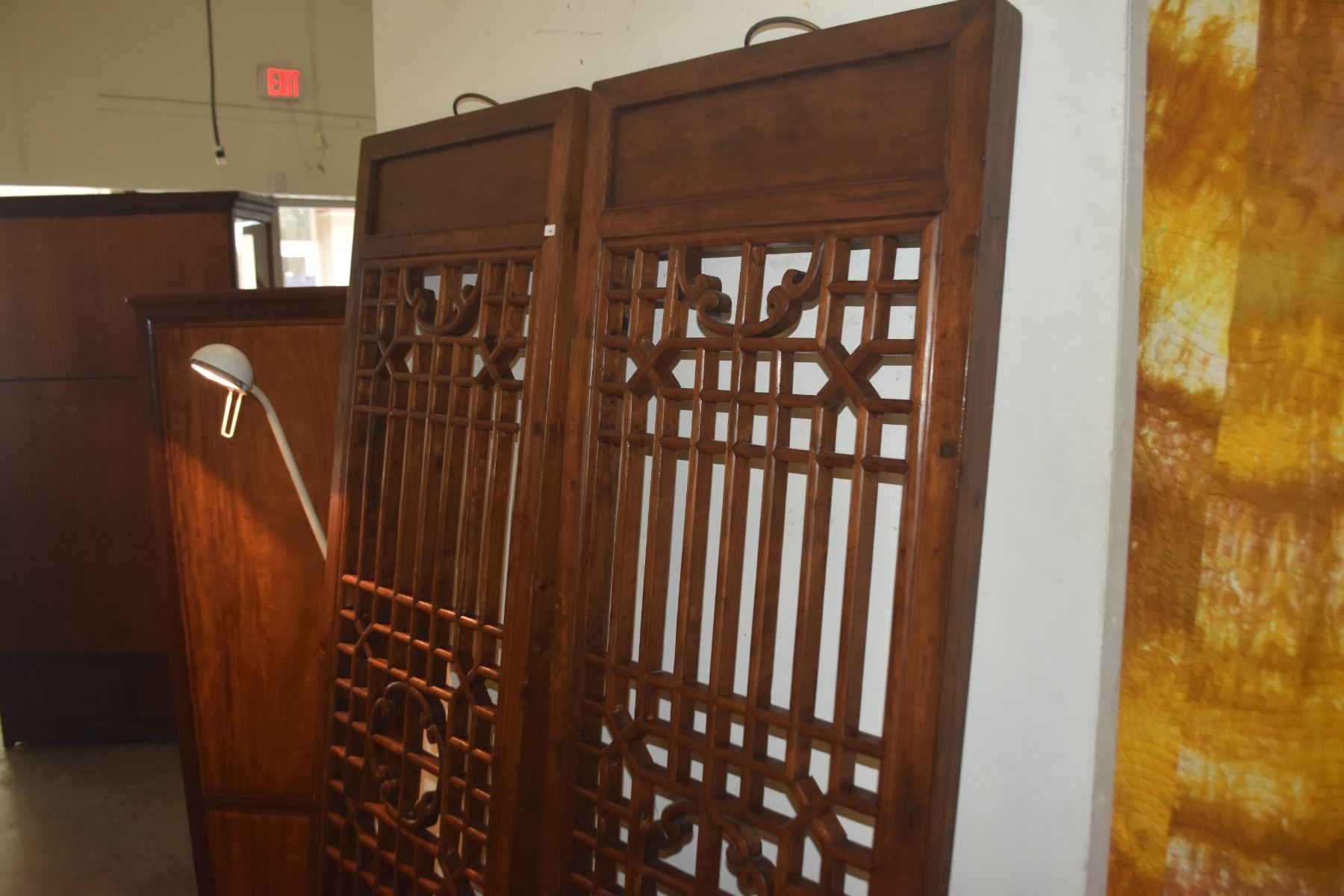 CHINESE 4 PANEL OPENWORK WOOD PANELS W/HANGERS (60 1/2" X 69 1/4" EA.) (4 PCS)