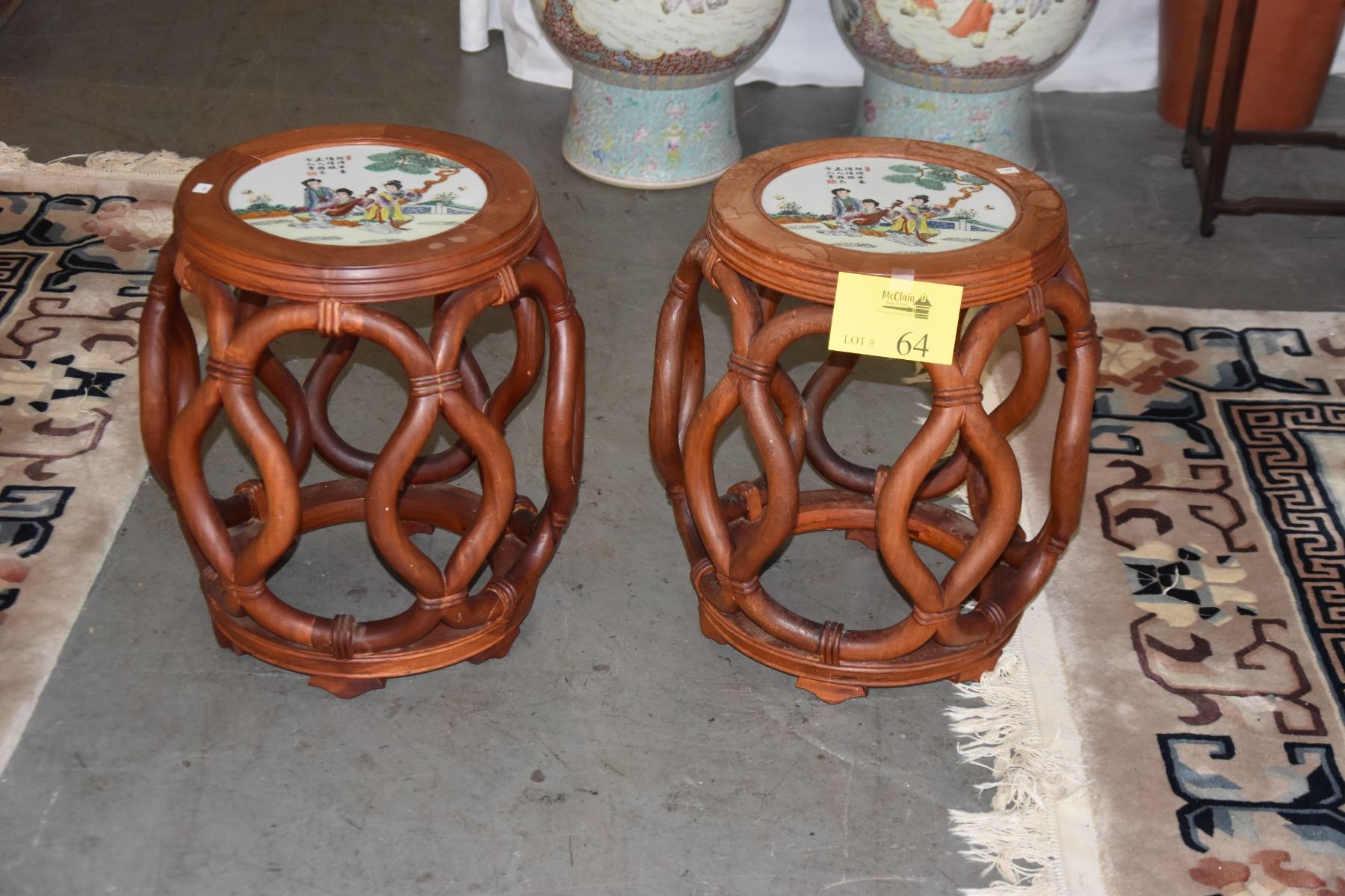 CHINESE BARREL STOOLS W/PORCELAIN INSET (PAIR)