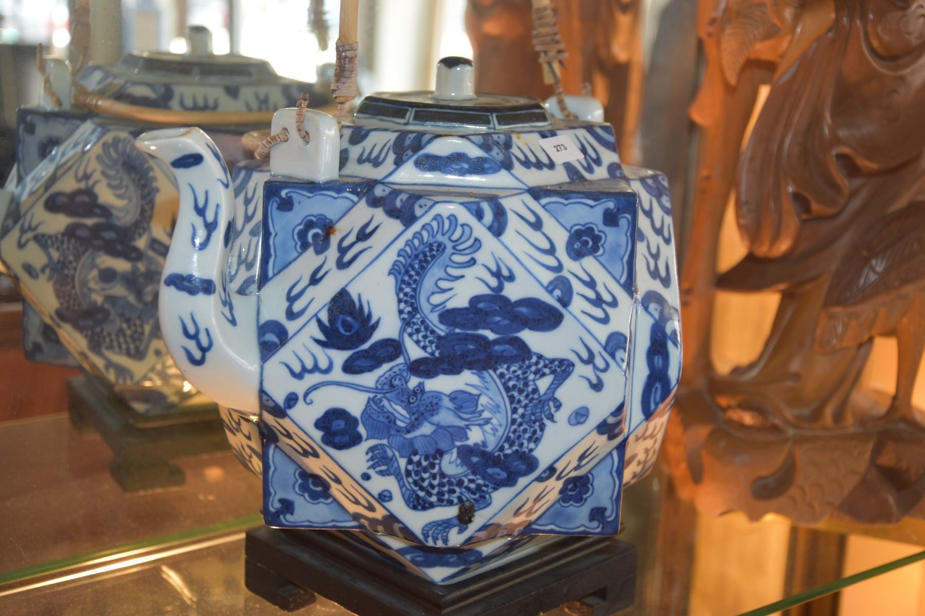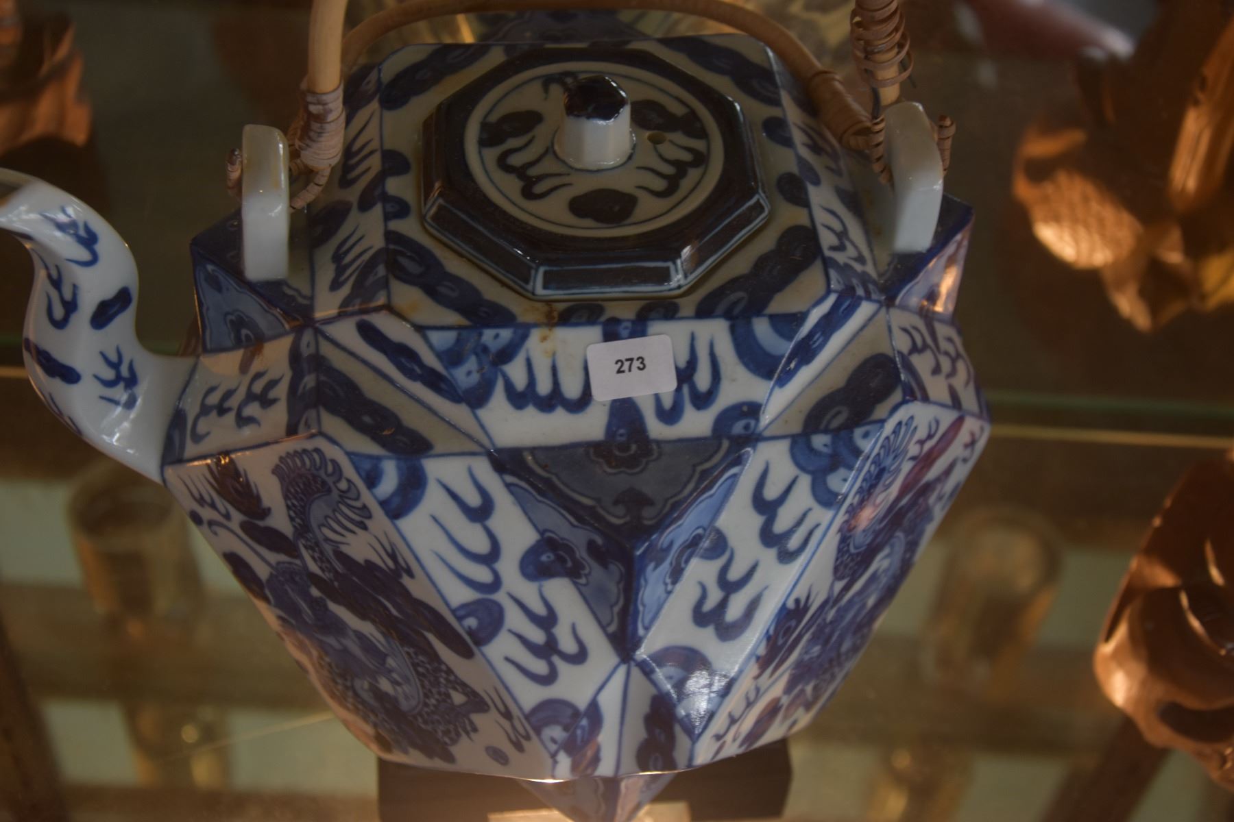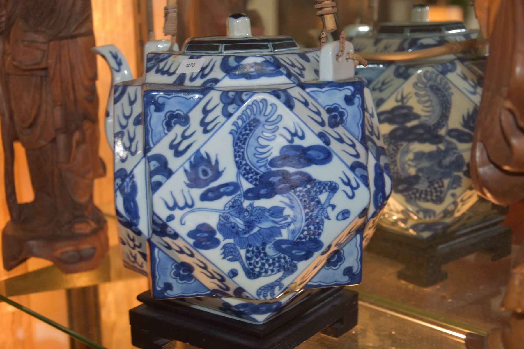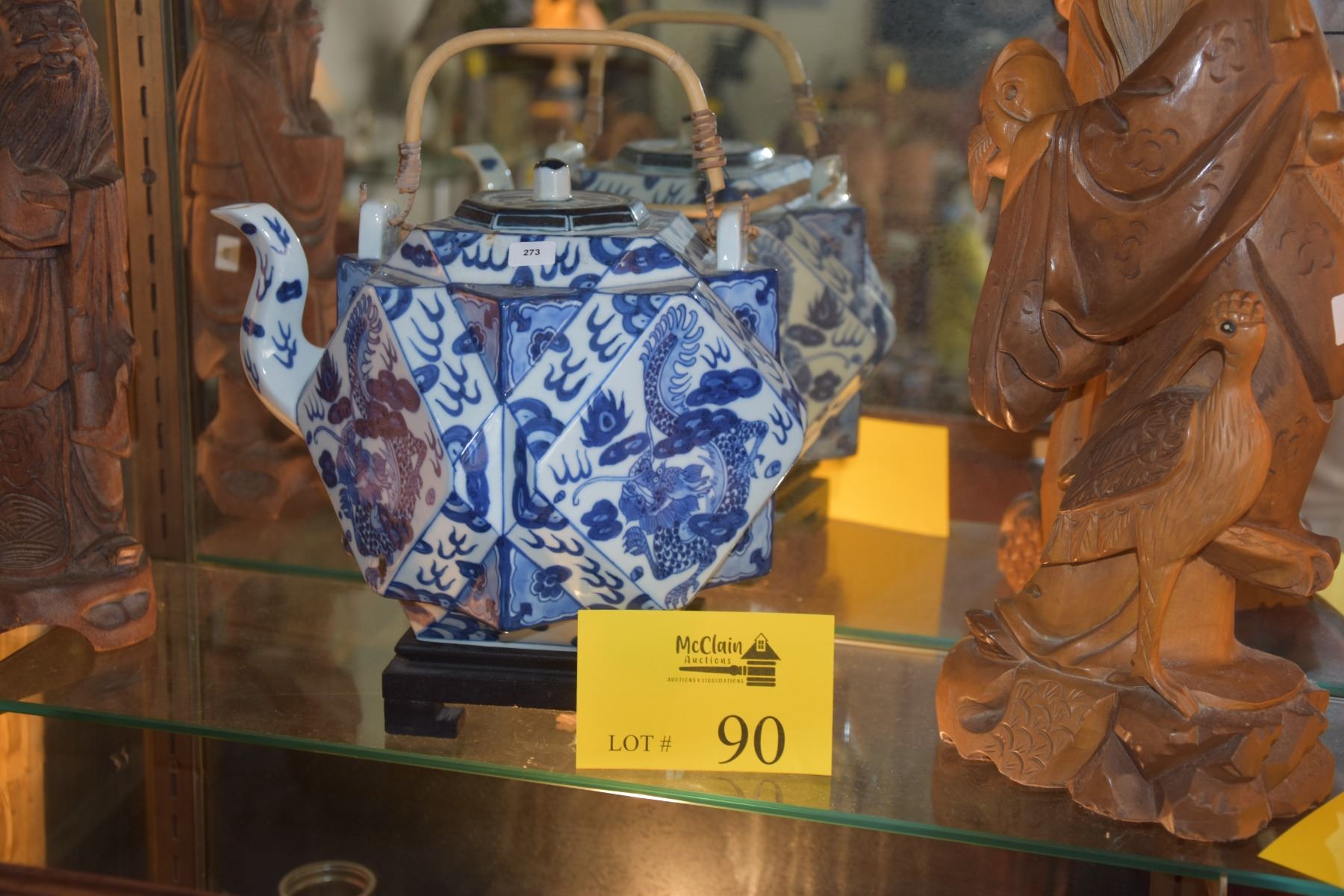 CHINESE BLUE & WHITE LARGE TEAPOT W/DRAGON MOTIF