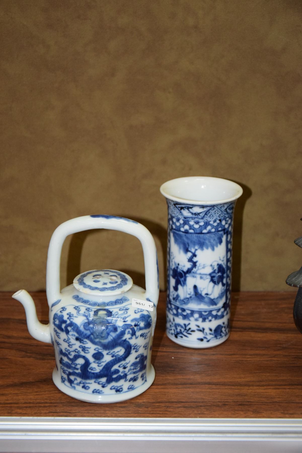 CHINESE BLUE & WHITE PORCELAIN VASE & TEAPOT (2 PCS)