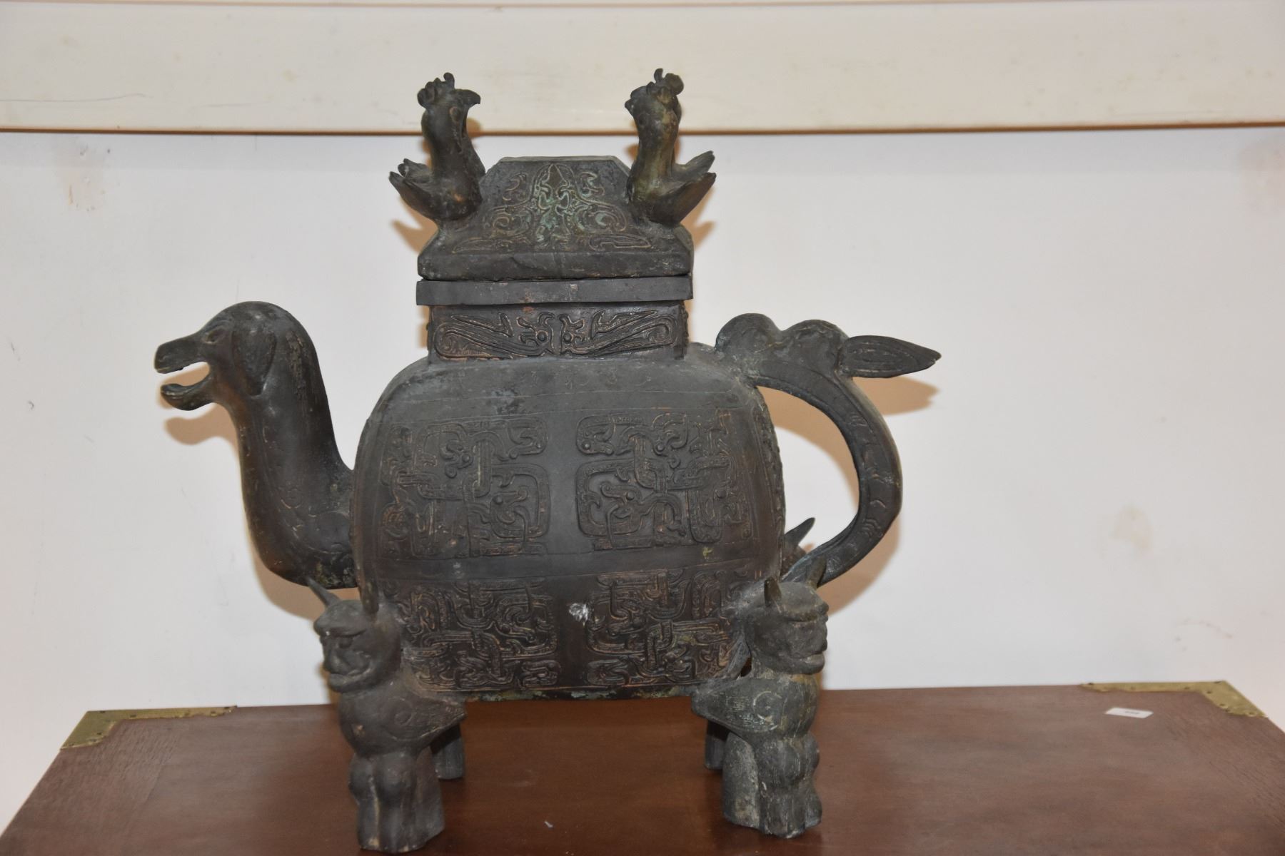 CHINESE BRONZEWARE PHOENIX BIRD BEAST WINE VESSEL/POT