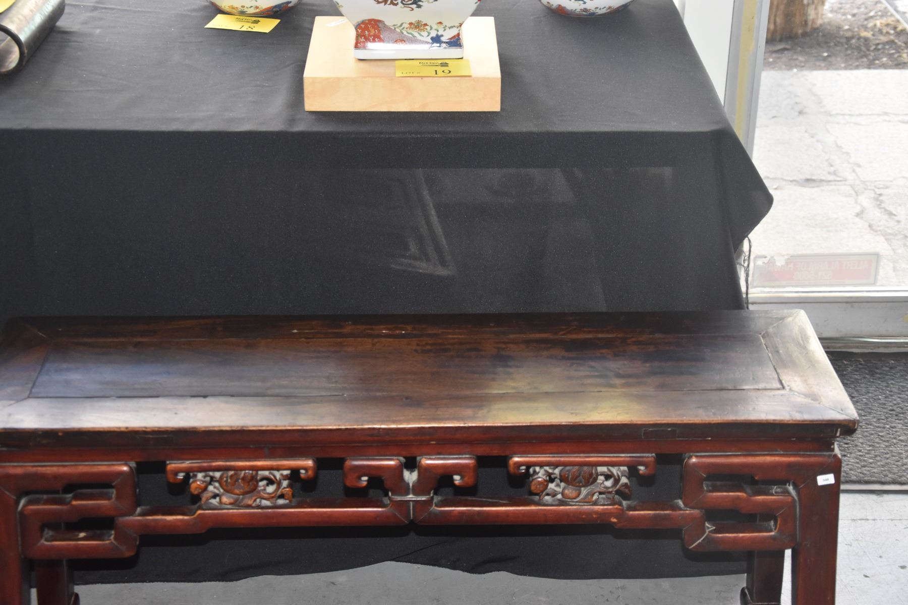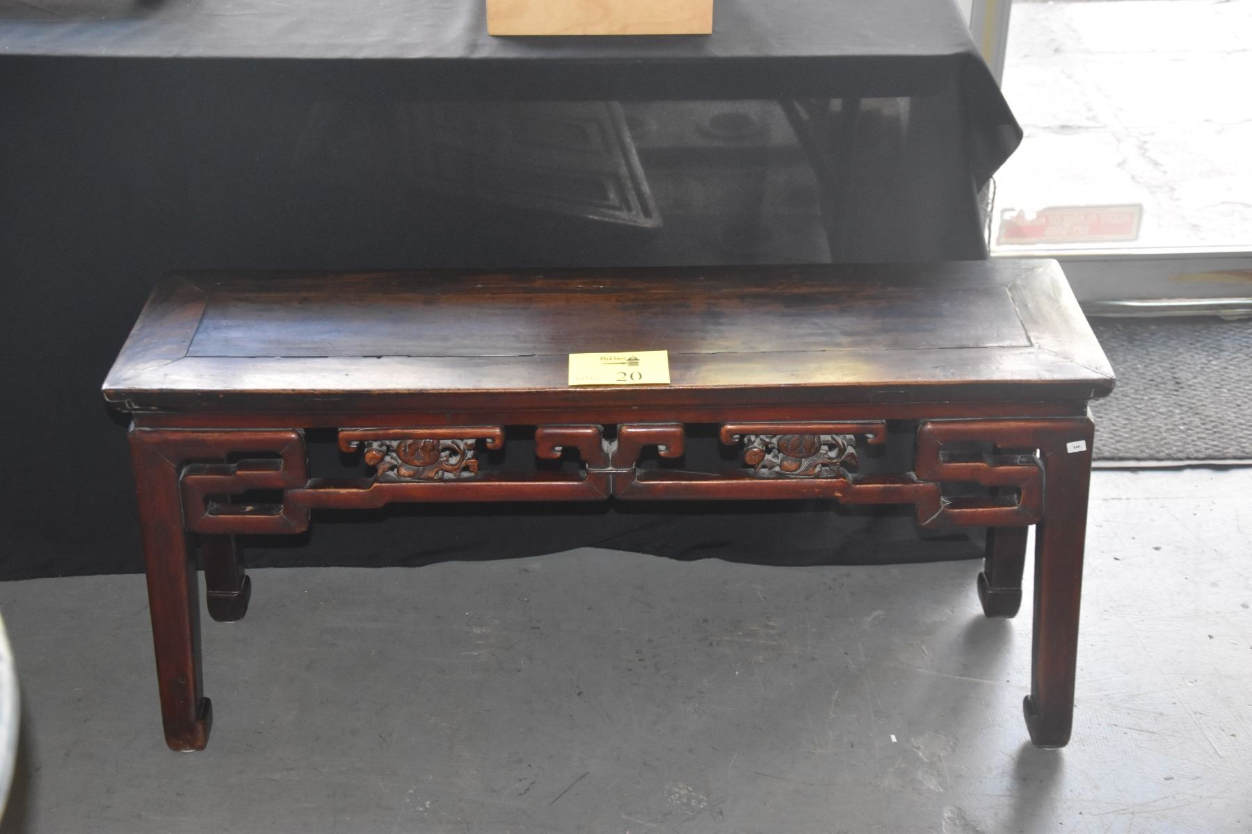 CHINESE CHING DYNASTY ELM BENCH W/OPEN WORK APRON