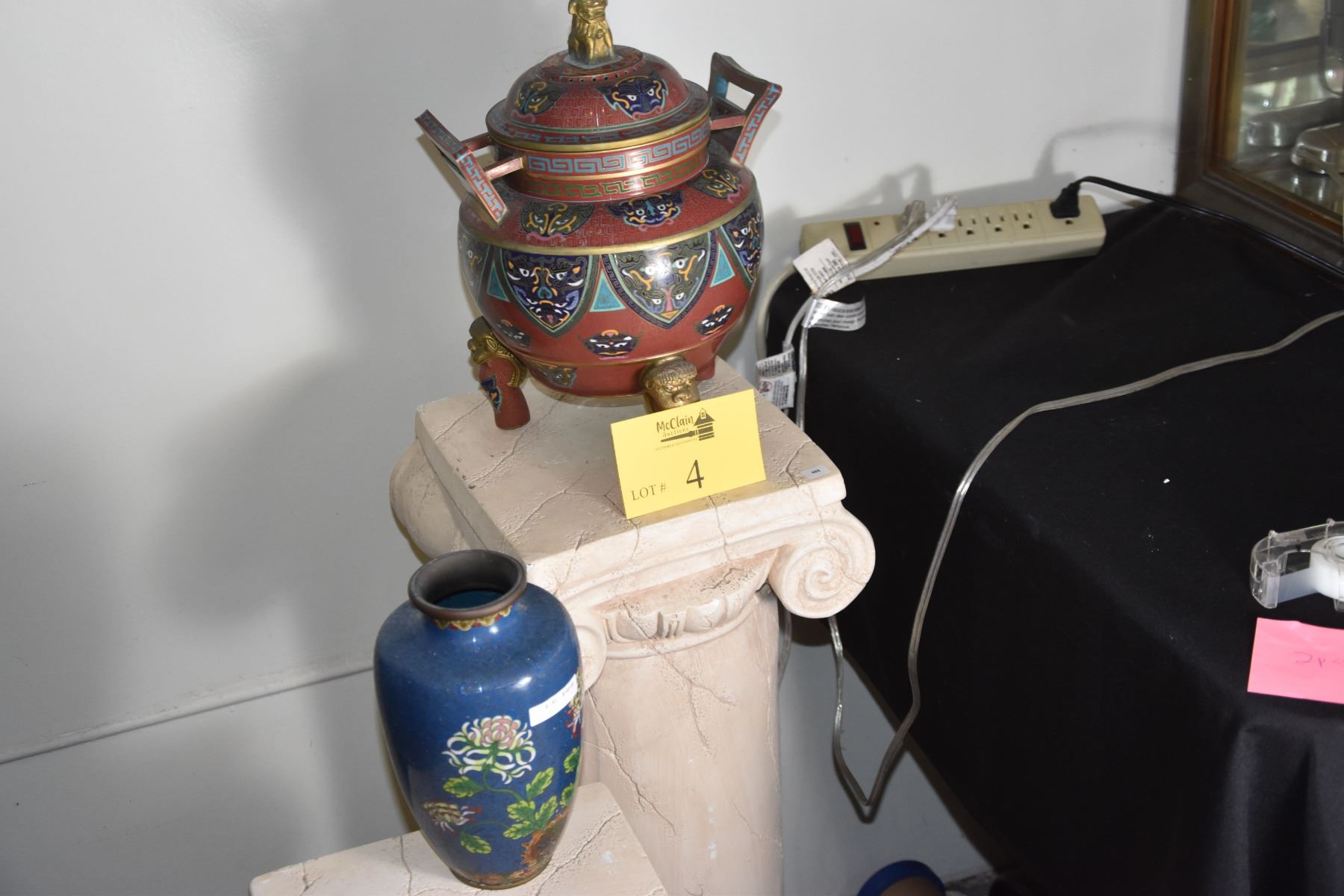 CHINESE CLOISONNE CENSER & VASE (8 1/2" & 13") (2 PCS)