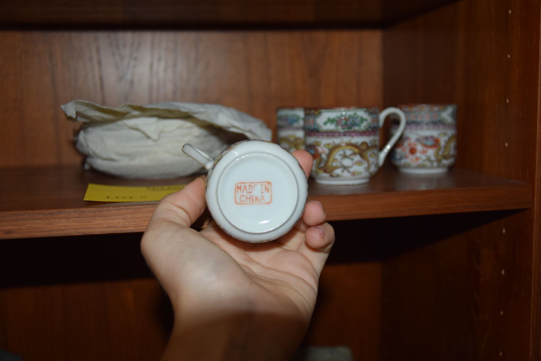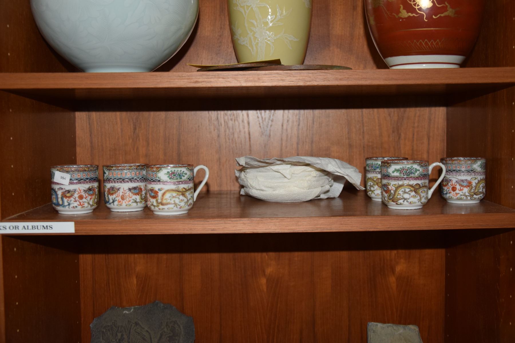 CHINESE EGGSHELL DEMITASSE CUPS & SAUCERS W/DRAGON MOTIF (12 PCS)