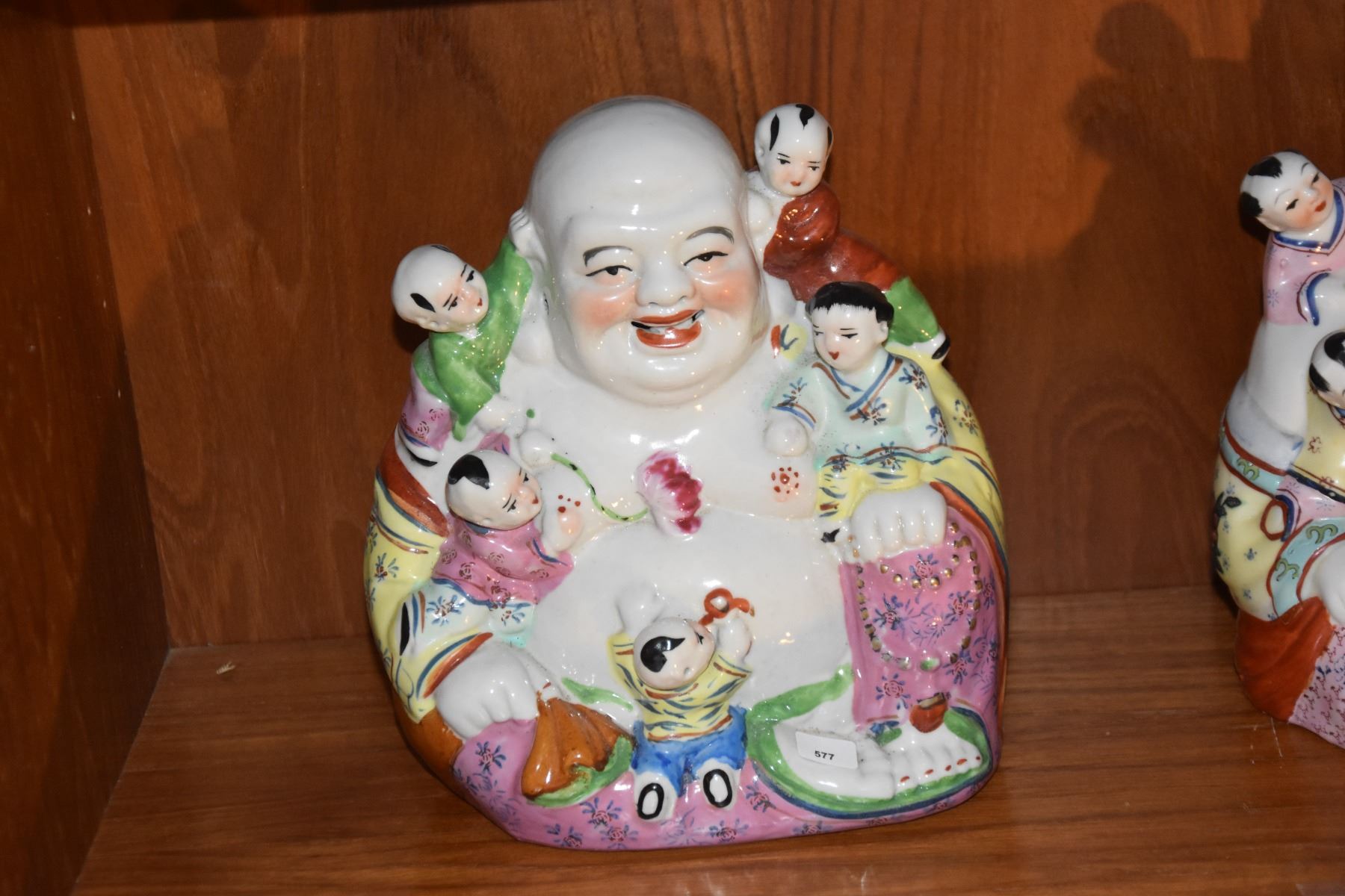 CHINESE FAMILLE ROSE HAPPY BUDDHAS (2 PCS)