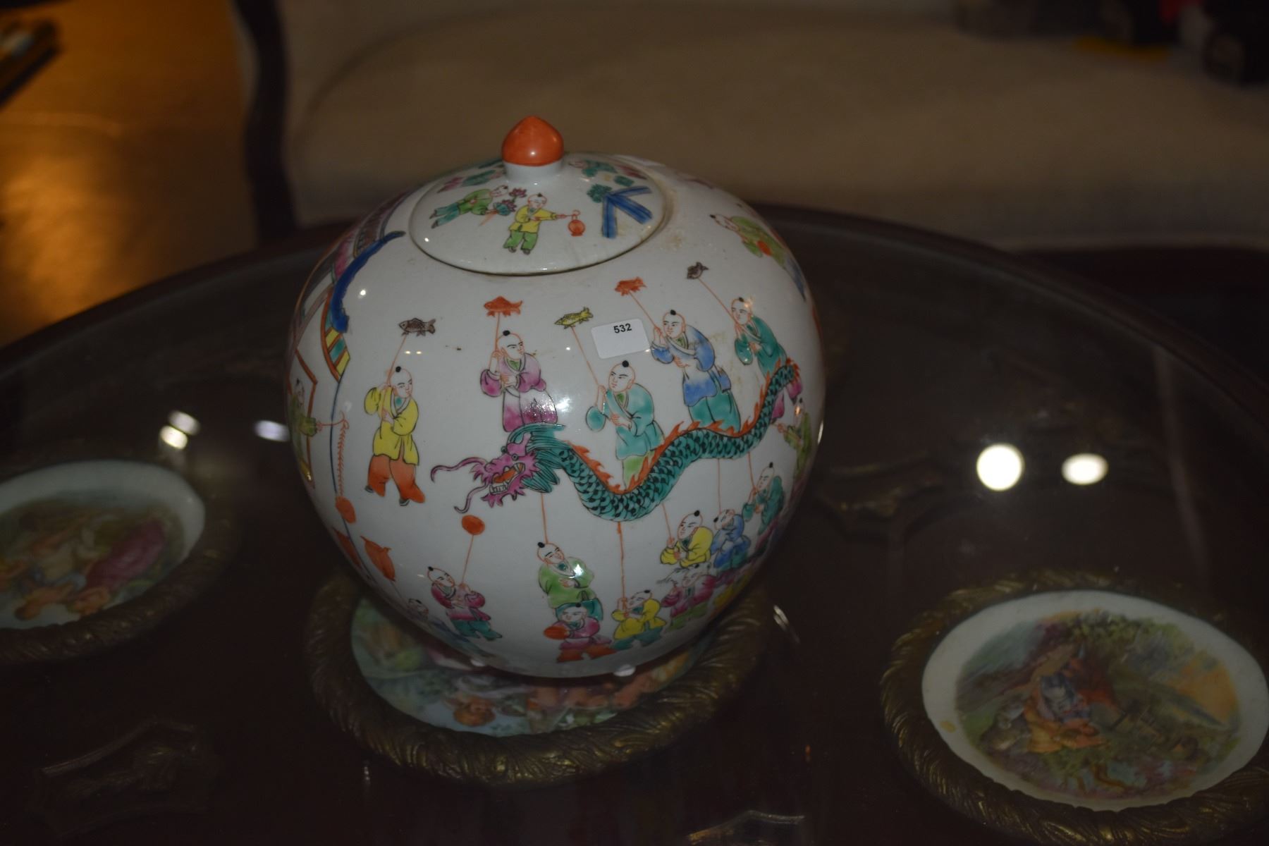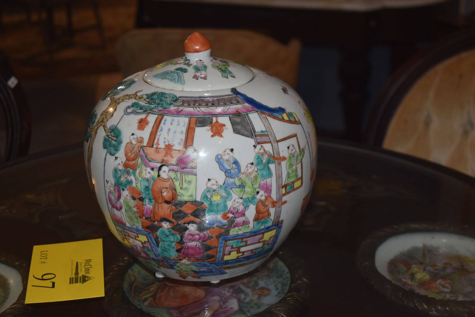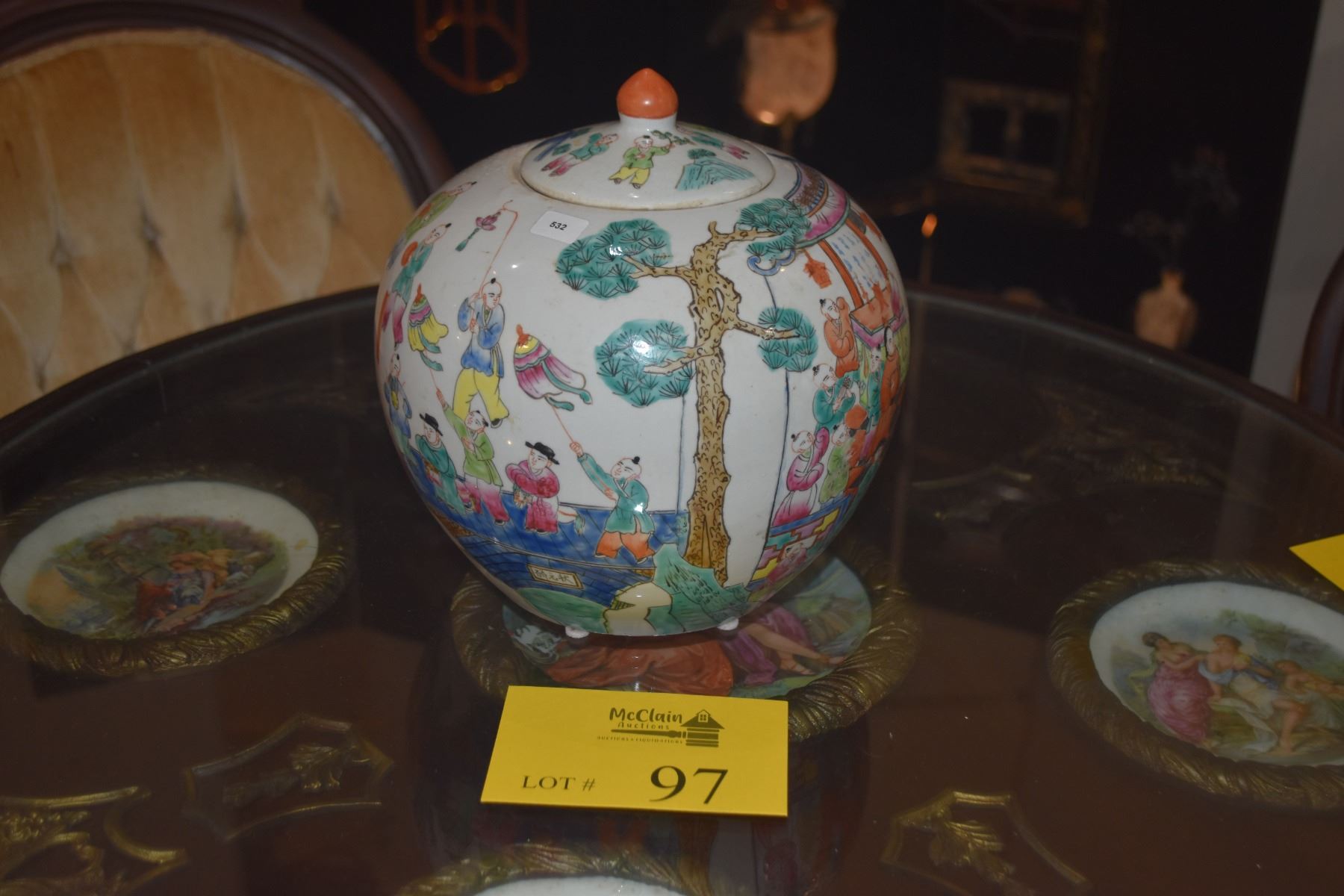CHINESE FAMILLE ROSE PORCELAIN GINGER JAR, DRAGON BOAT FESTIVAL (8 1/2")