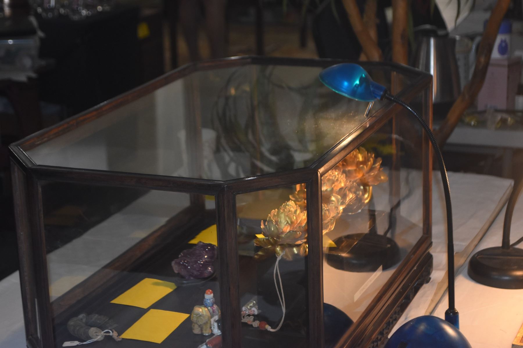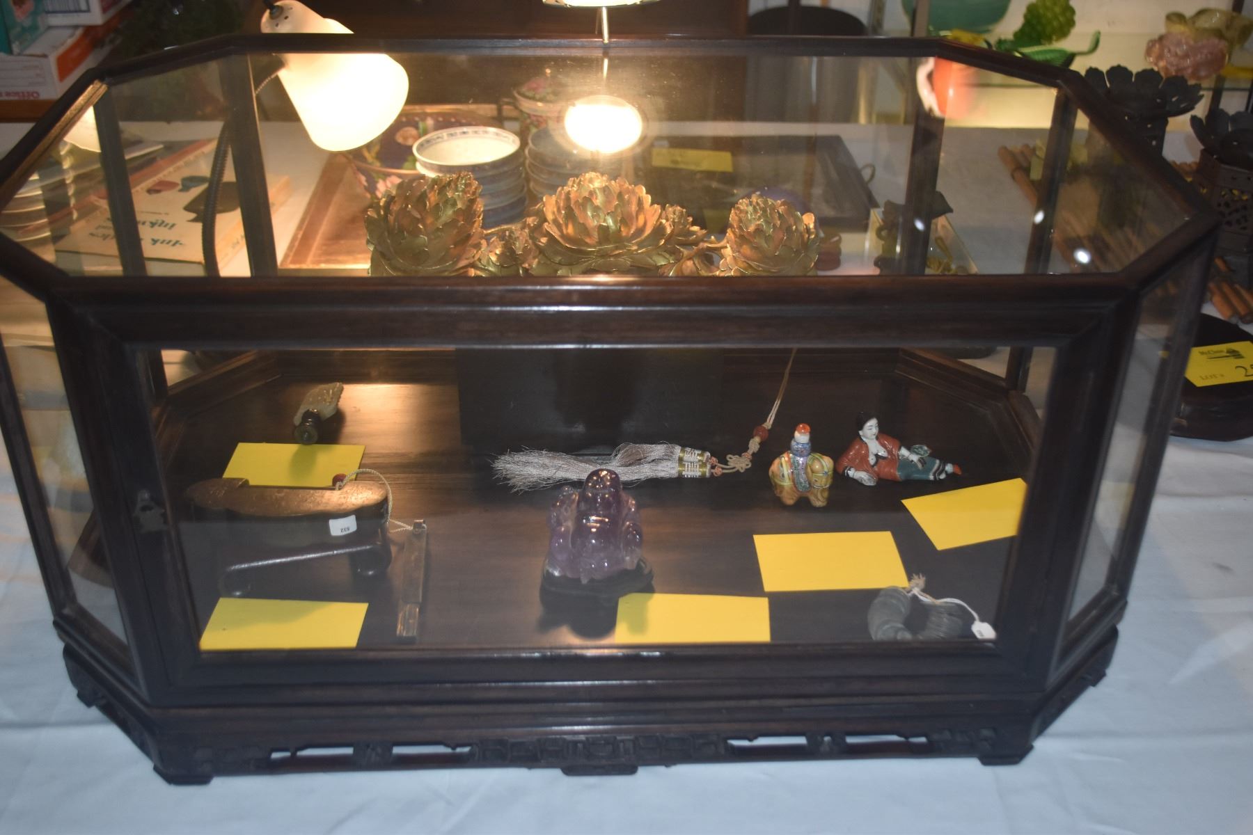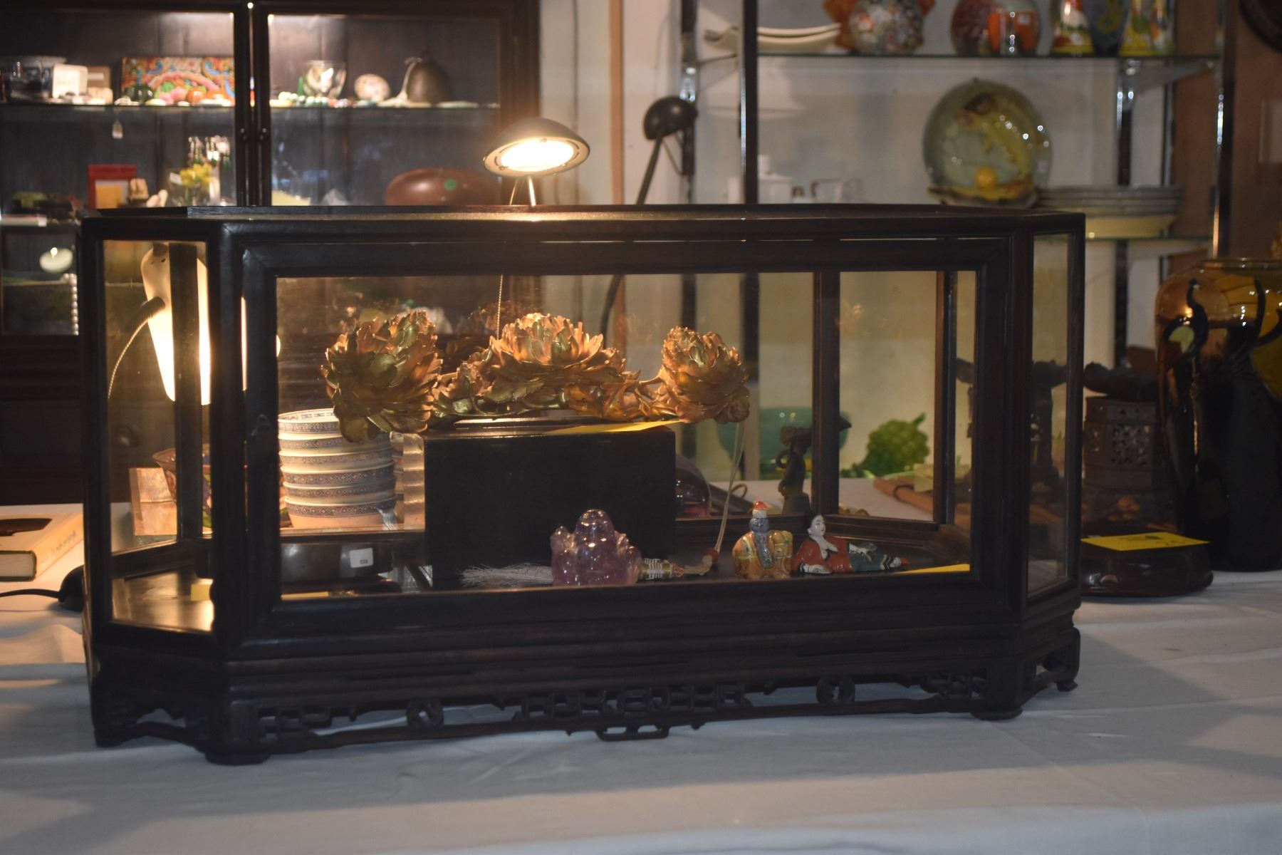 CHINESE HARD WOOD & GLASS TABLETOP DISPLAY CASE (29 3/4" X 17 3/4" X 14 3/4")