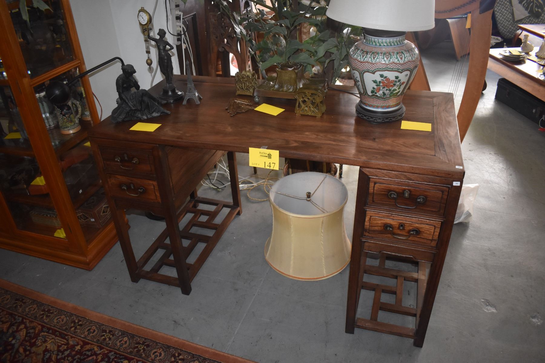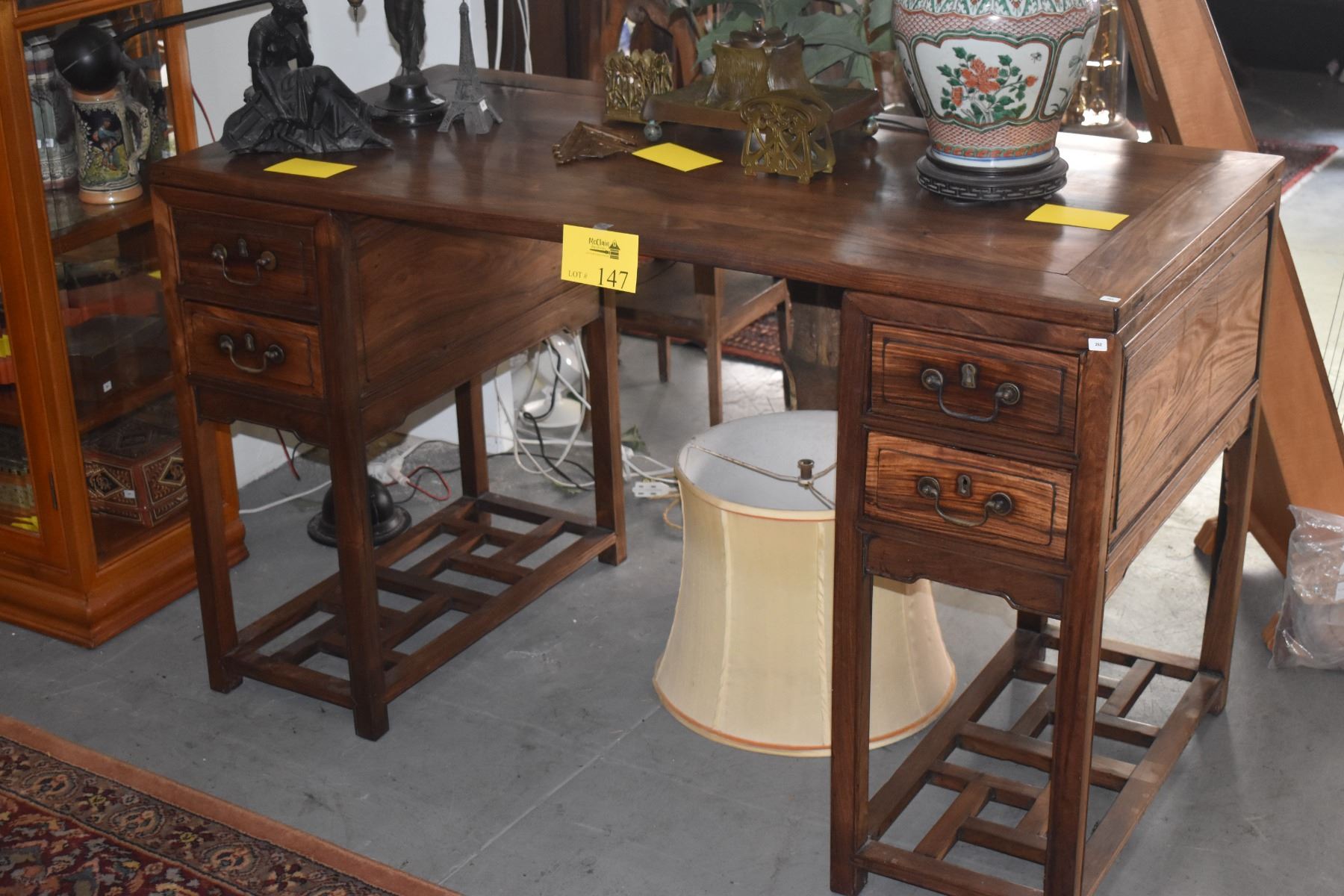 CHINESE HARDWOOD SCHOLAR'S DESK W/4 DRAWERS (3 SECTIONS)