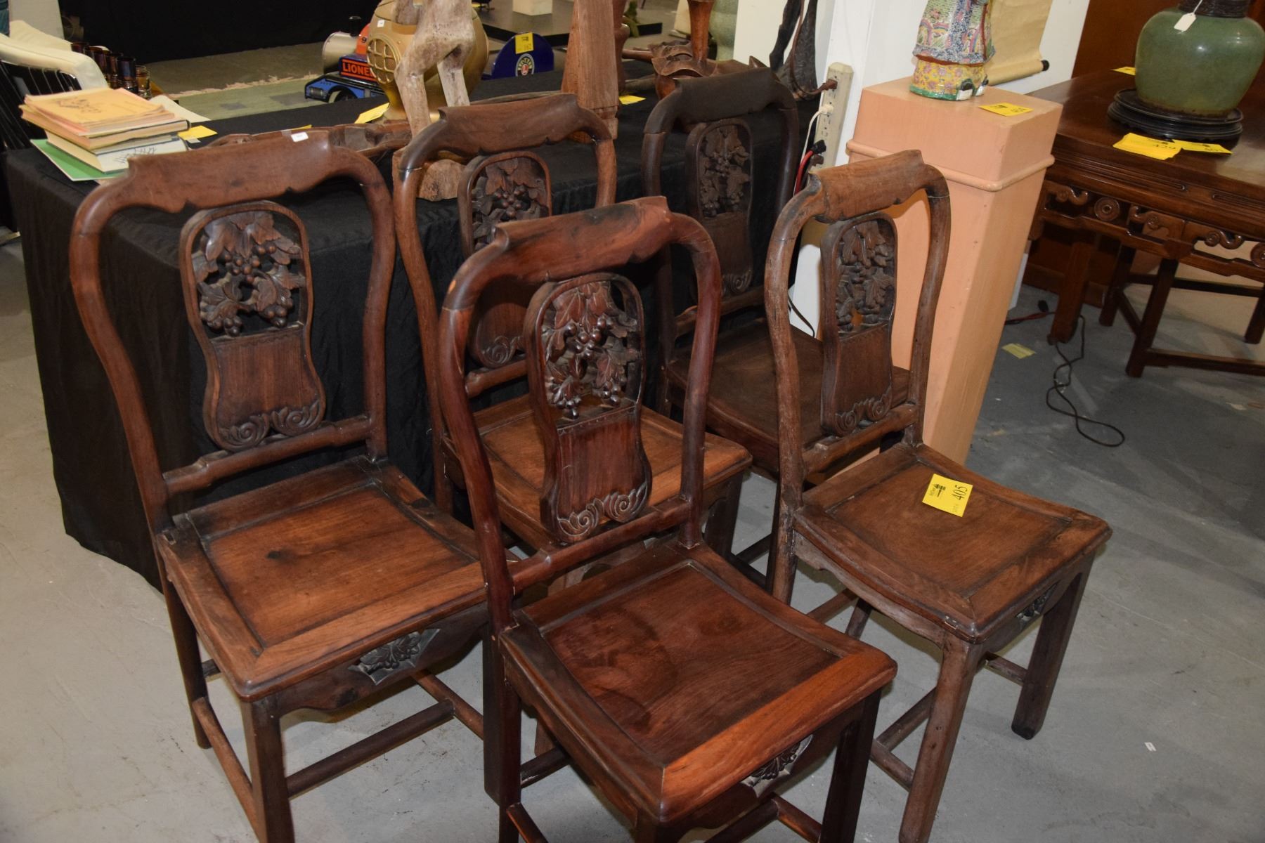 CHINESE HARDWOOD SIDE CHAIRS W/CARVED GRAPE MOTIF (5 PCS)