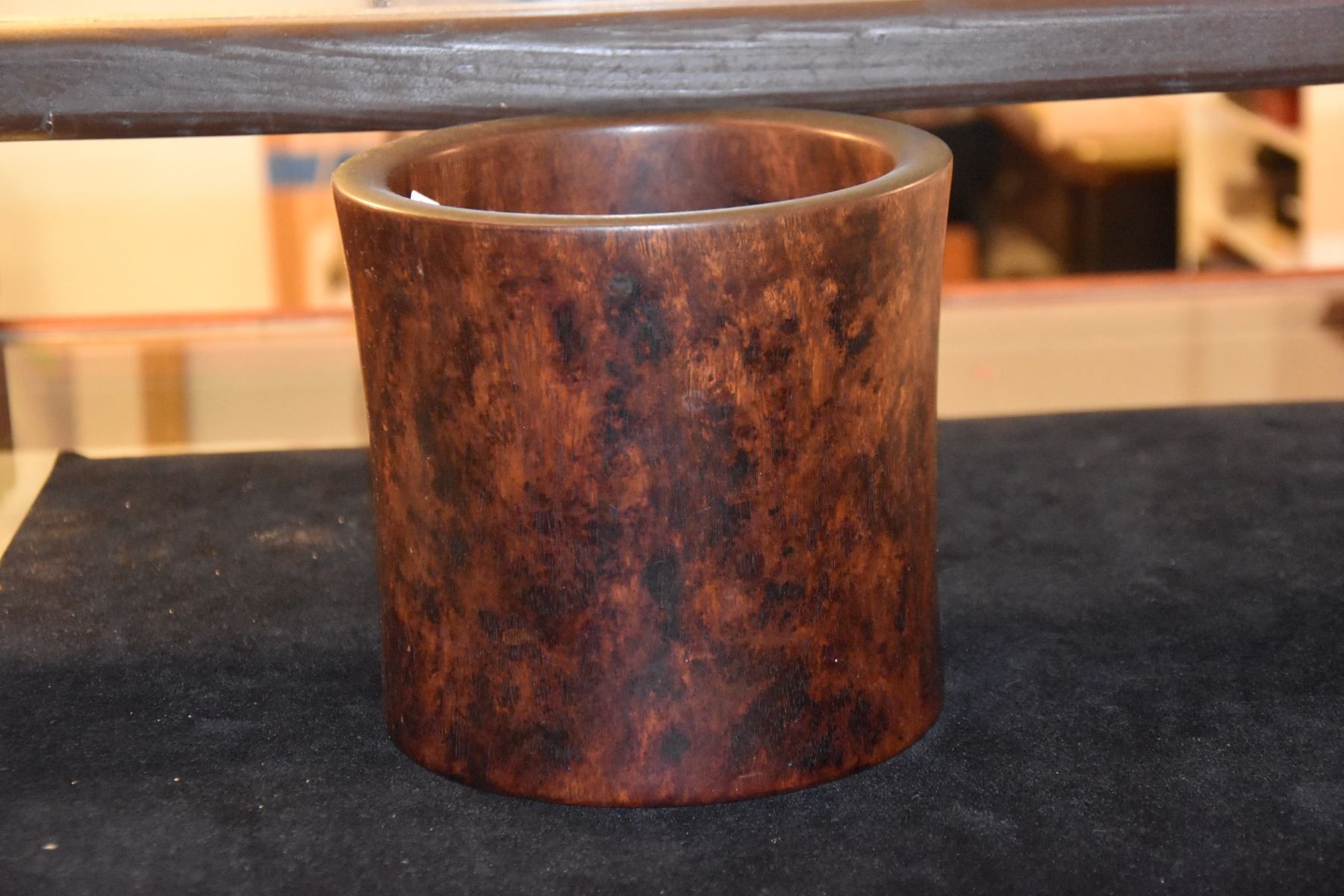 CHINESE HUANG HUA LI WOOD BRUSH POT (7" X 7 3/8")