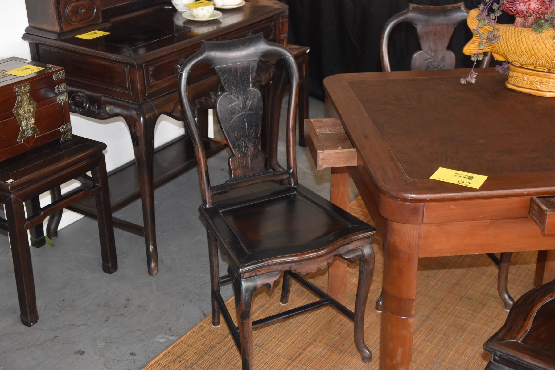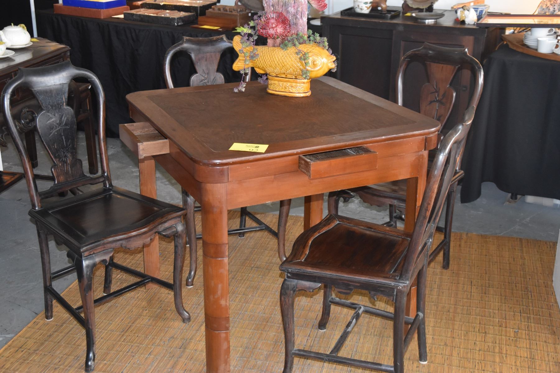 CHINESE MAHJONG TABLE (34" x 34" x 31 1/4") W/4 HARDWOOD CHAIRS (5 PCS)