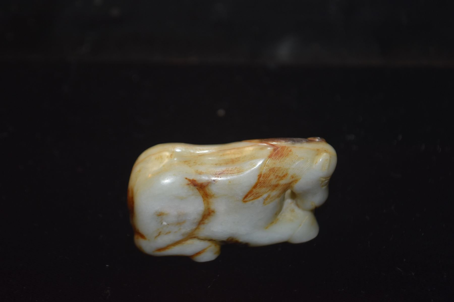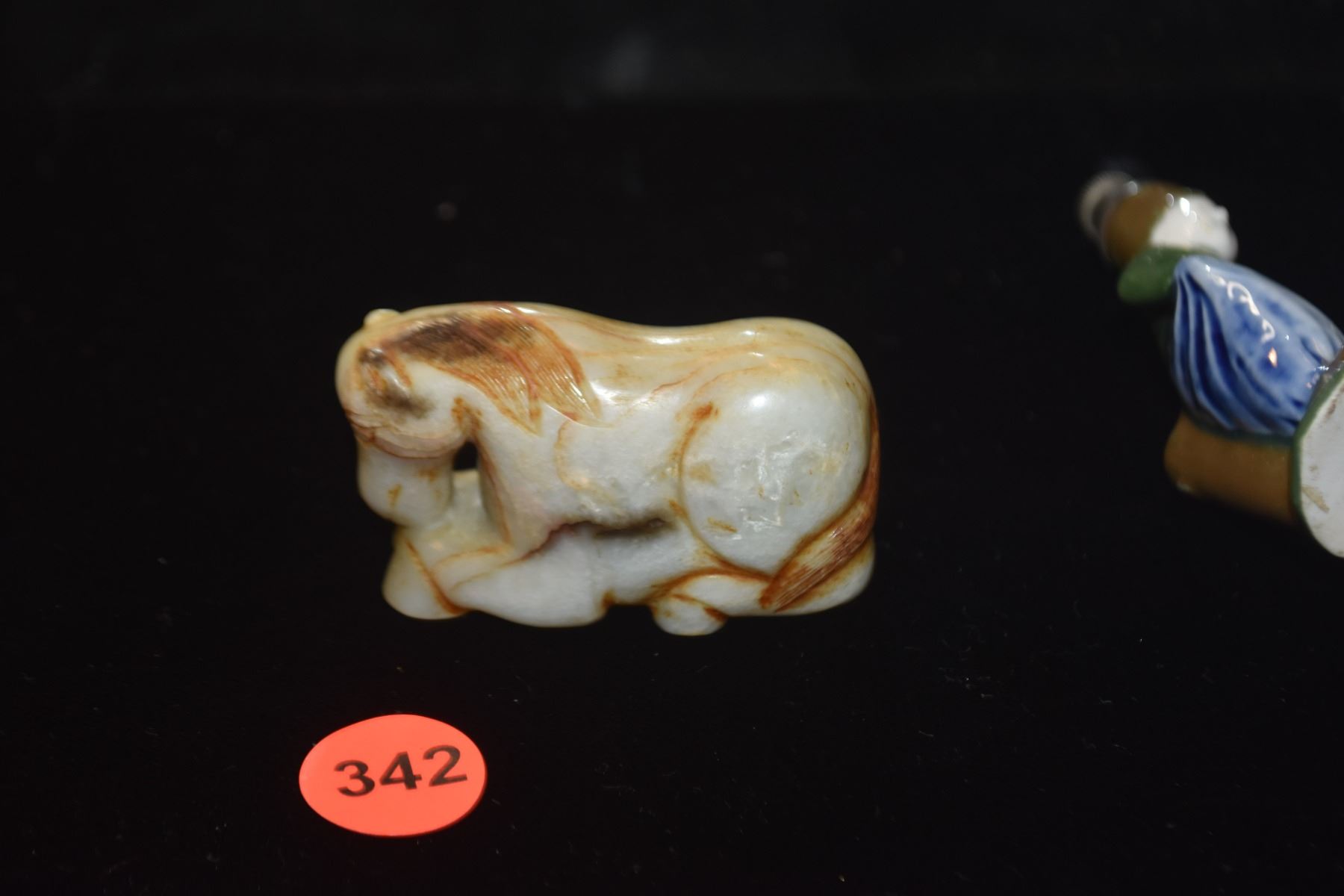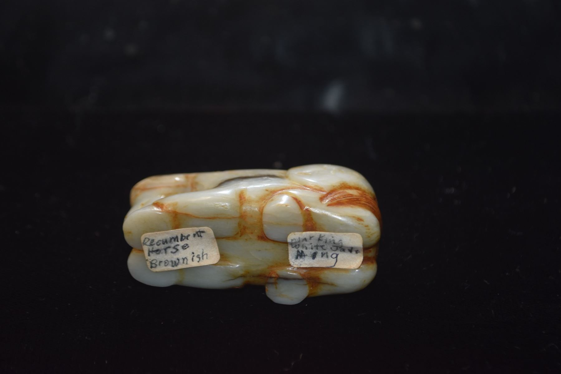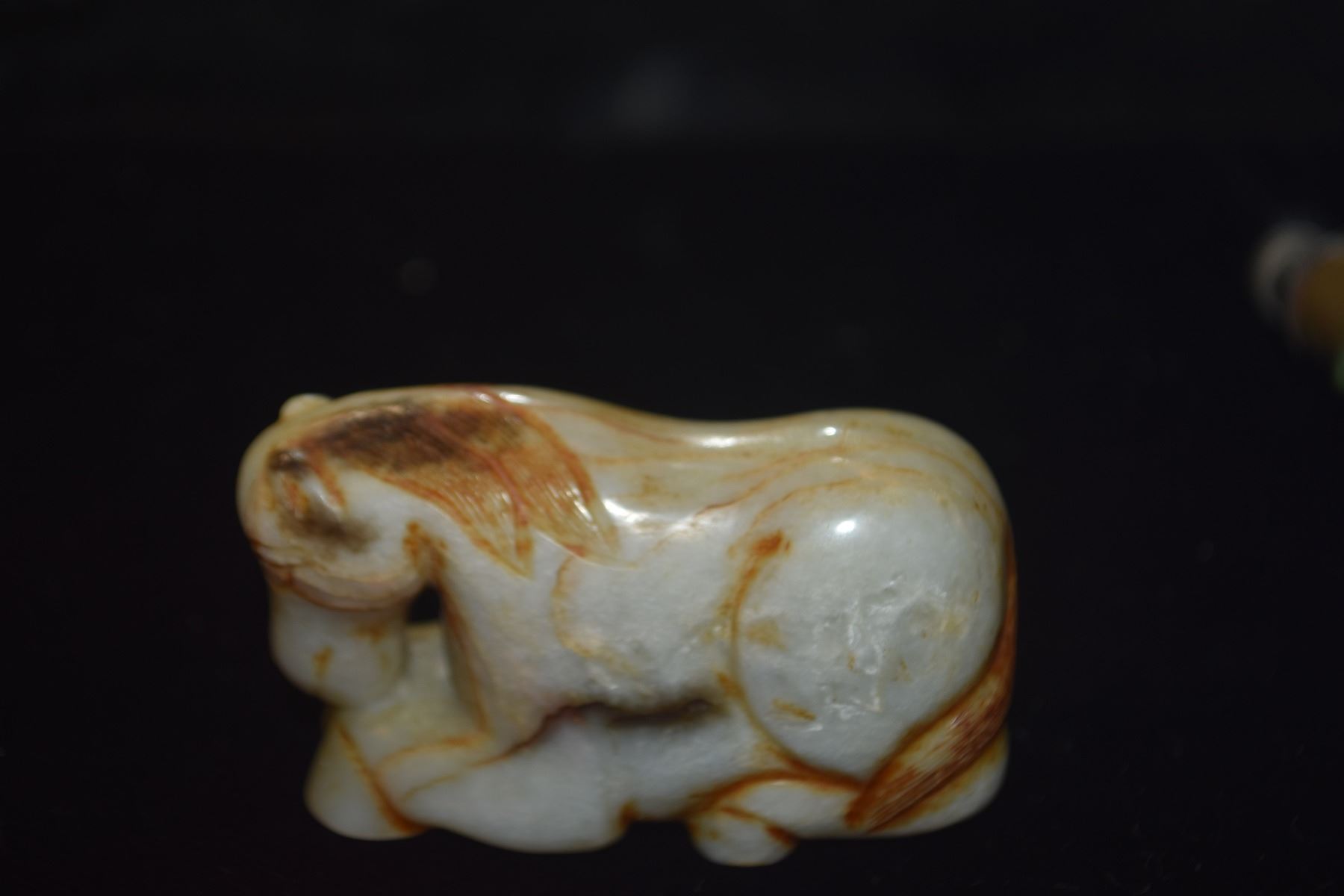 CHINESE NEPHRITE JADE RECUMBENT HORSE, CHICKEN BONE JADE (2 1/4" X 1 1/4")