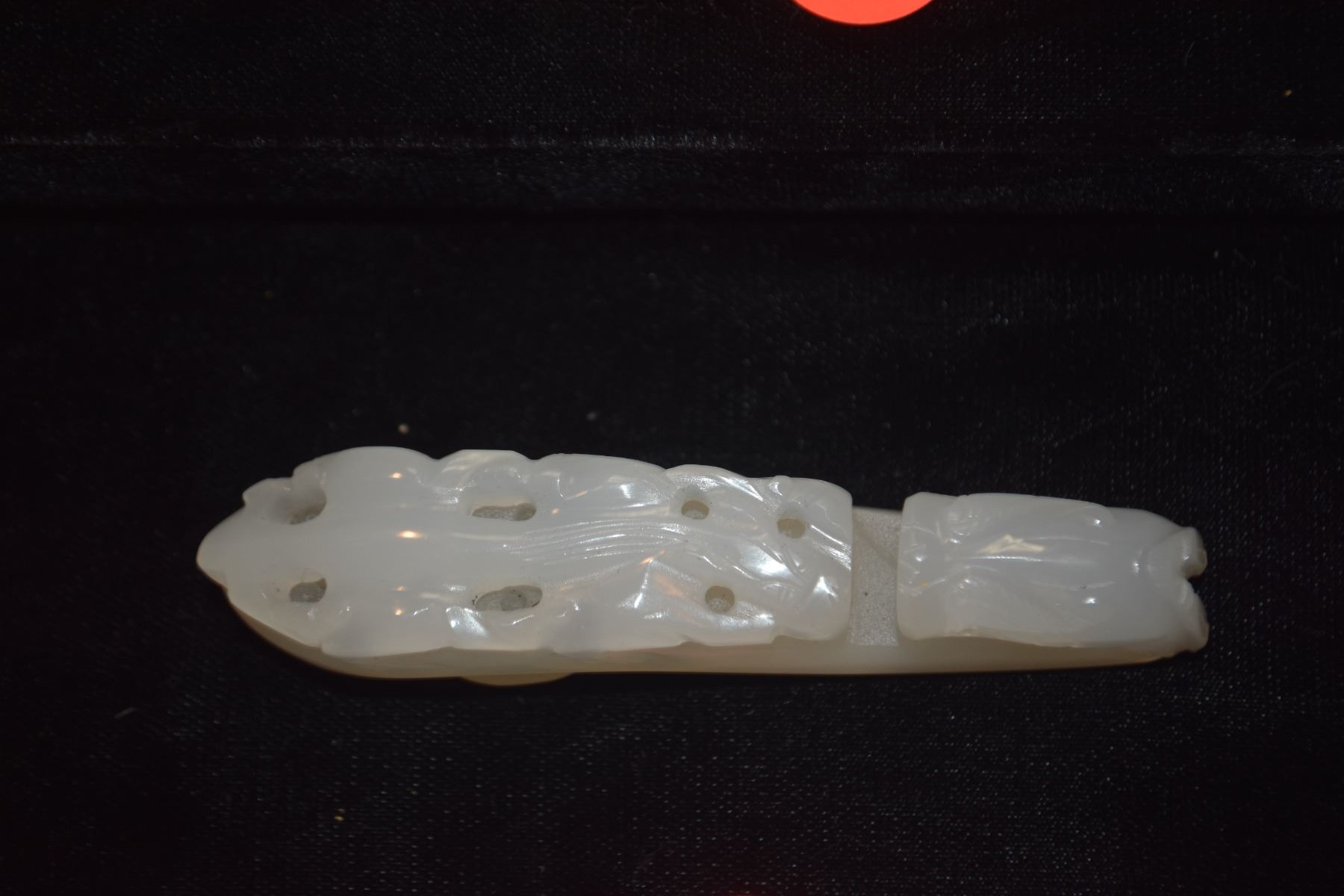 CHINESE PEKING RETICULATE GLASS DRAGON BUCKLE (3 3/4")