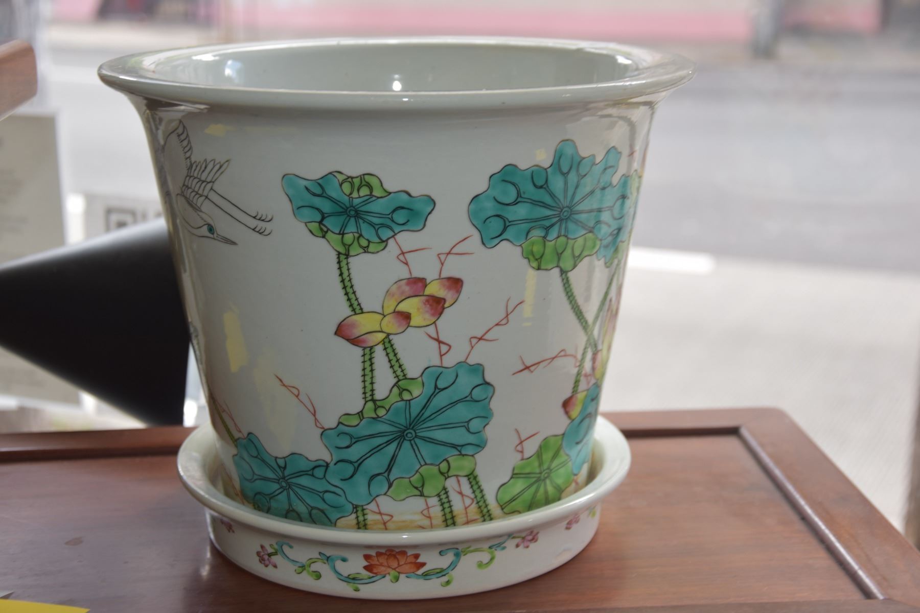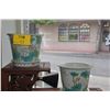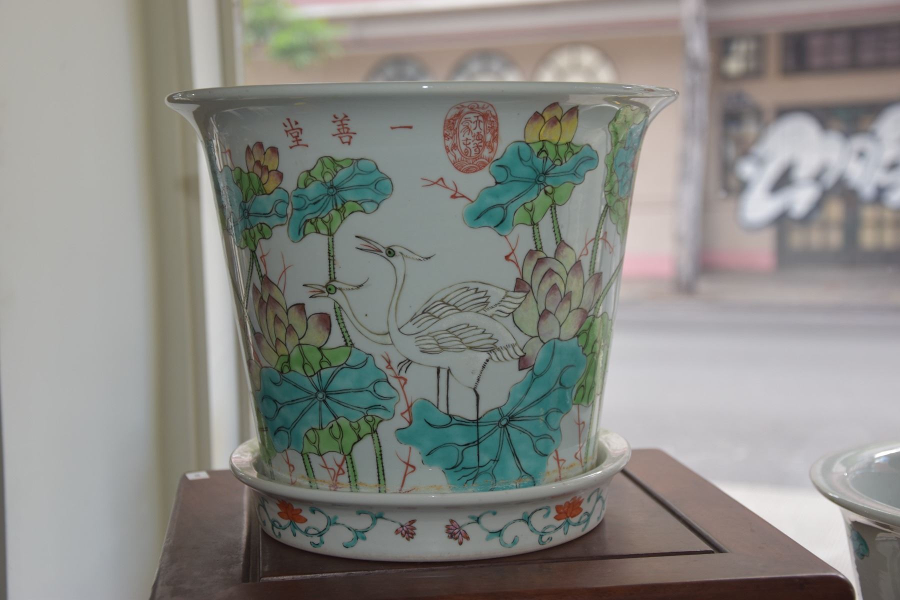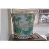 CHINESE PORCELAIN FLOWER POTS W/SAUCERS (PAIR) (11" X 9")