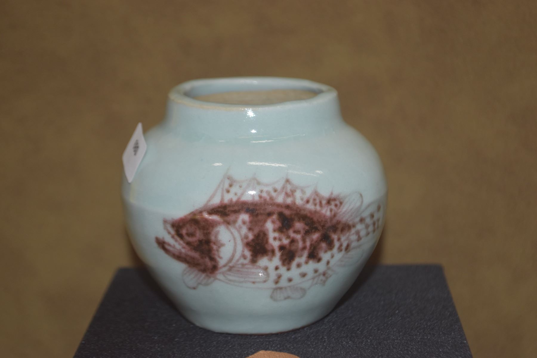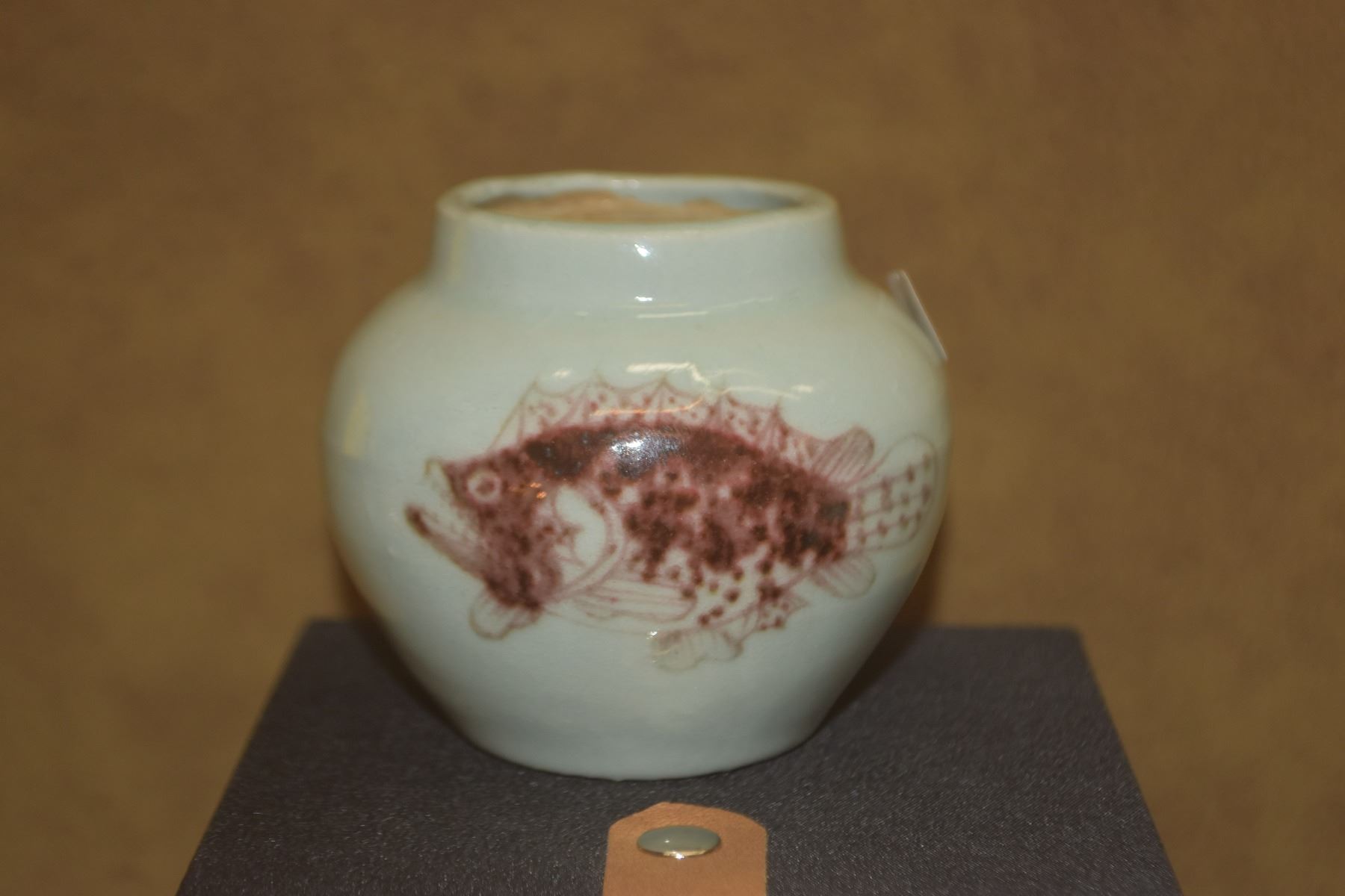 CHINESE PORCELAIN JARLET W/2 RED GLAZED FISH, NO MARK (2 3/4")