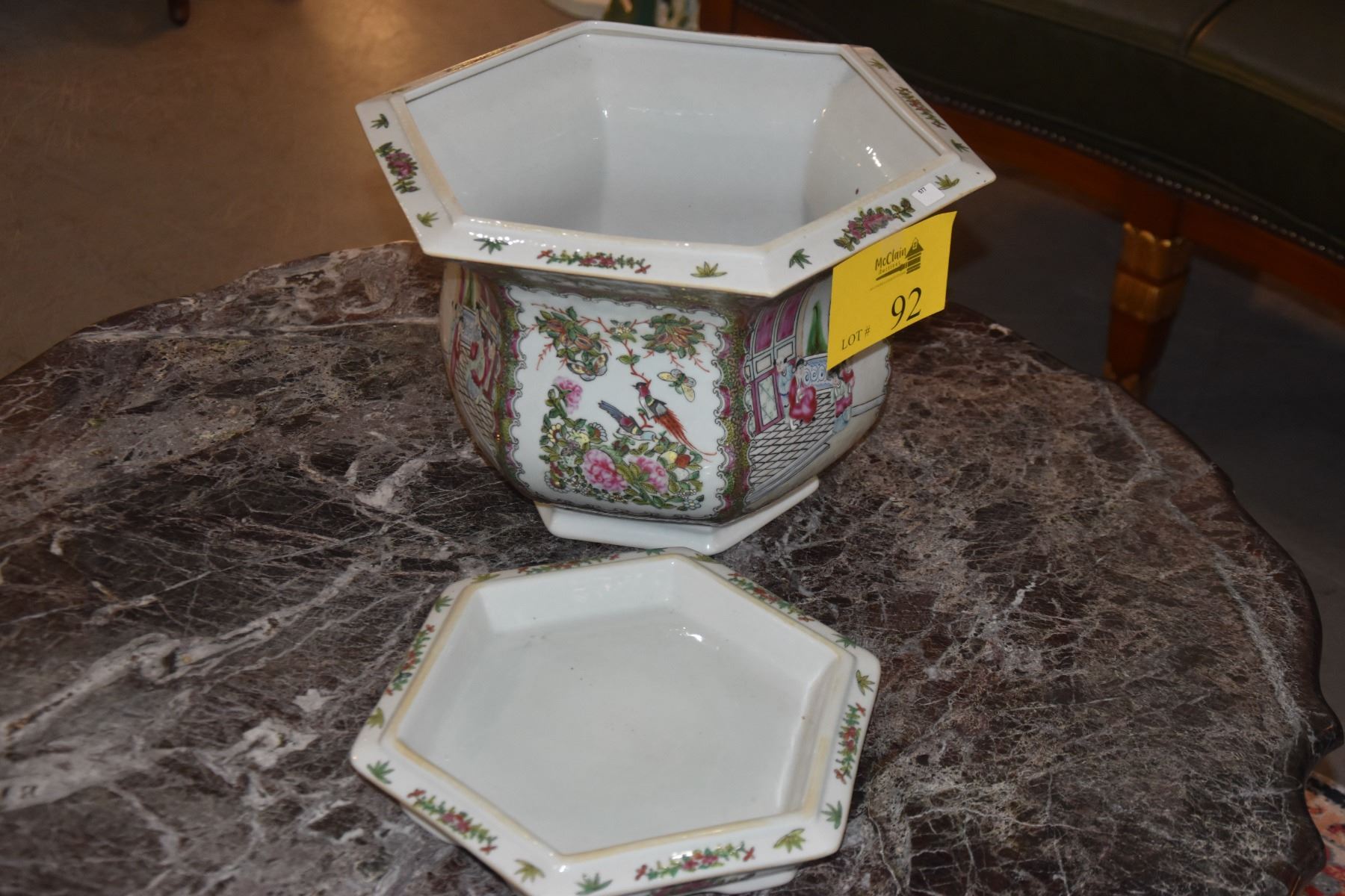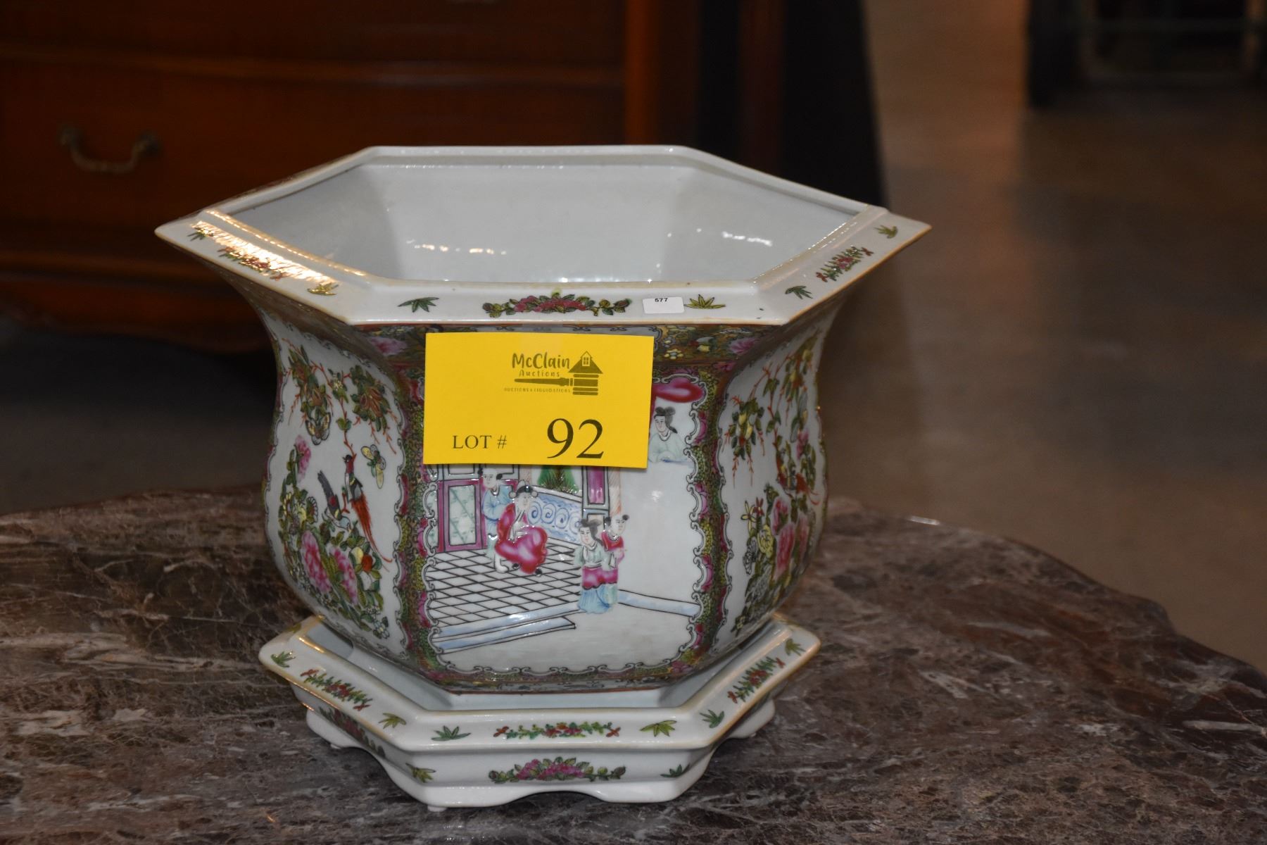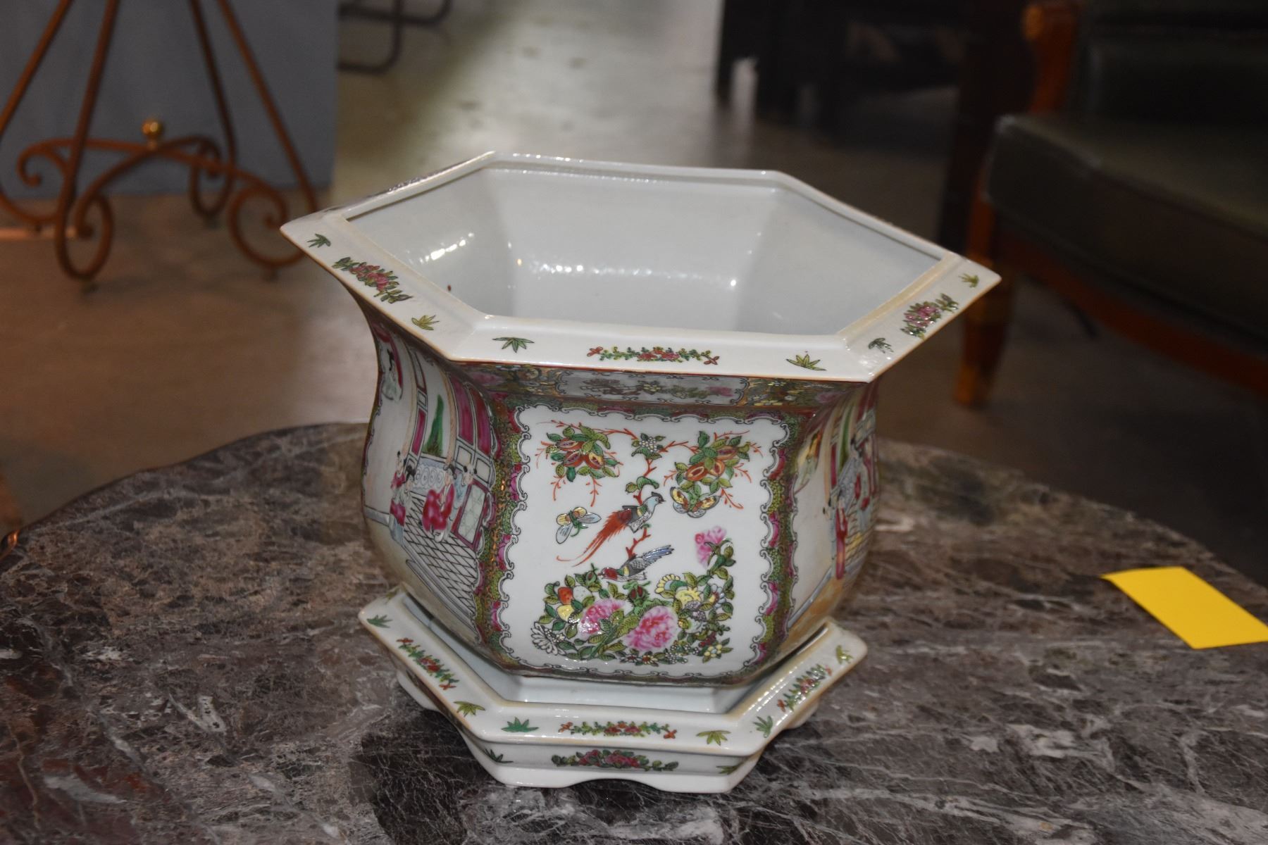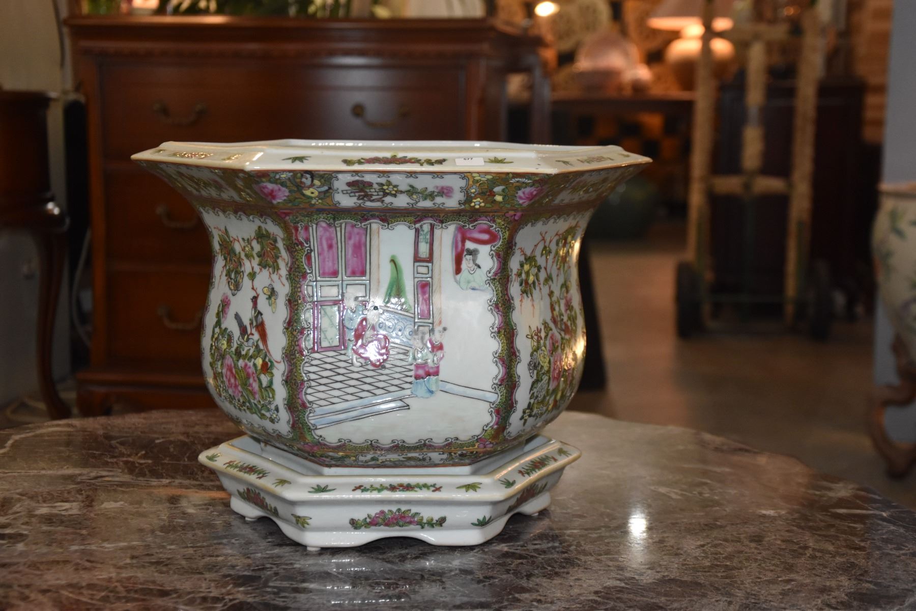 CHINESE PORCELAIN ROSE MEDALLION JARDINIERE PLATER W/TRAY