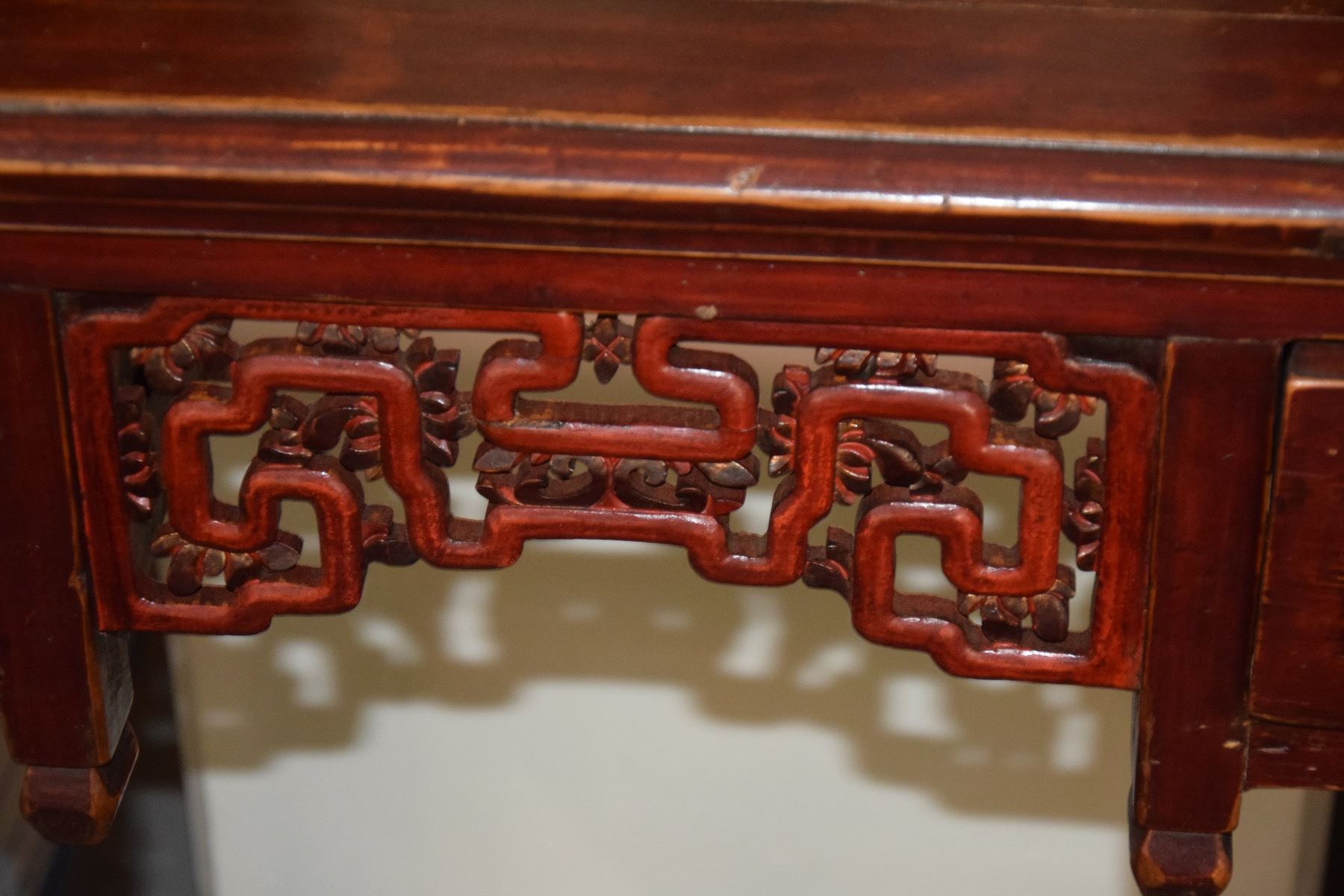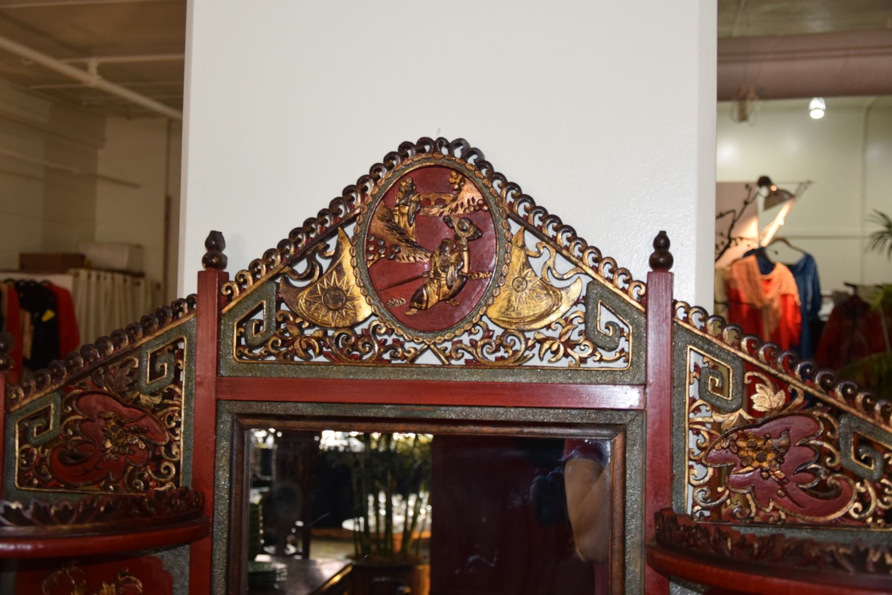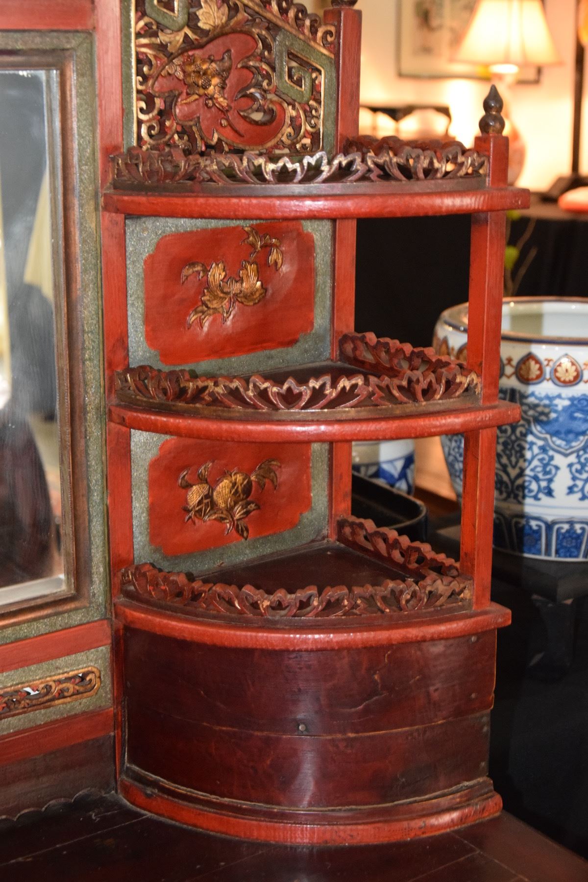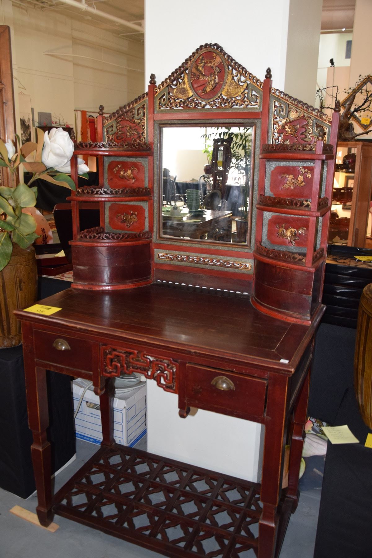 CHINESE RED LACQUER VANITY W/MIRROR (APPROX 35" X 20.5" X 65")