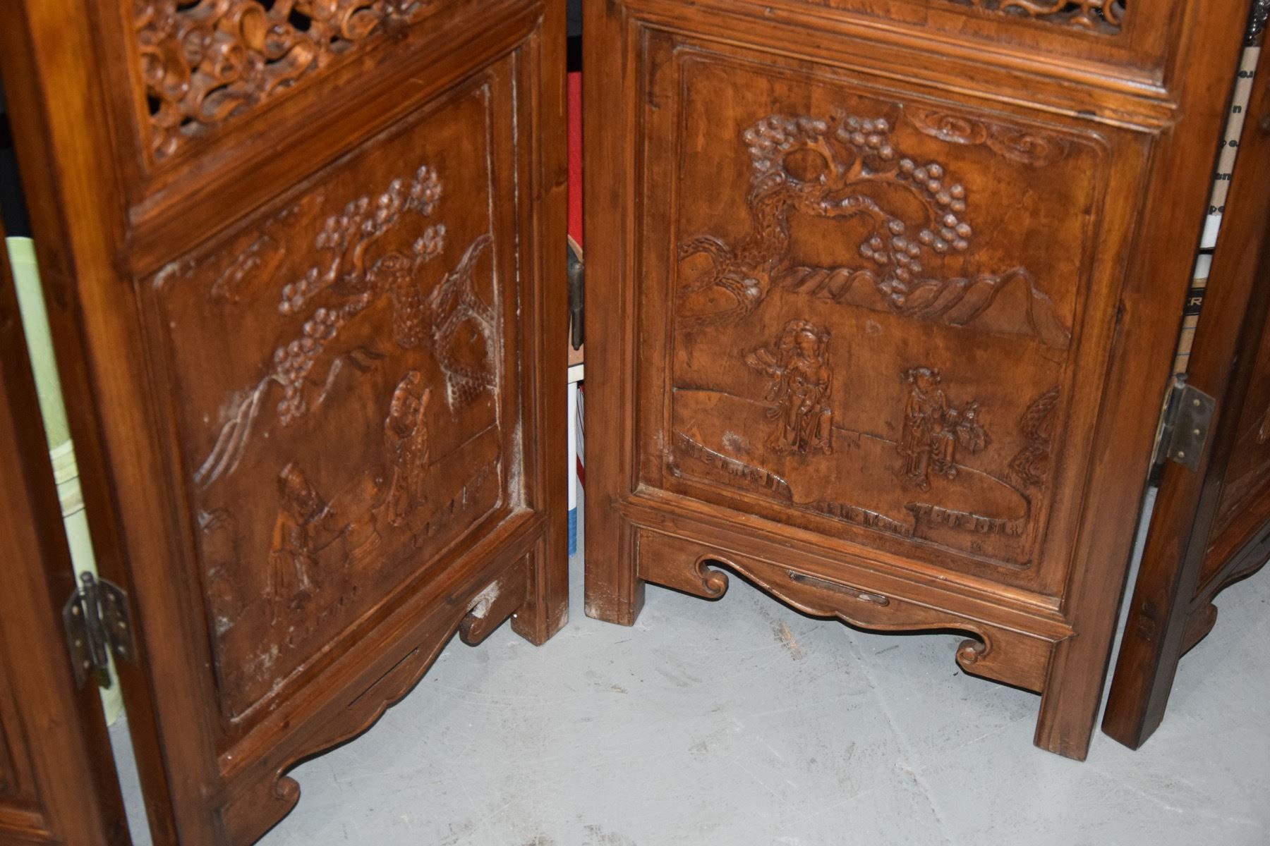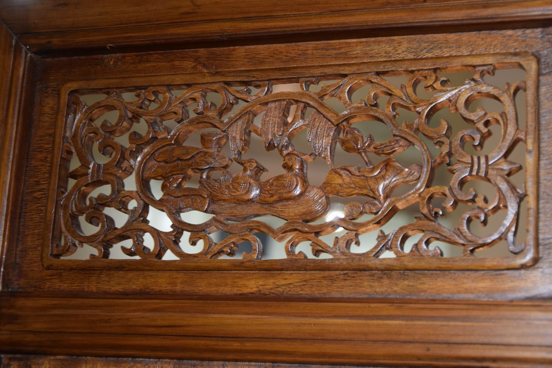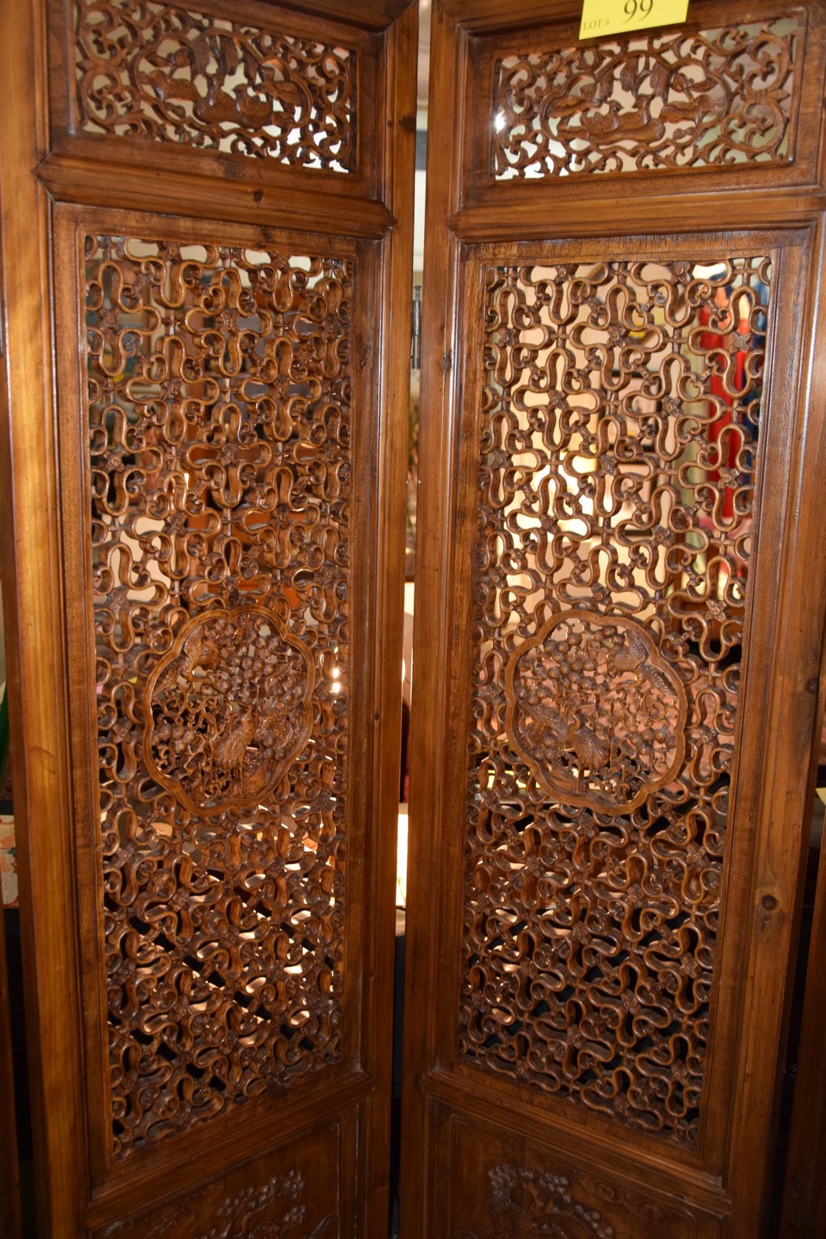 CHINESE RETICULATED 4 PANEL SCREEN (LONG LIFE CRANE & MANDARIN DUCK) (68" X 71" X 17" EACH)