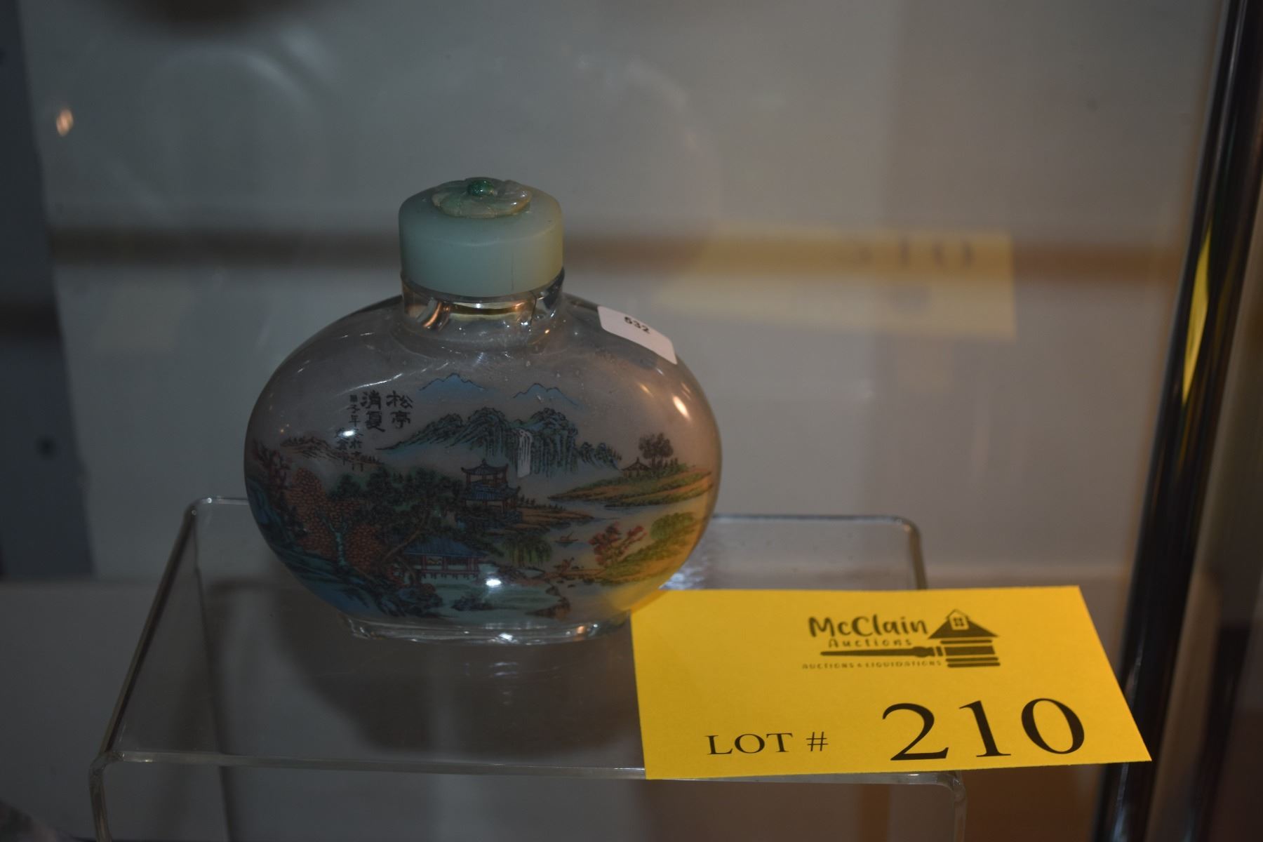 CHINESE REVERSE PAINTED SNUFF BOTTLE (4 1/4" X 4") (DOES NOT INCLUDE STAND)
