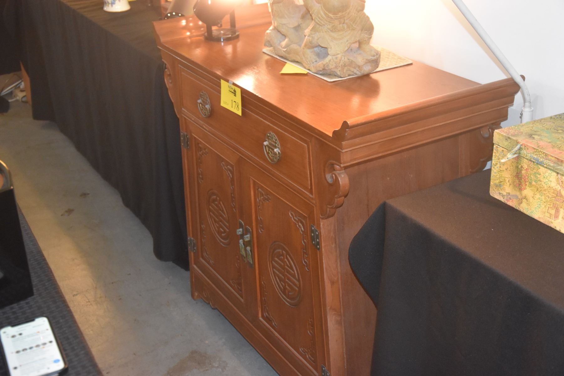 CHINESE ROSEWOOD ALTER STYLE CABINET W/2 DRAWERS & 2 DOORS (40" X 36")