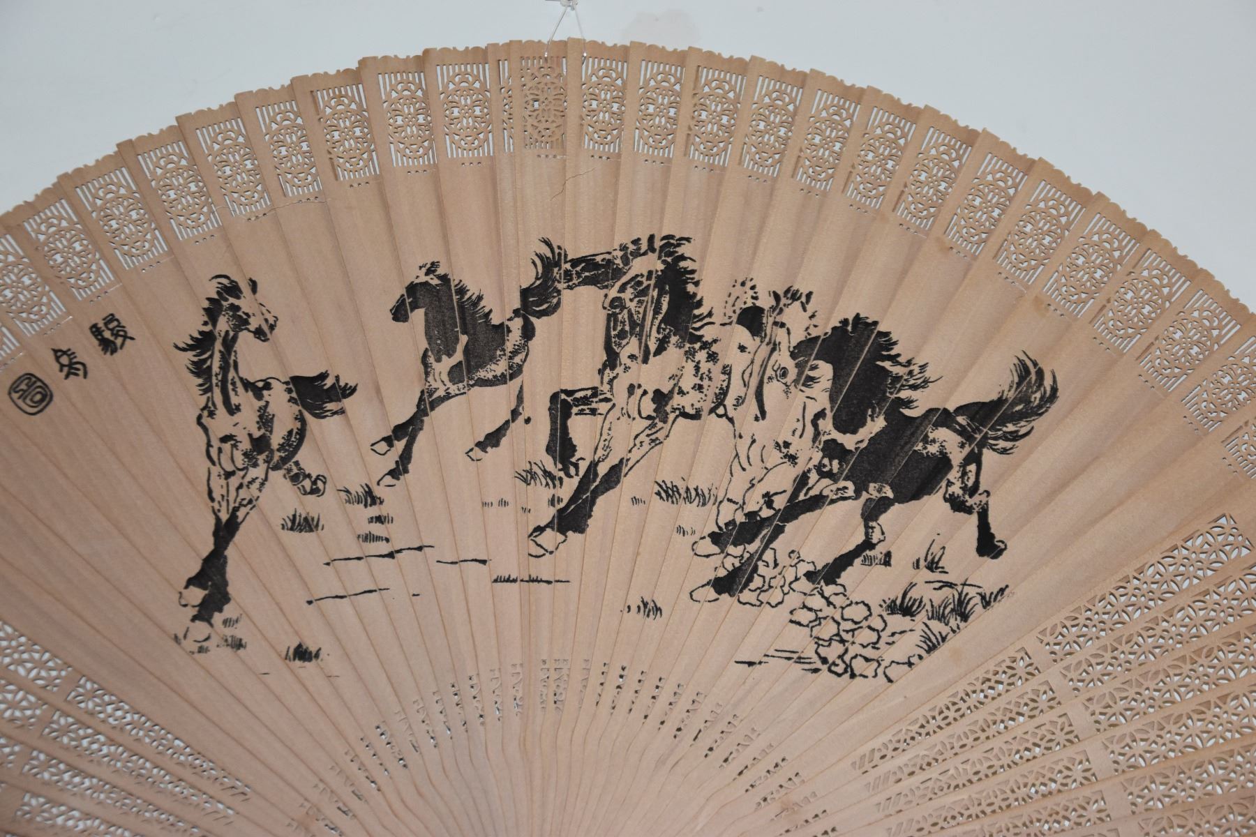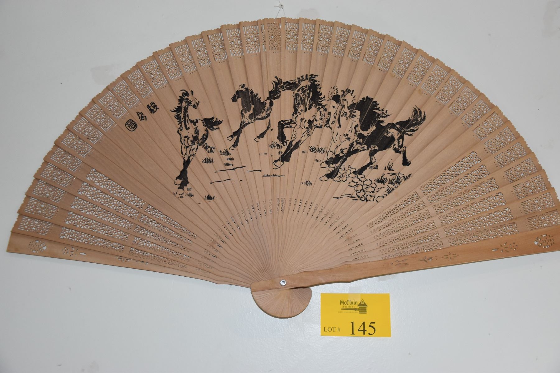 CHINESE SANDLE WOOD FAN W/HORSE MOTIF