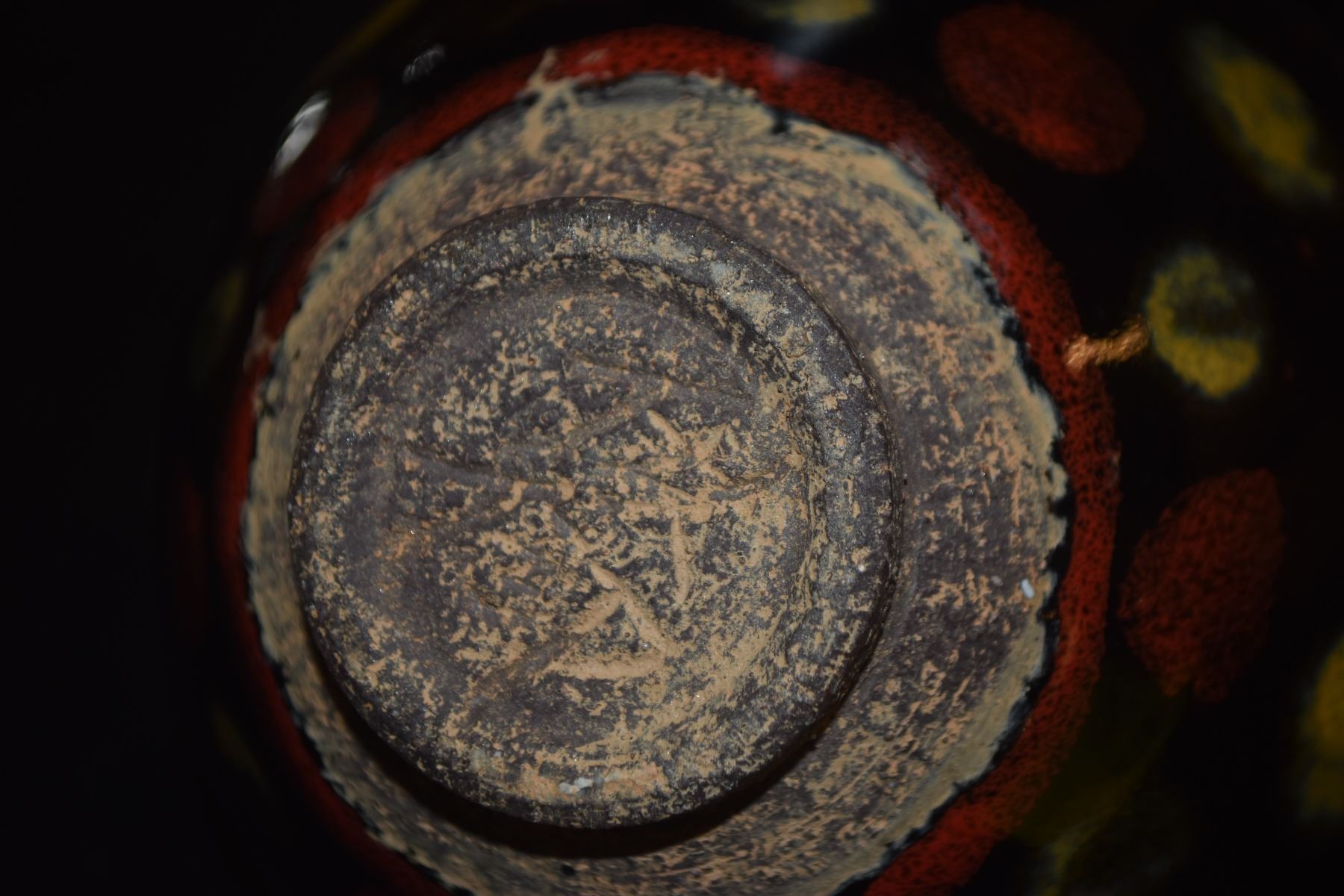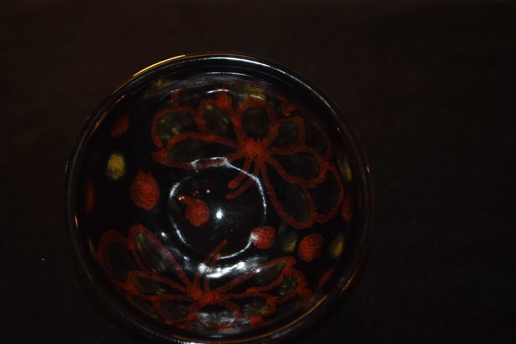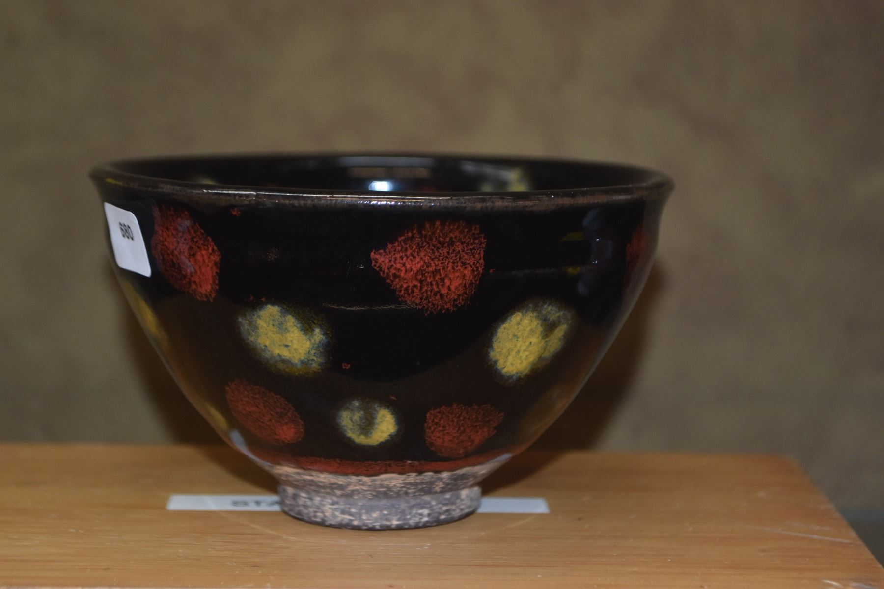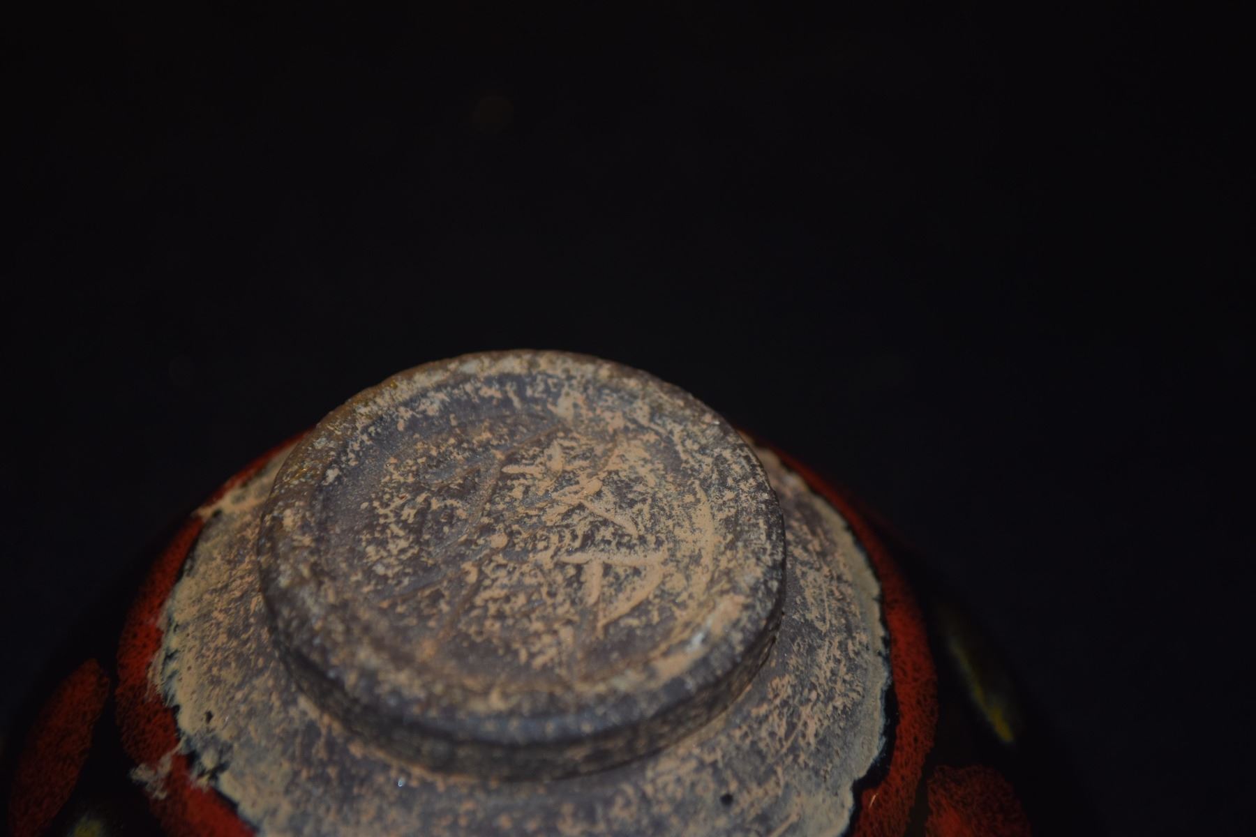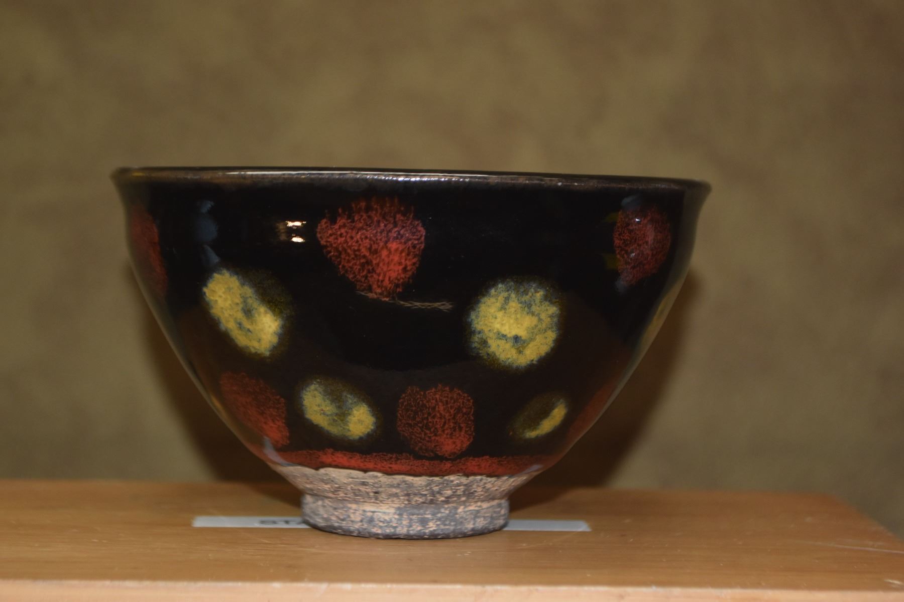 CHINESE STONEWARE TEA CUP, POLYCHROME GLAZE; SIGNED (4 1/2") (DOES NOT INCLUDE STAND)