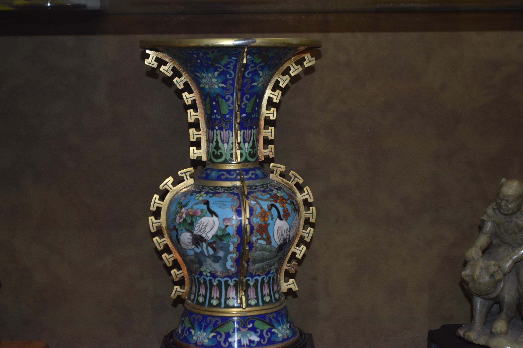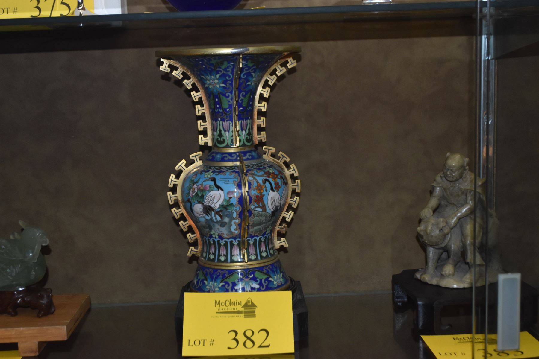 CHINESE VINTAGE POLYCHROME CLOISONNE VASE IN ARCHAIC FORM OF ANCIENT “GU” BEAKER (10 ¼”) (DOES NOT INCLUDE STAND)