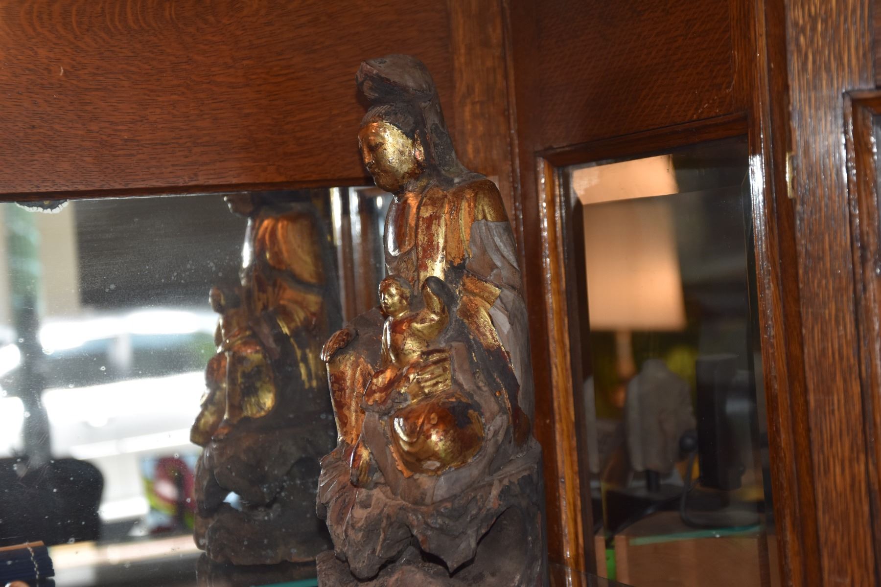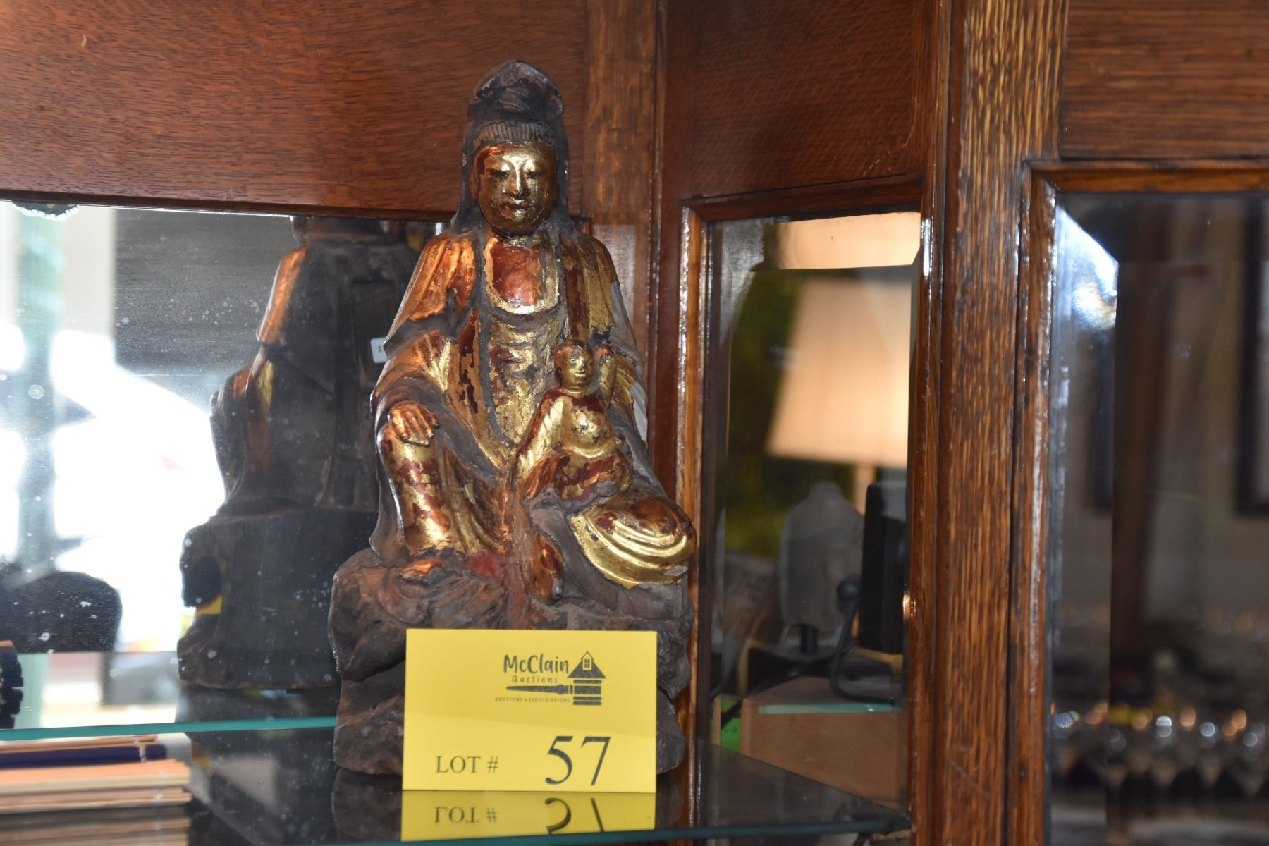 CHINESE WOOD GILT QUAN YIN & CHILD (12")