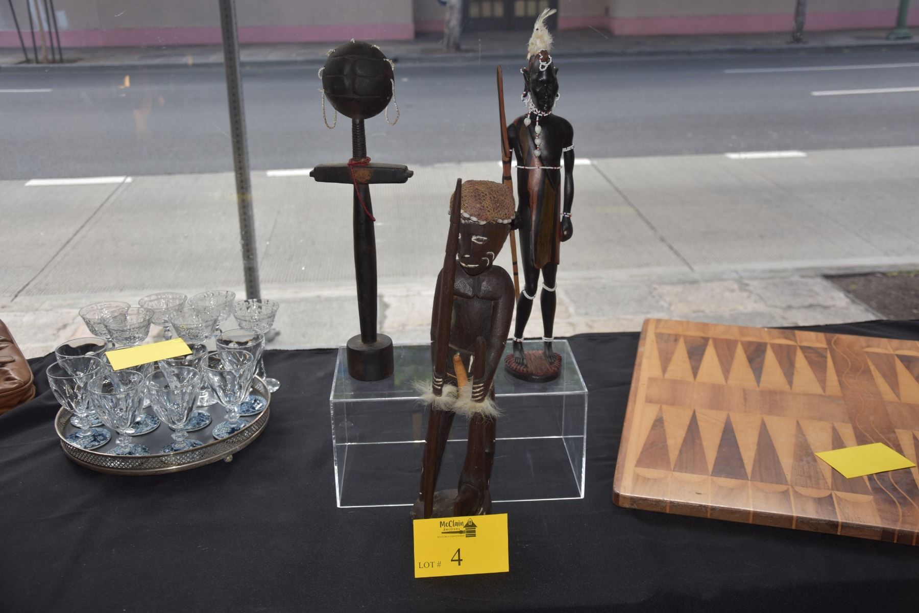 COLLECTION OF AFRICAN WOOD CARVINGS (3 PCS) (DOES NOT INCLUDE STAND)