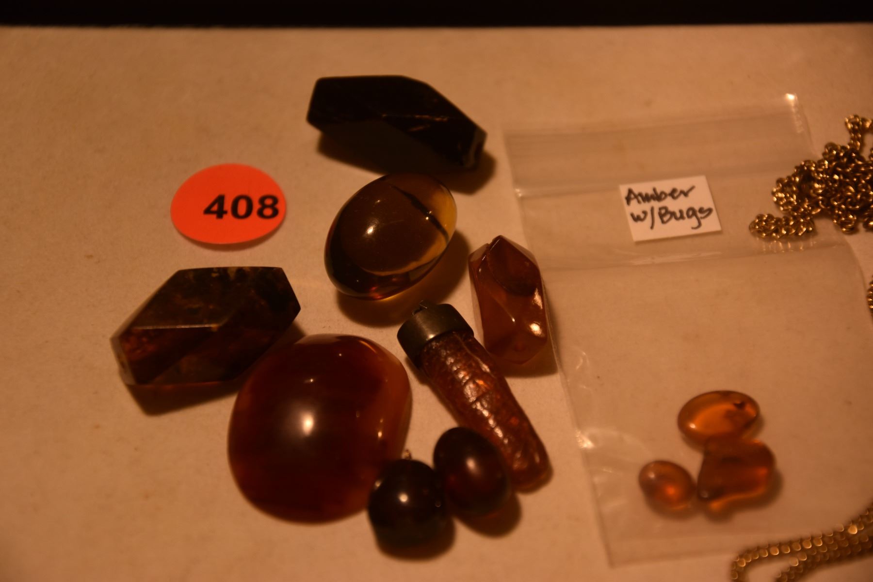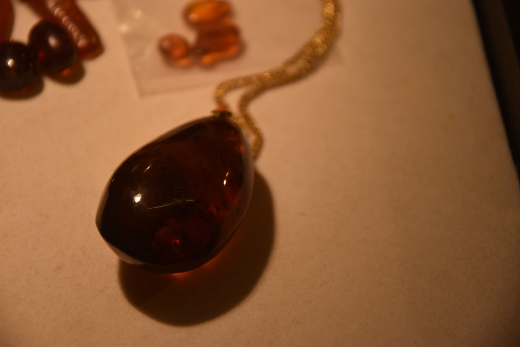 COLLECTION OF AMBER SPECIMENS, BEADS & PENDANT (12 PCS)
