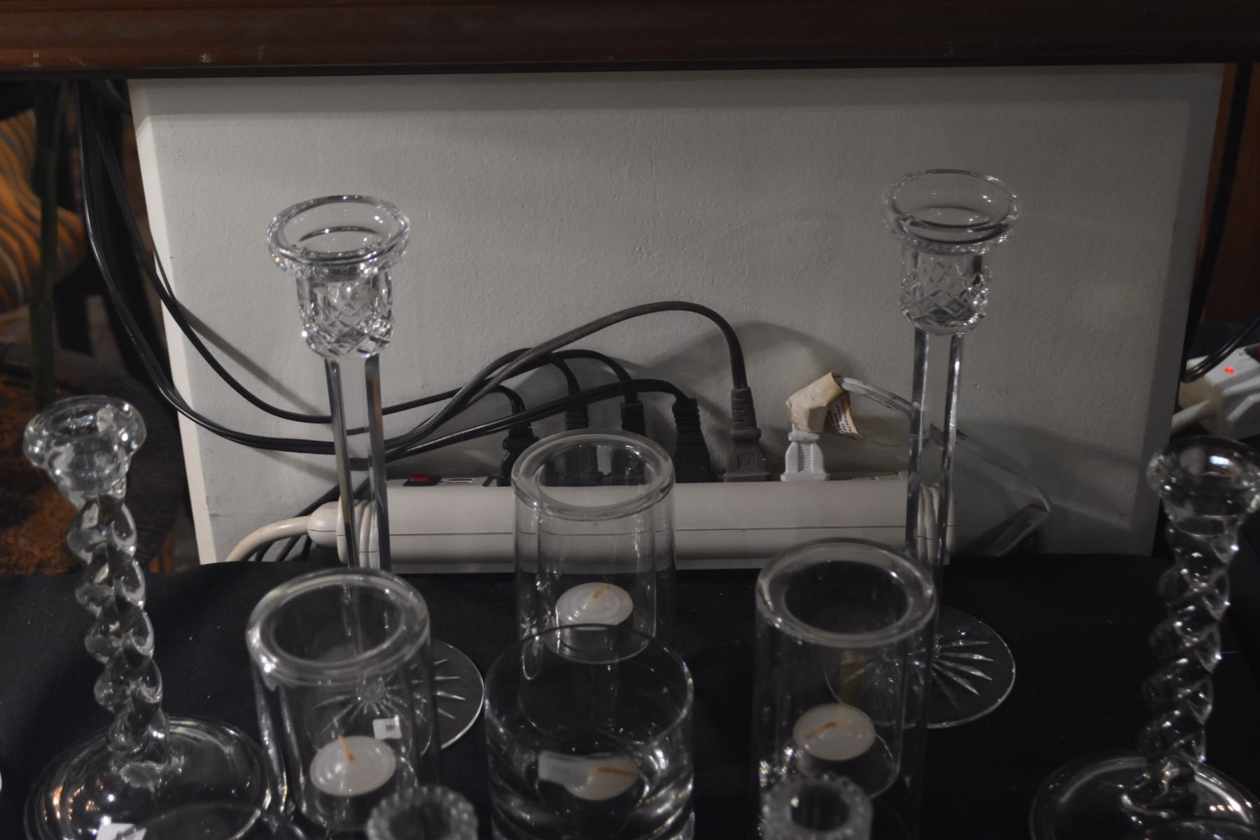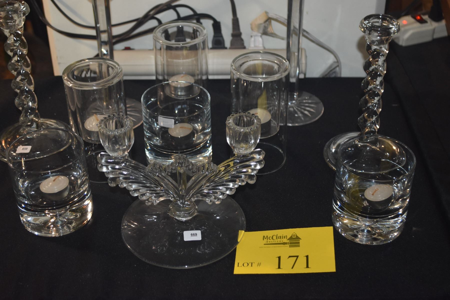 COLLECTION OF ASSORTED CRYSTAL & GLASS CANDLE HOLDERS (11 PCS)