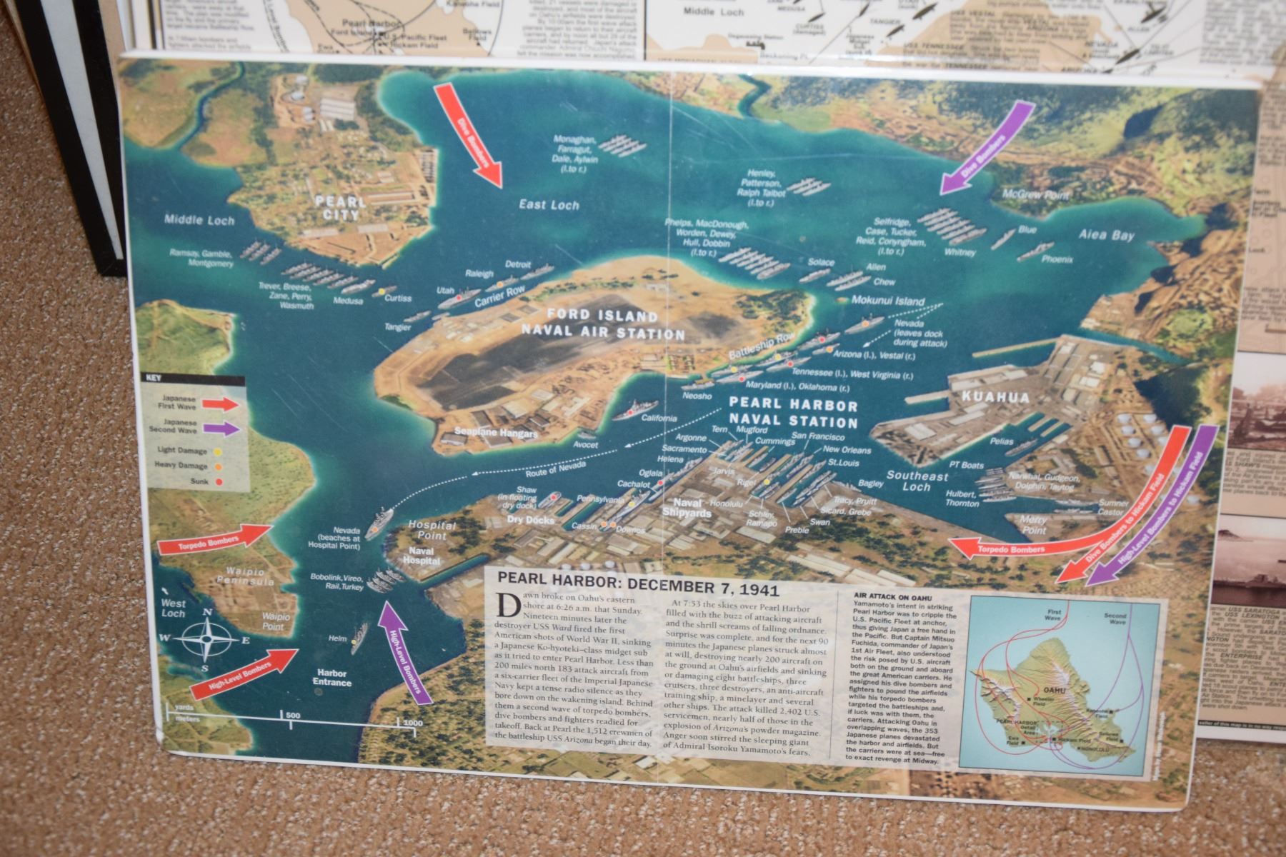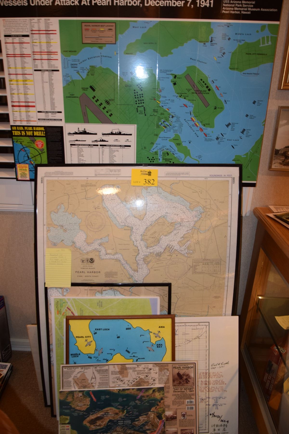 COLLECTION OF ASSORTED MAPS, ARIAL VIEWS, DRAWING, PRINTS, ETC. (MOSTLY OF PEARL HARBOR) (12 PCS)