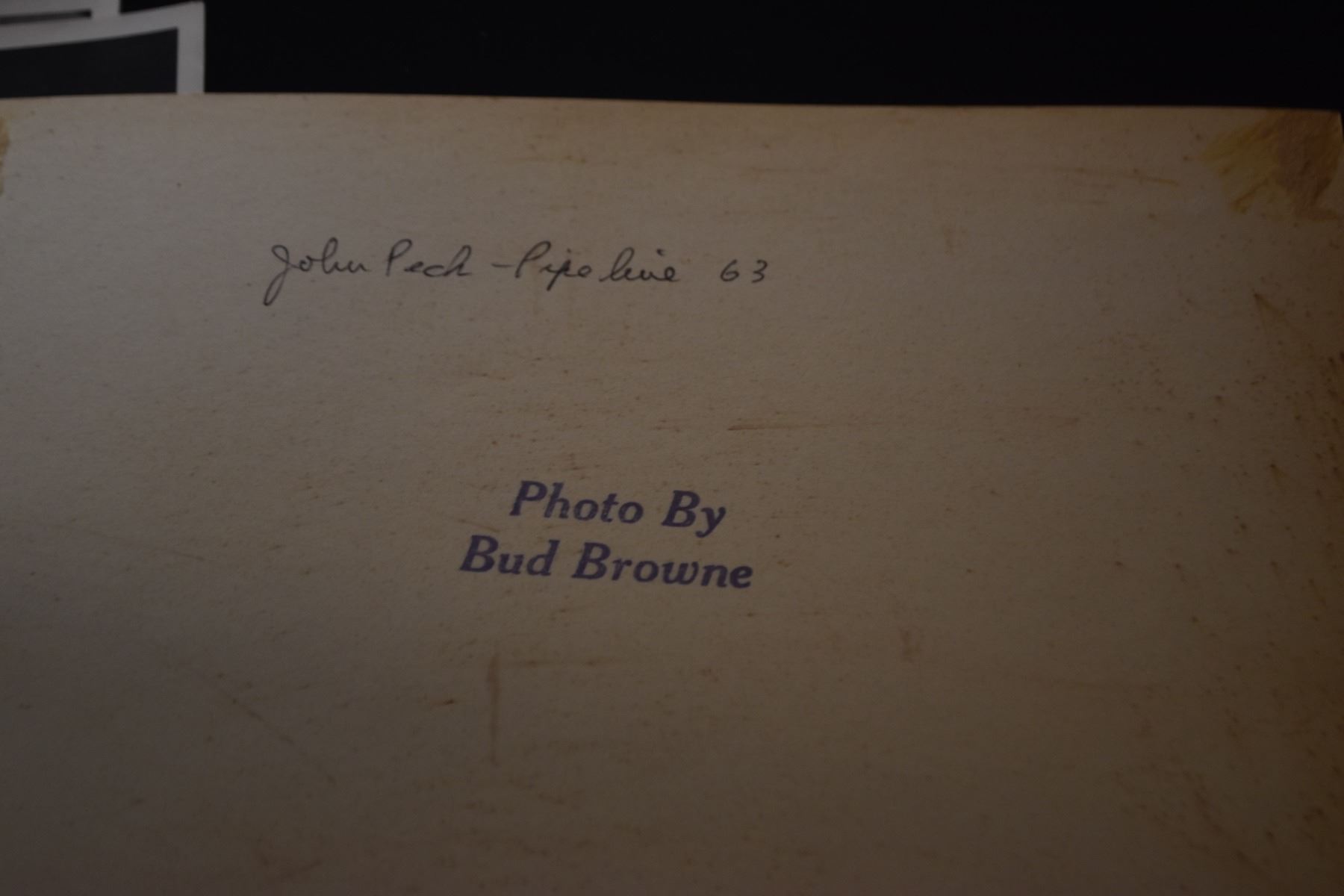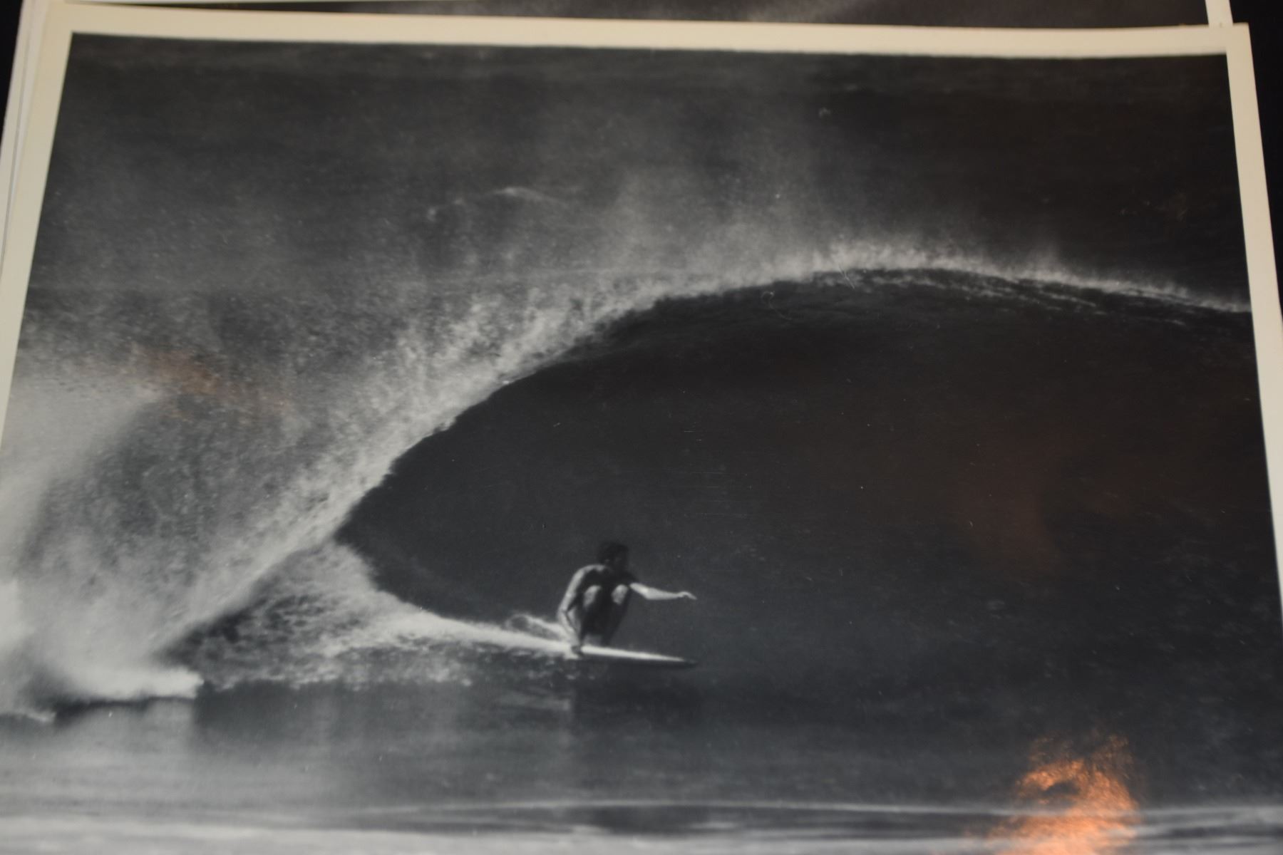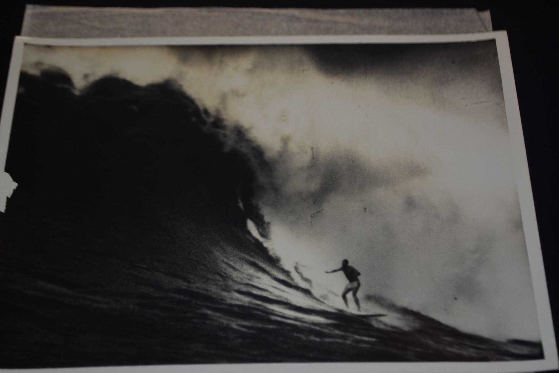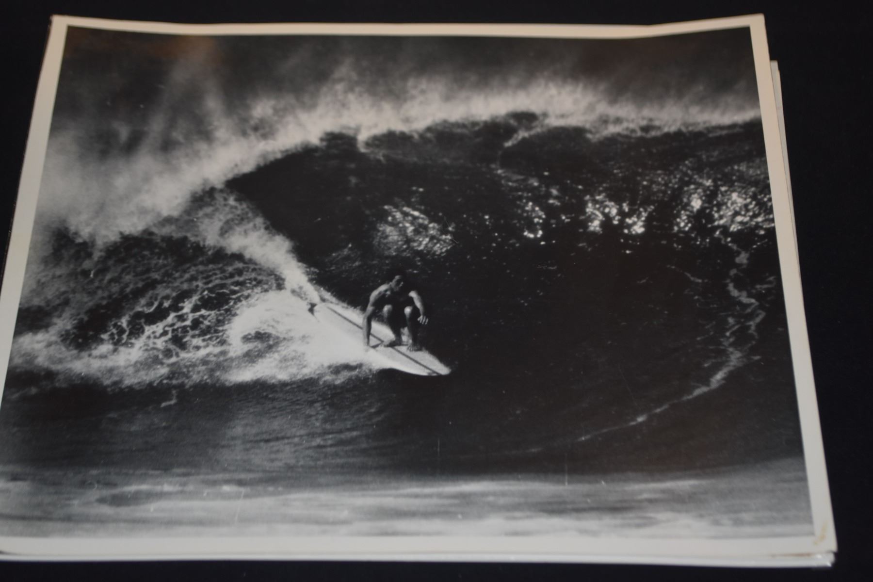 COLLECTION OF BLACK & WHITE PHOTOS BY BUD BROWN (1912-2008) OF BIG WAVE SURFERS GREG NOLL, MIKE STANG, DEEVEY WEBER, JIM FISHER, PETER COLE, JOSE ANGEL & JOHN PECK (15 PCS)