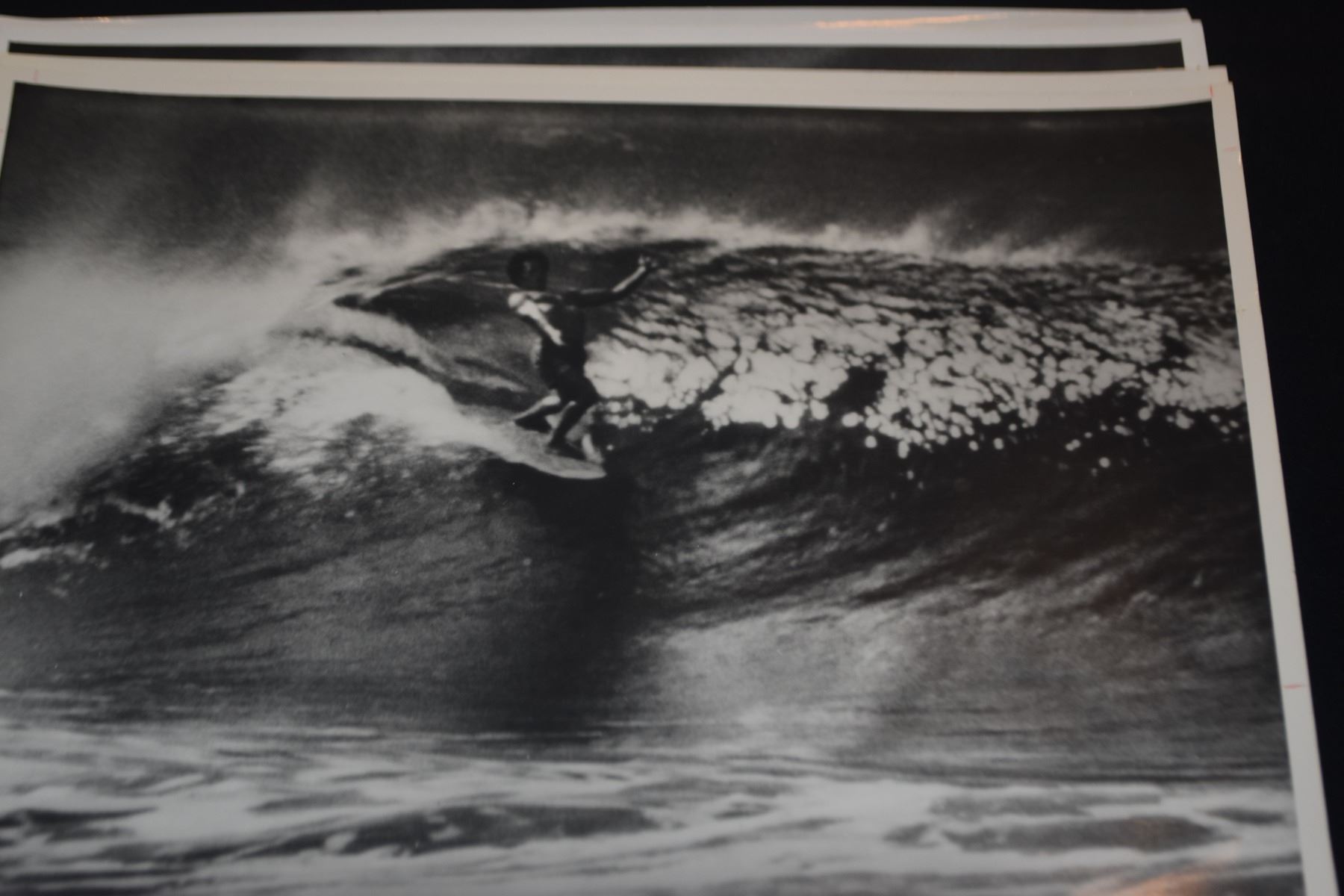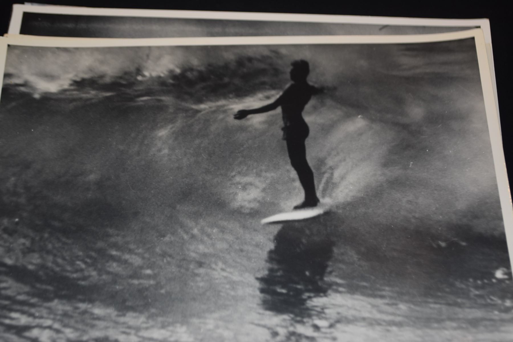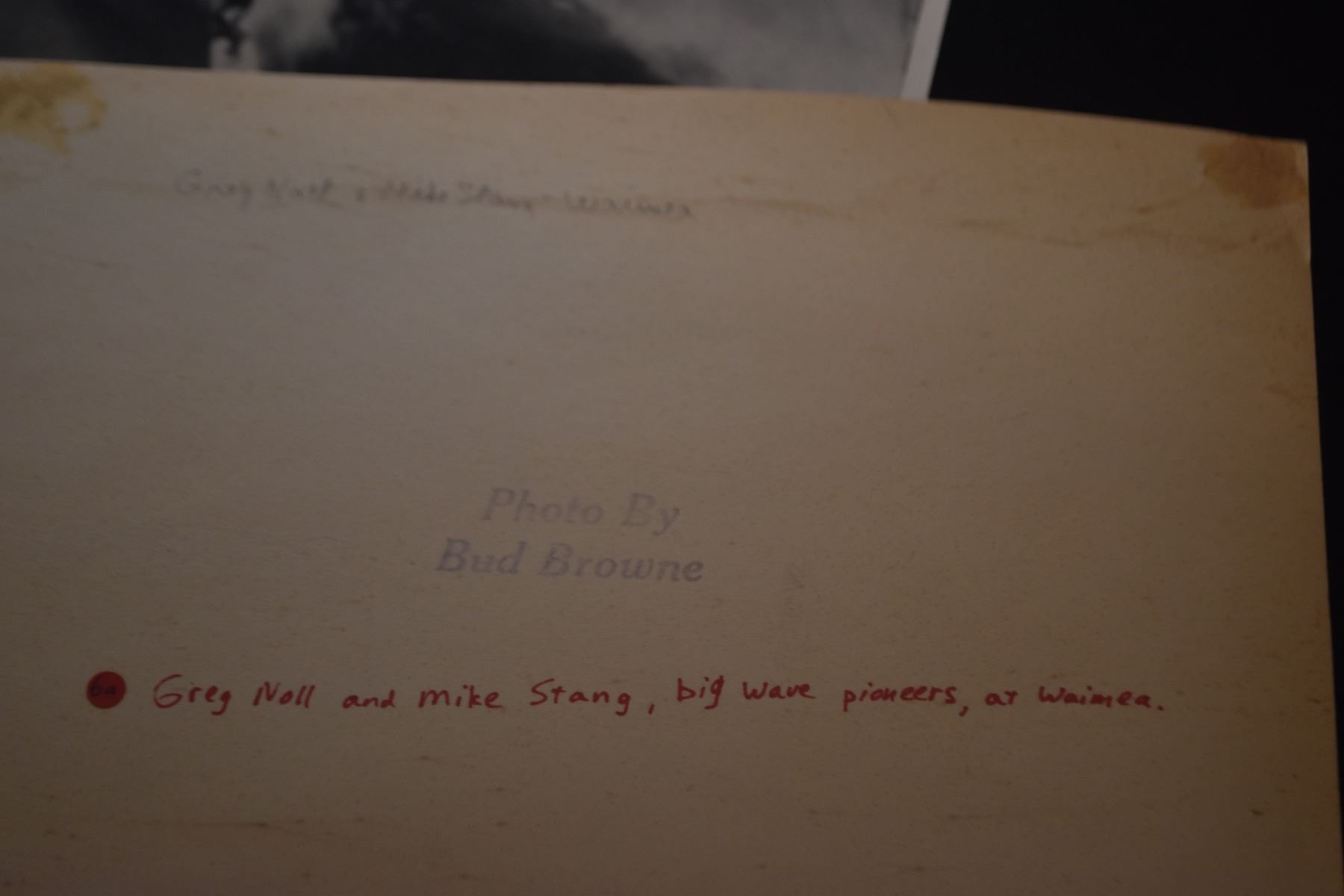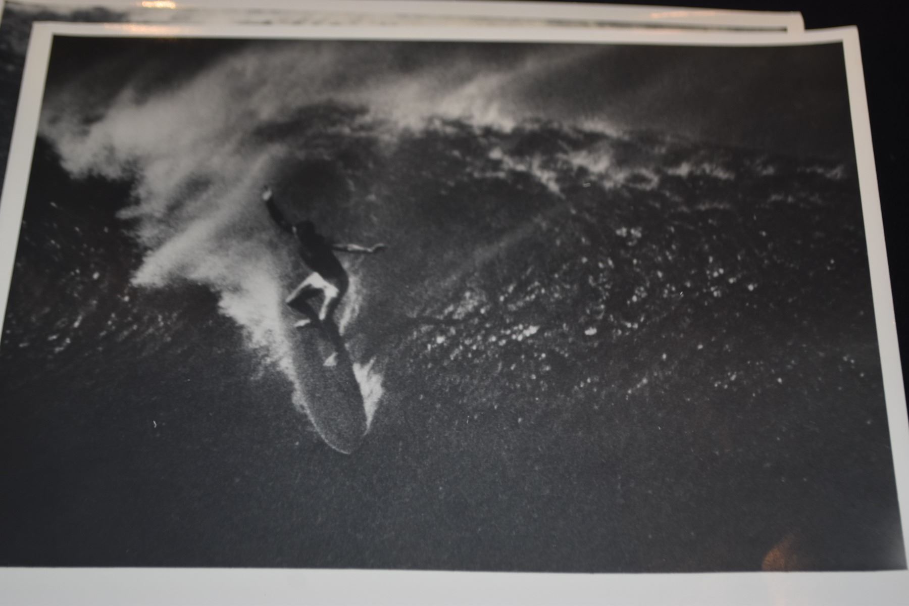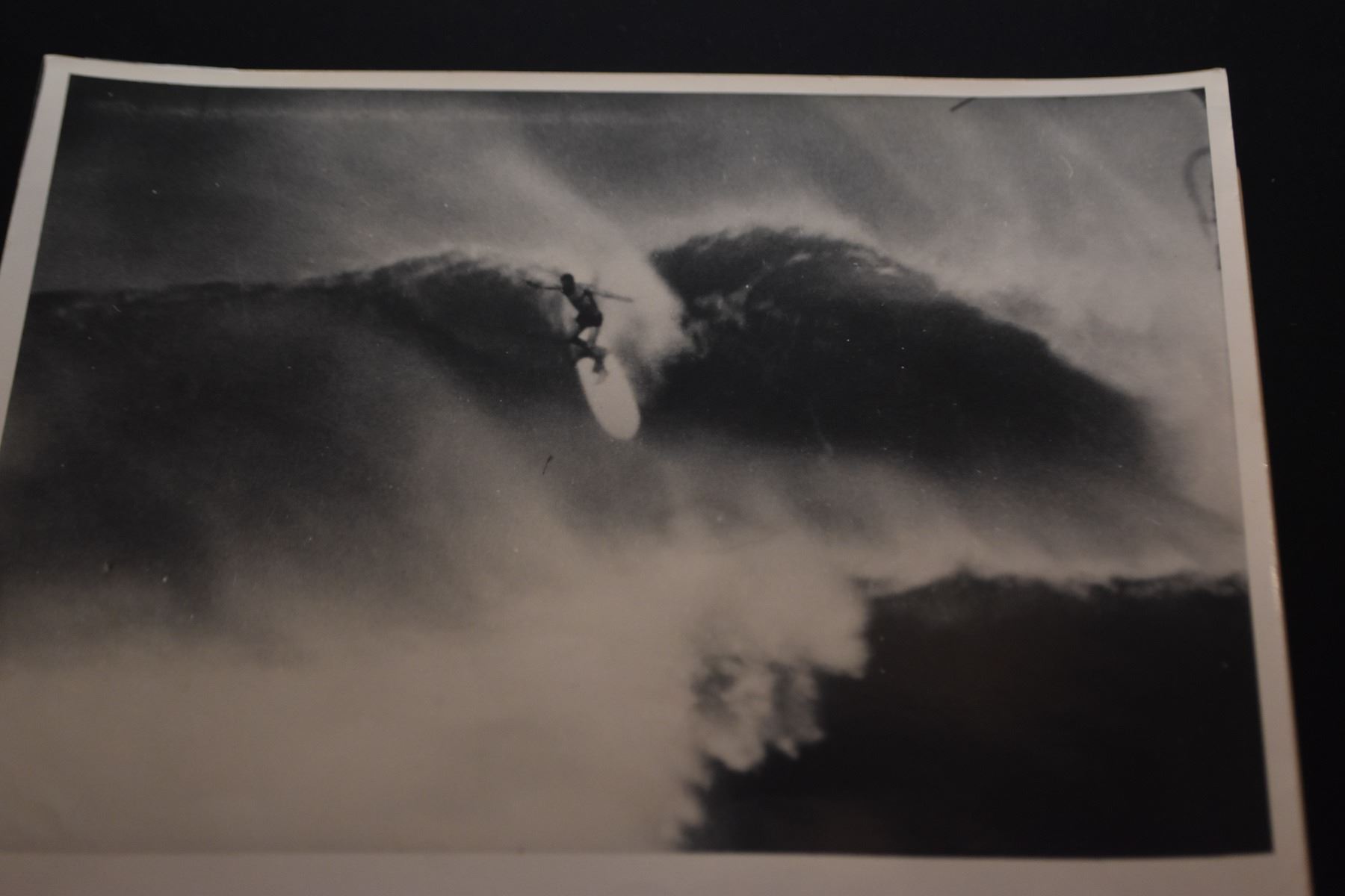 COLLECTION OF BLACK & WHITE PHOTOS BY BUD BROWN (1912-2008) OF BIG WAVE SURFERS GREG NOLL, MIKE STANG, DEEVEY WEBER, JIM FISHER, PETER COLE, JOSE ANGEL & JOHN PECK (15 PCS)
