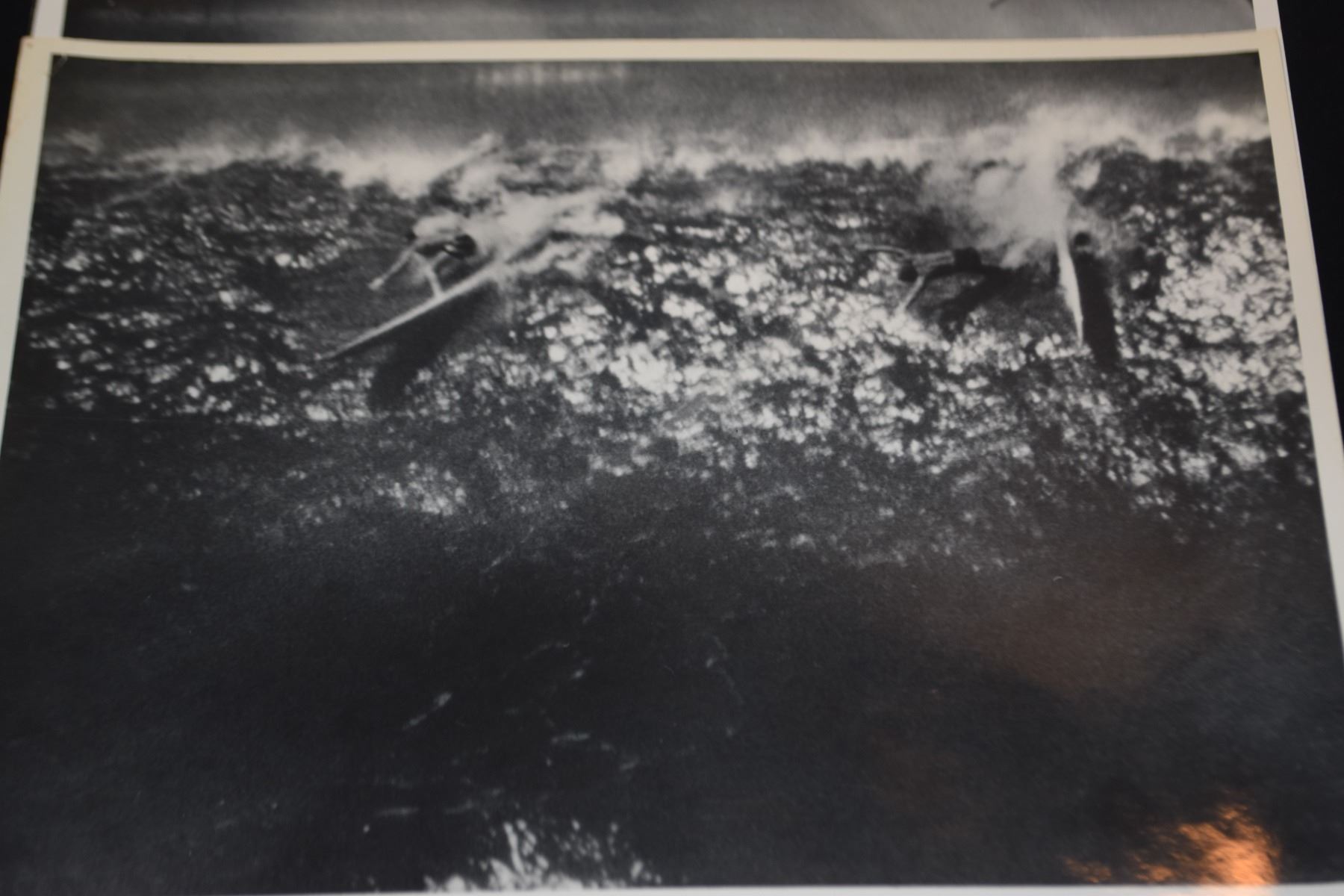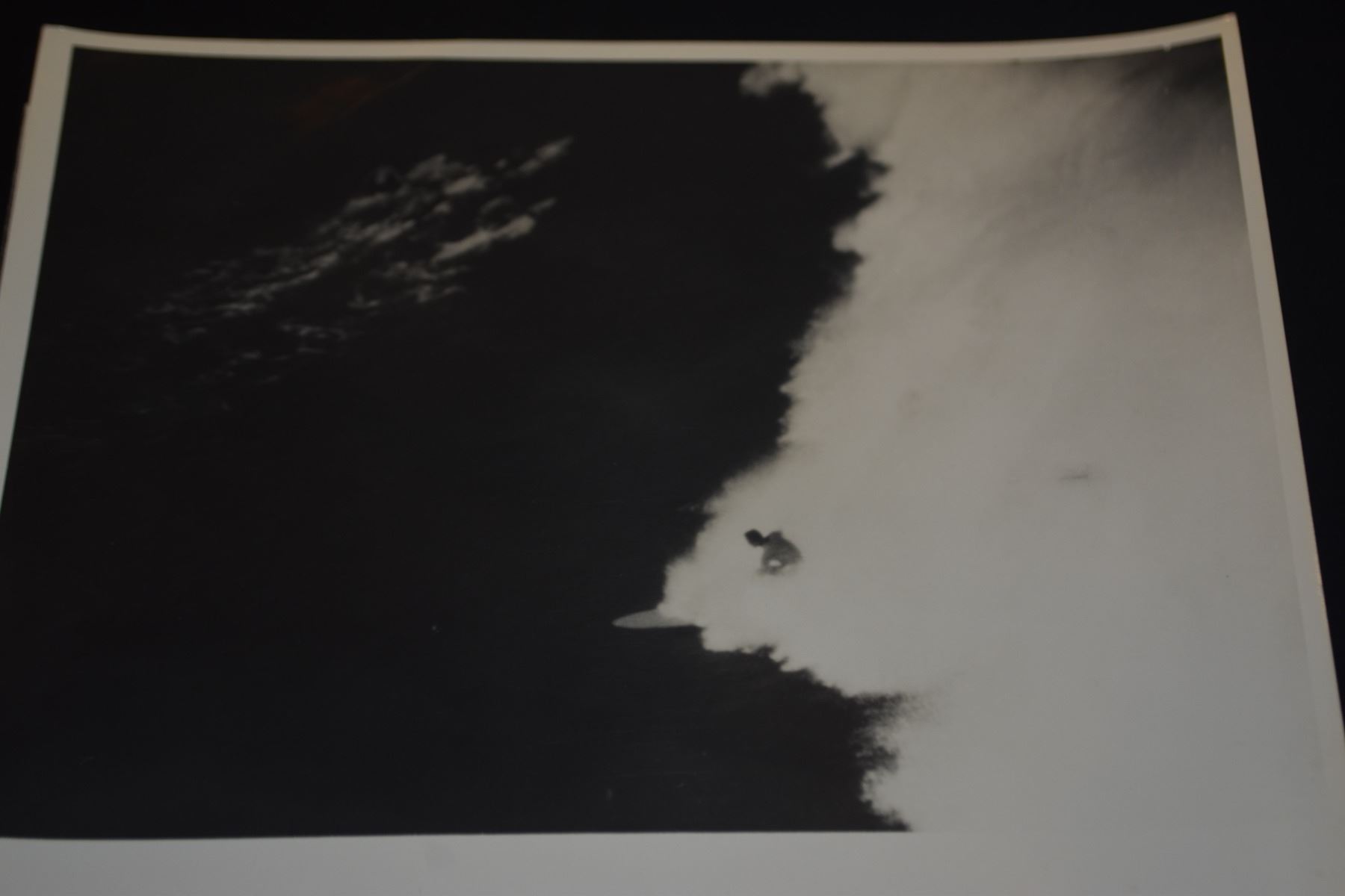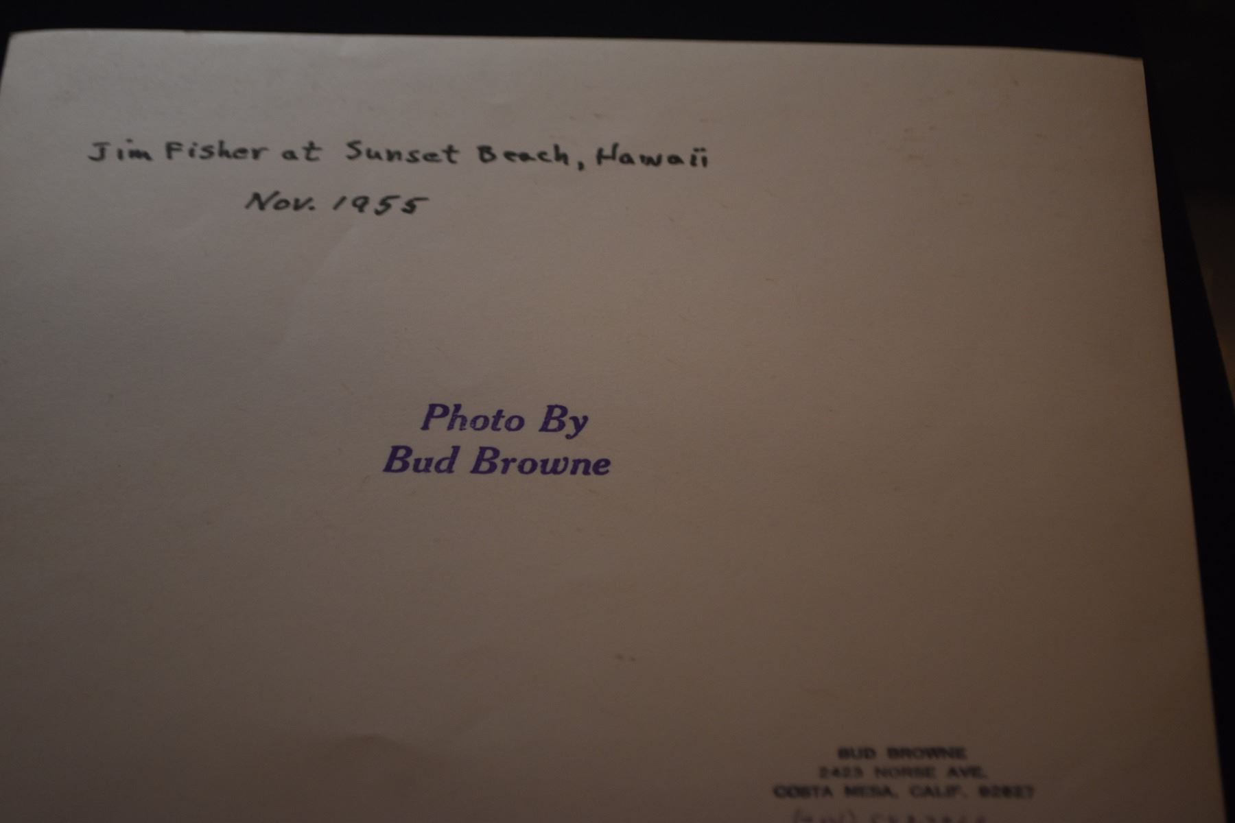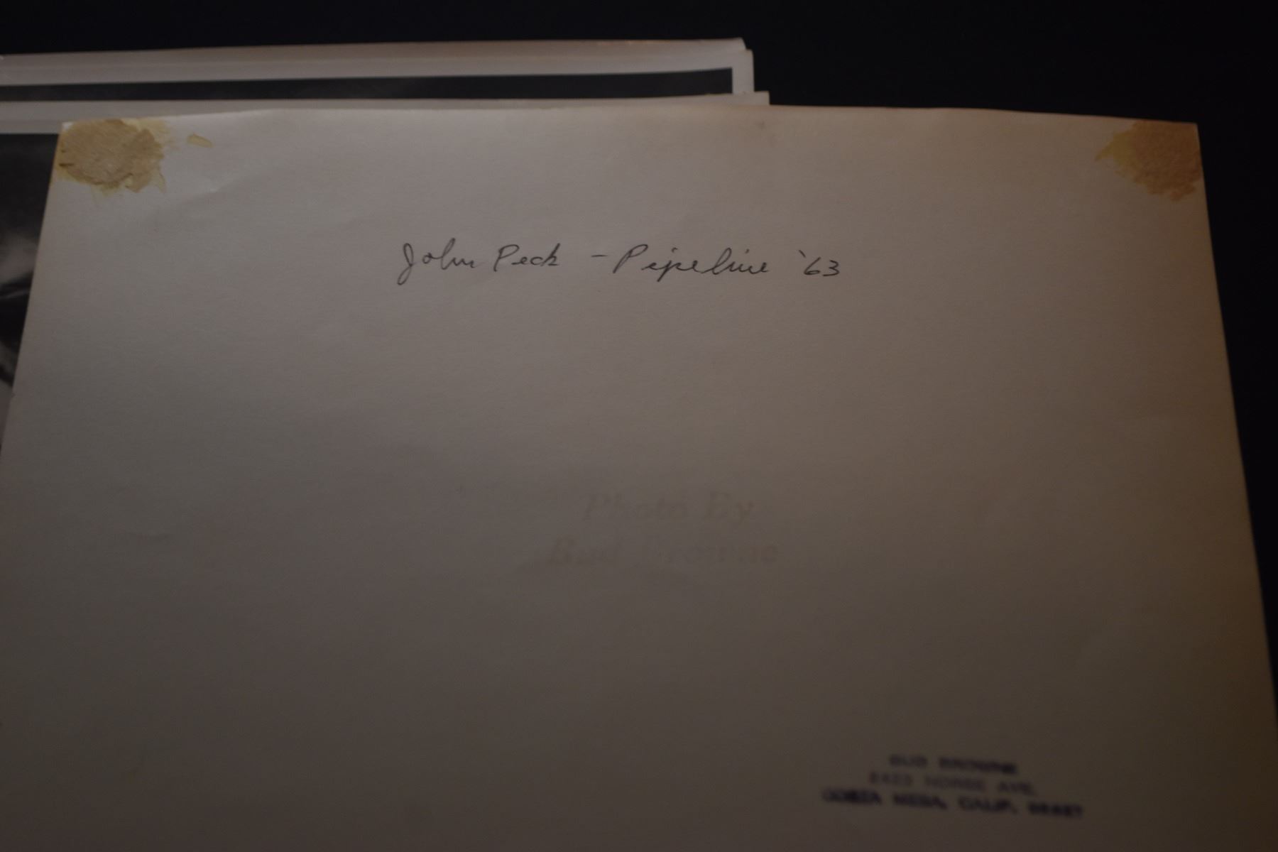 COLLECTION OF BLACK & WHITE PHOTOS BY BUD BROWN (1912-2008) OF BIG WAVE SURFERS GREG NOLL, MIKE STANG, DEEVEY WEBER, JIM FISHER, PETER COLE, JOSE ANGEL & JOHN PECK (15 PCS)
