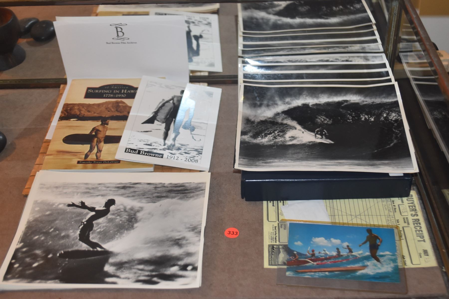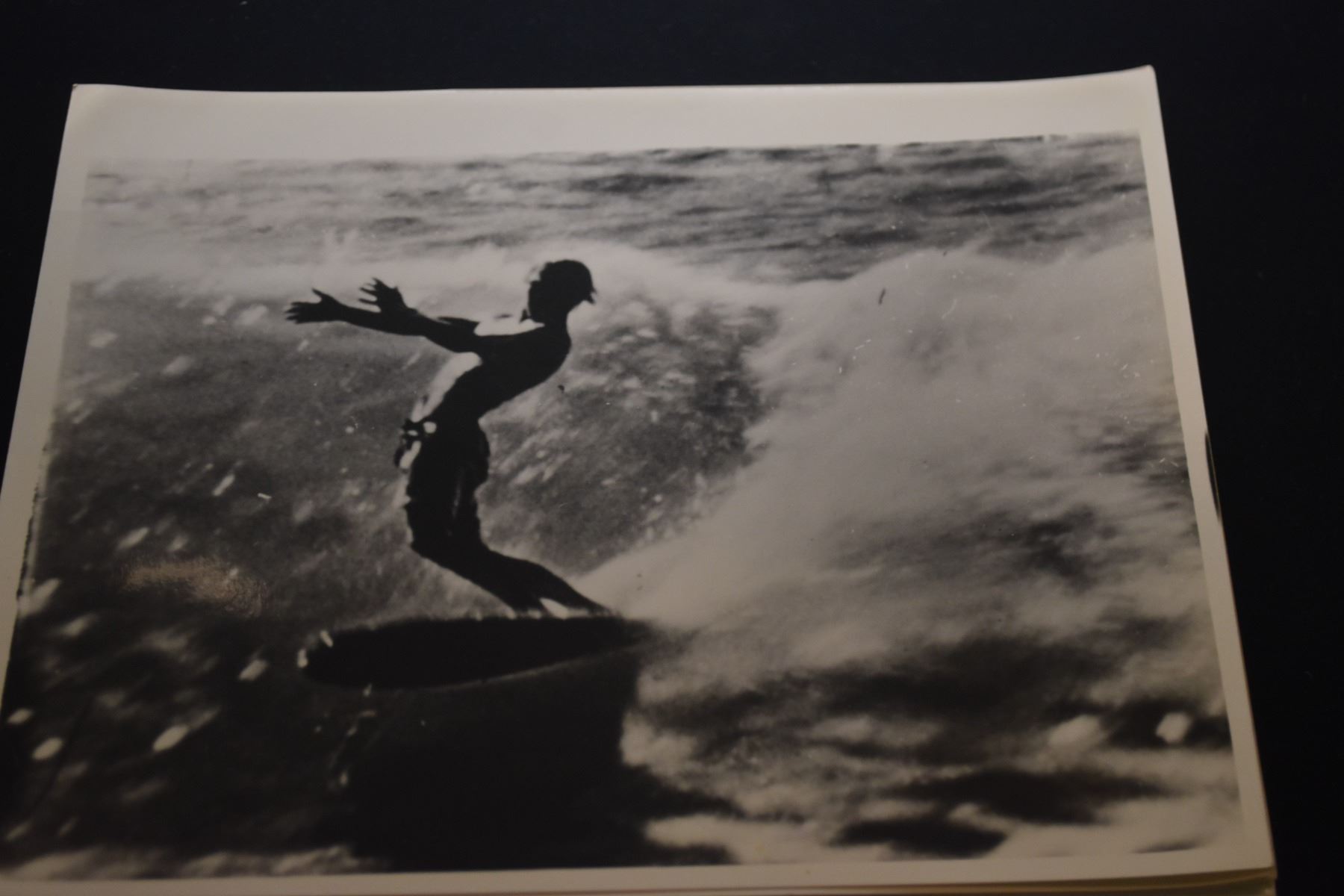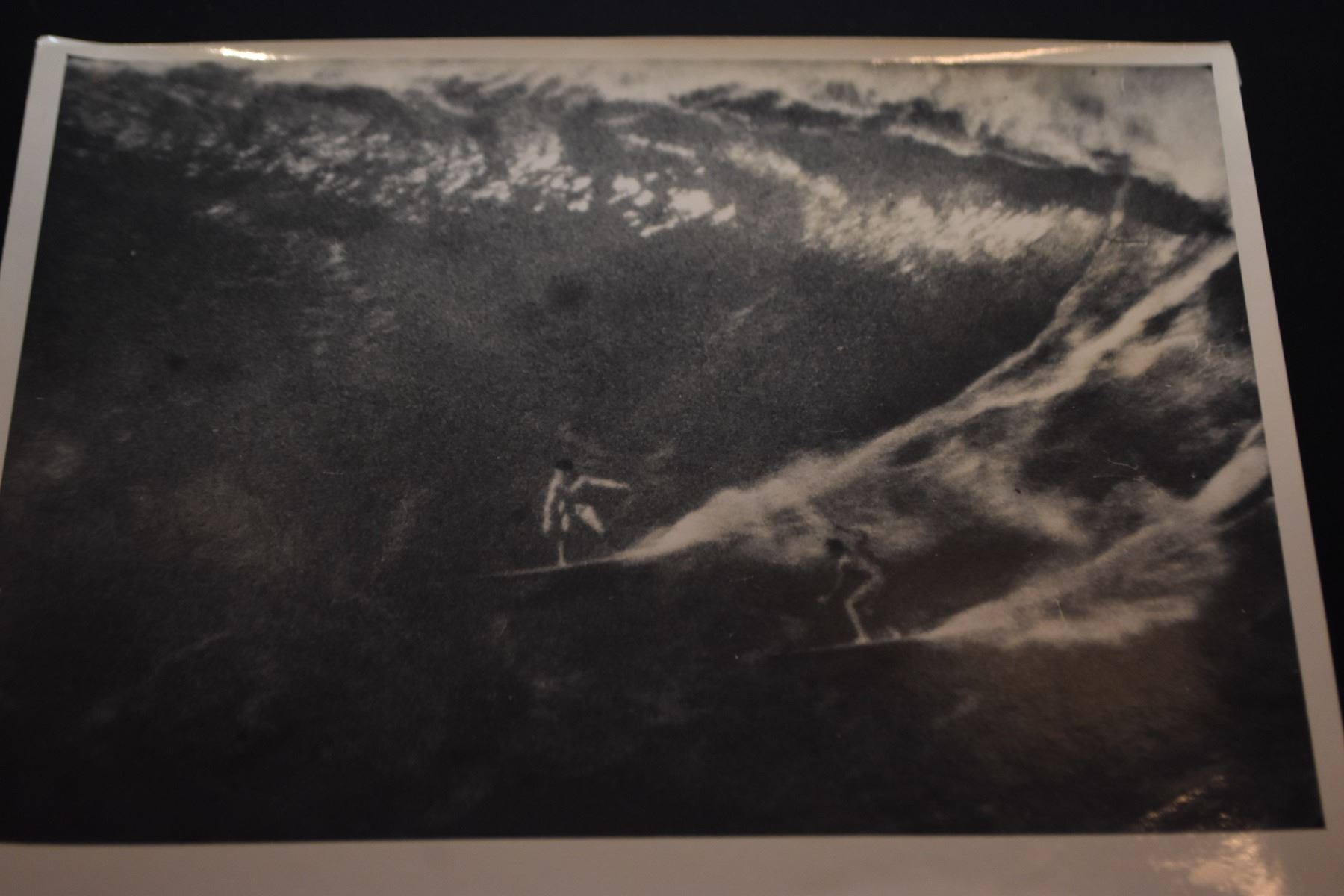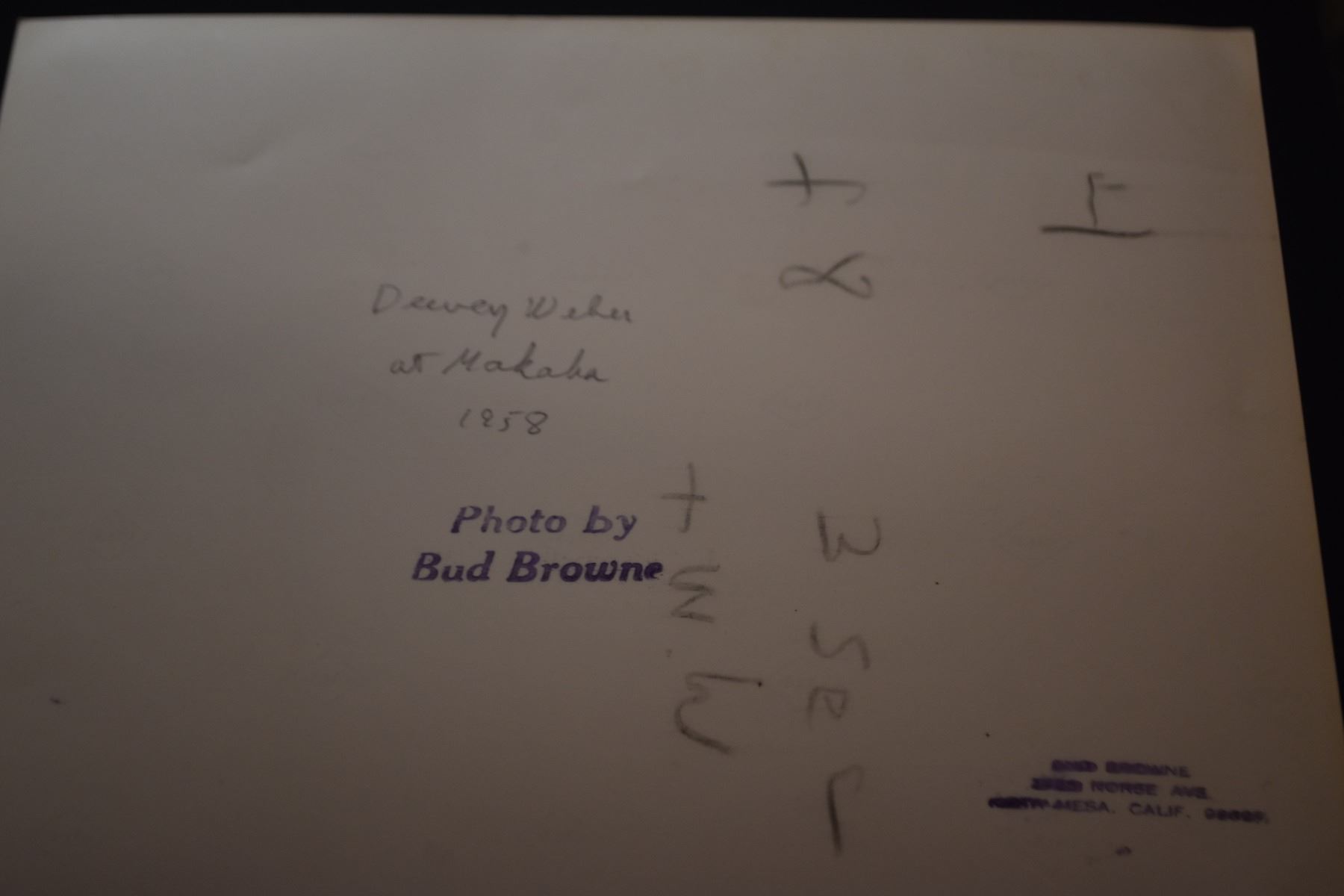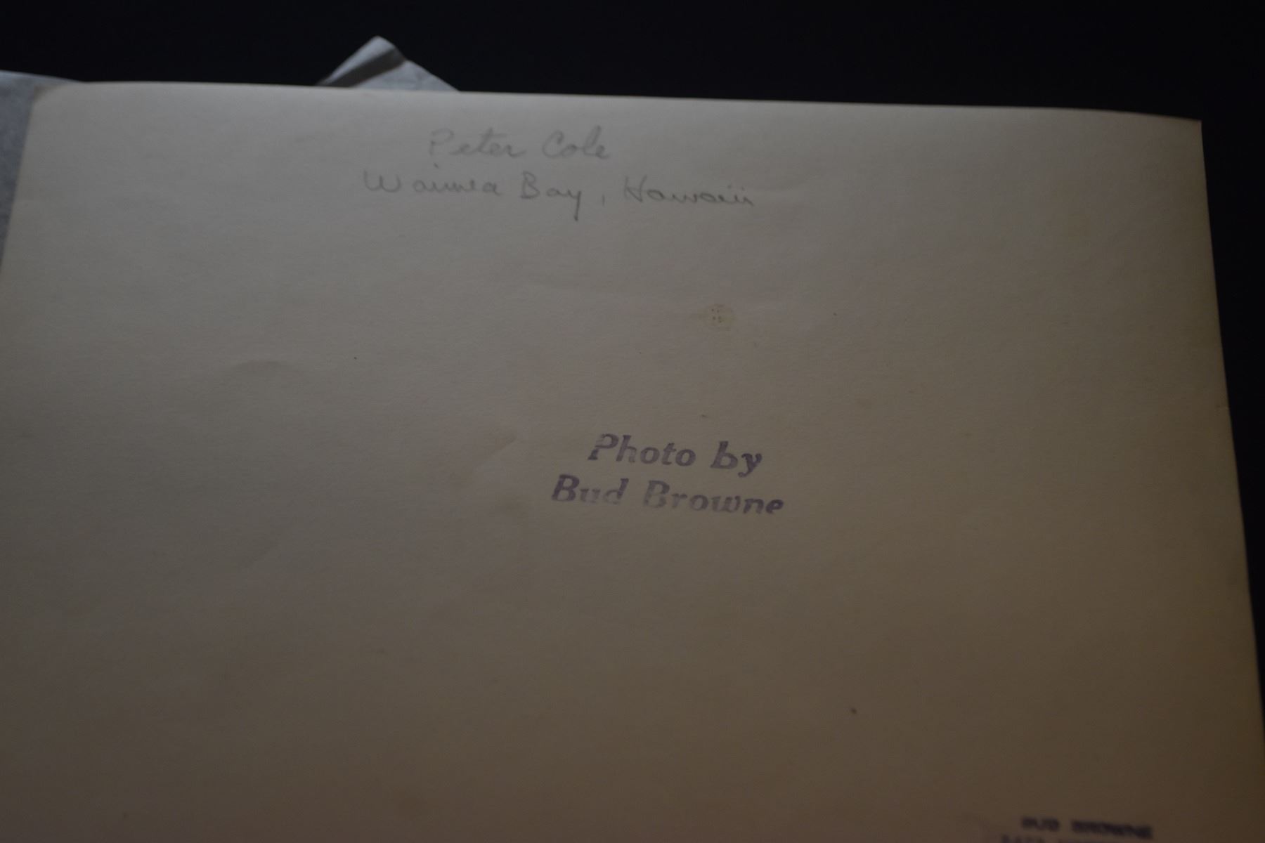 COLLECTION OF BLACK & WHITE PHOTOS BY BUD BROWN (1912-2008) OF BIG WAVE SURFERS GREG NOLL, MIKE STANG, DEEVEY WEBER, JIM FISHER, PETER COLE, JOSE ANGEL & JOHN PECK (15 PCS)