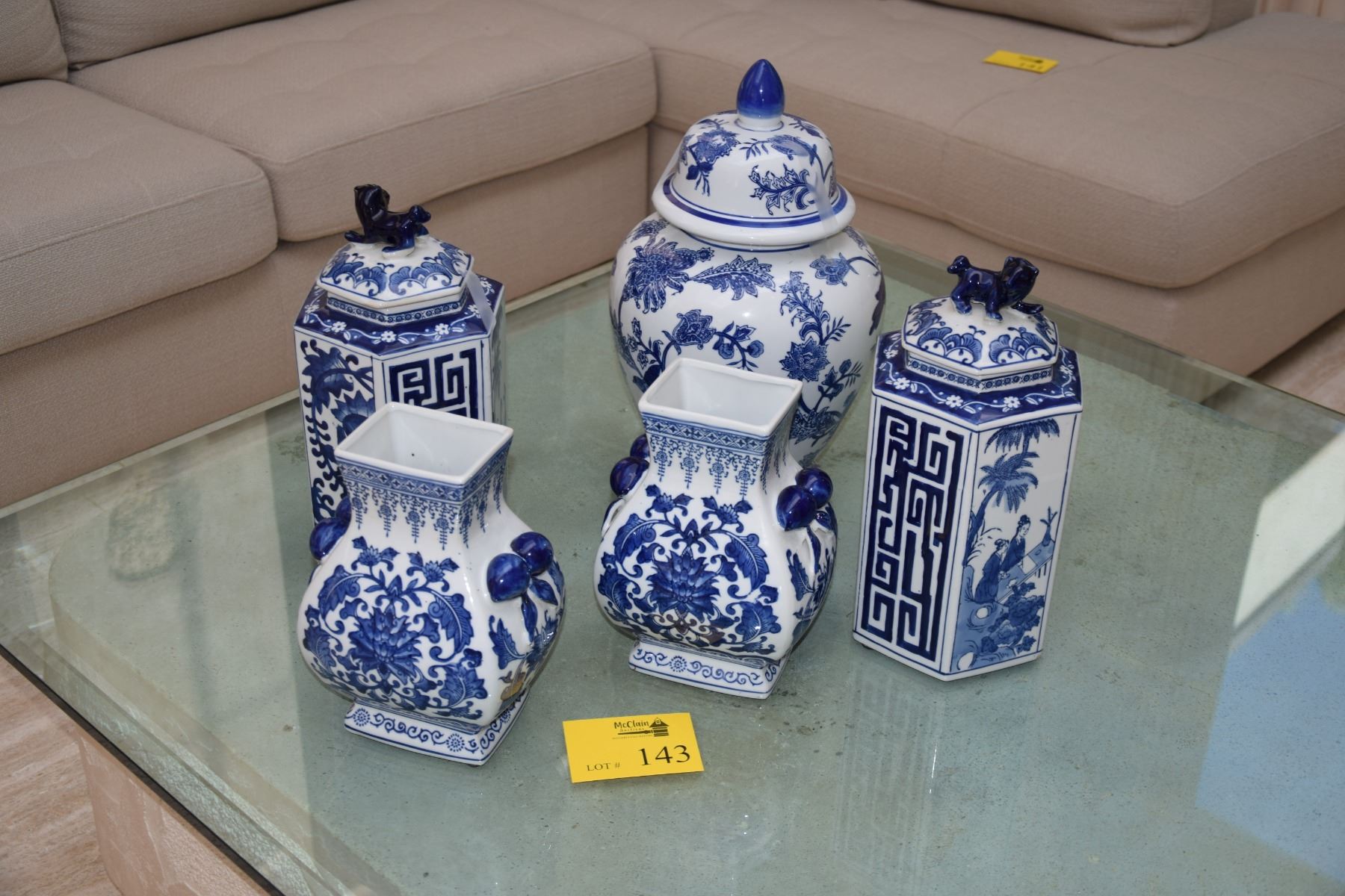 COLLECTION OF BLUE & WHITE VASES & COVERED JARS (5 PCS)