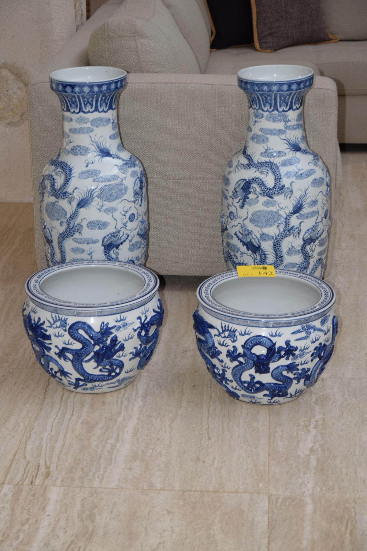 COLLECTION OF BLUE & WHITE VASES & PLANTER POTS (4 PCS)