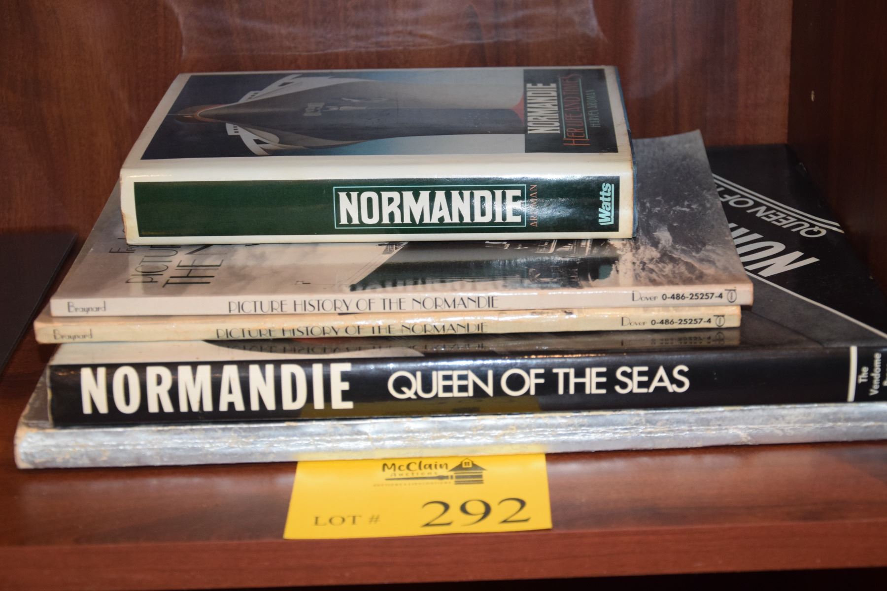 COLLECTION OF BOOKS: NORMANDIE: QUEEN OF THE SEAS, NEW YORK, VENDOME PRESS, 1985, PICTURE HISTORY OF THE NORMANDIE, NORMANDIE: HER LIFE & TIMES & NORMANDIE: LE PAQUEBOT ETUDE, TECHNIQUE, PARIS 1935 (5 PCS)