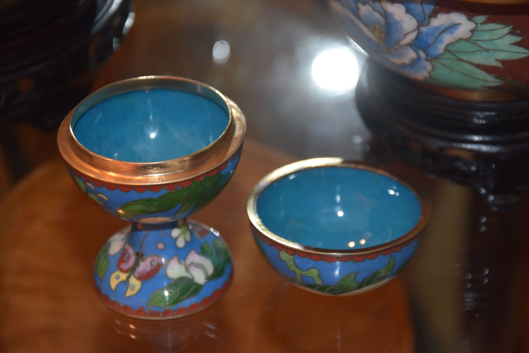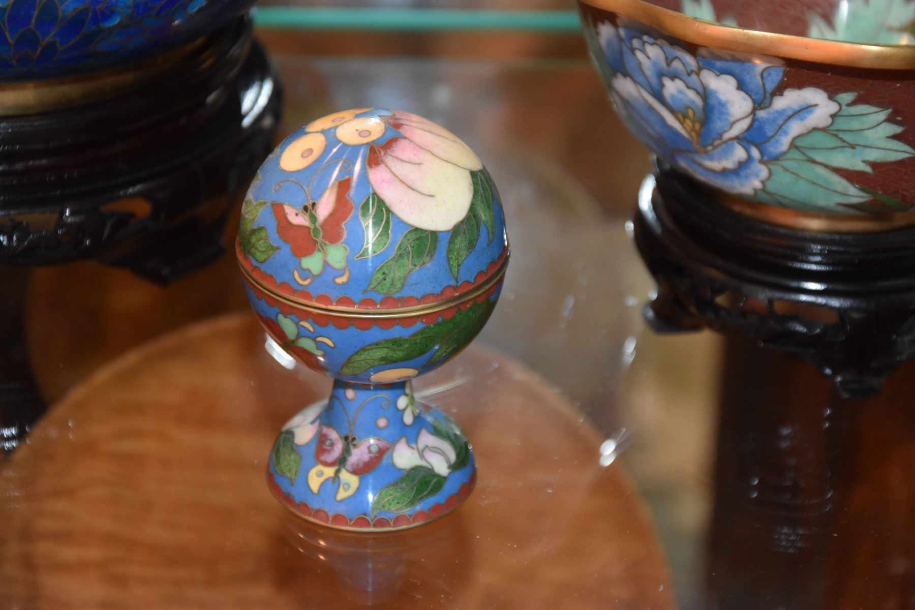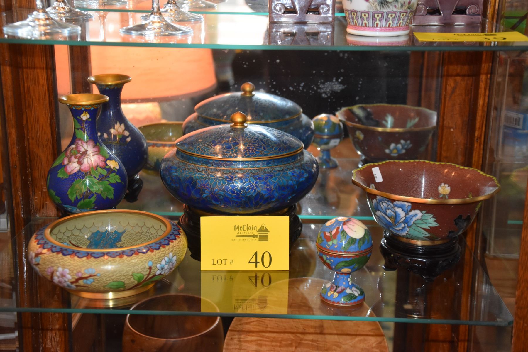 COLLECTION OF CLOISONNE BOWLS, VASE, COVERED DISH & TRINKET BOX (5 PCS)