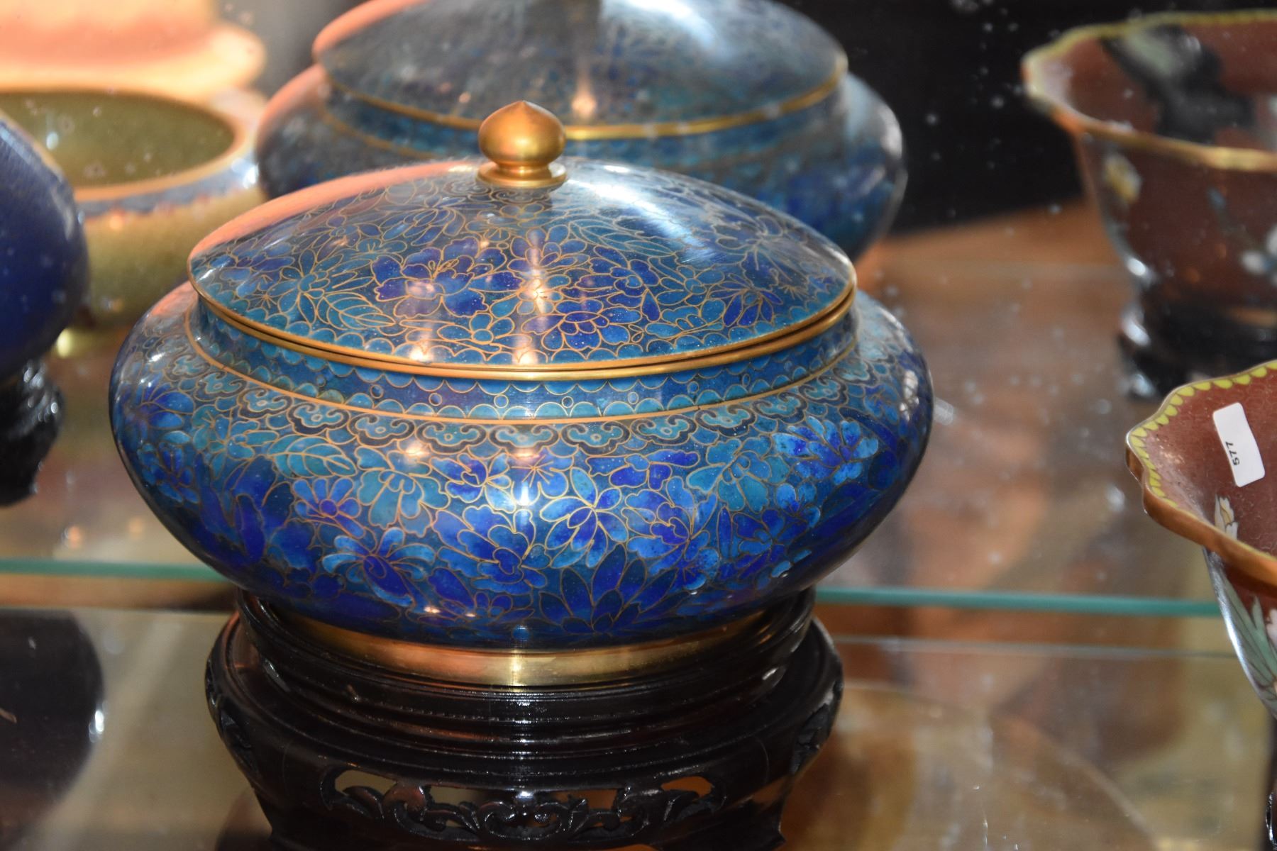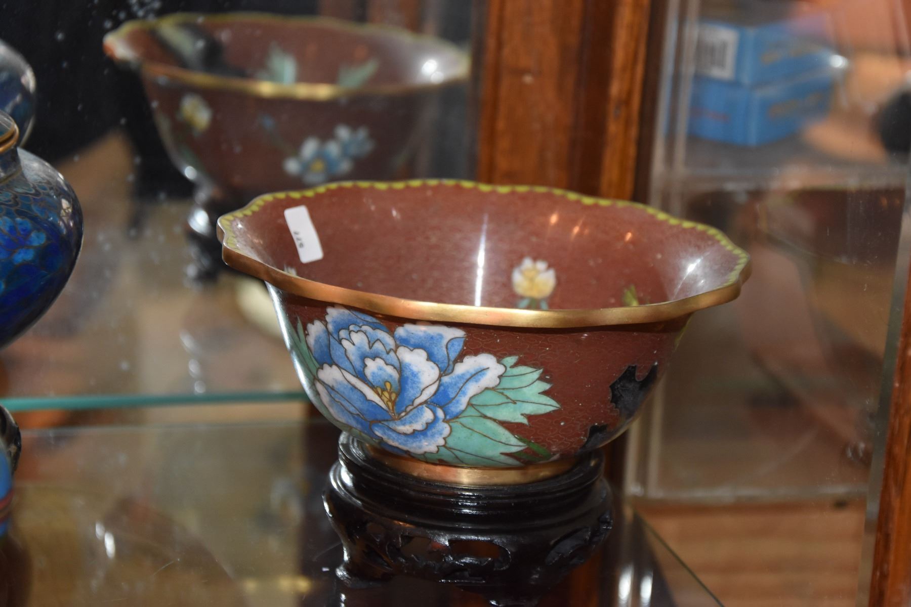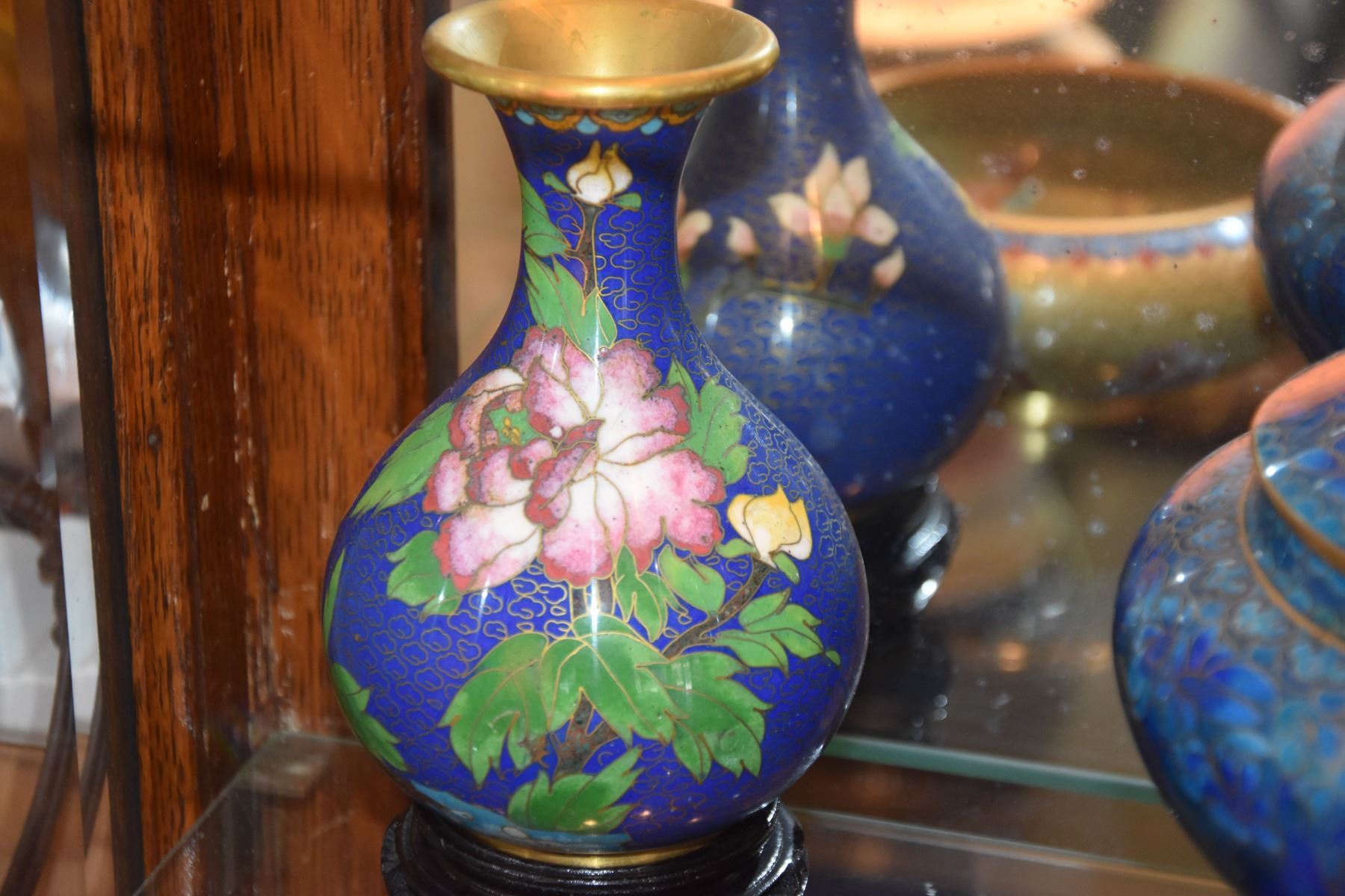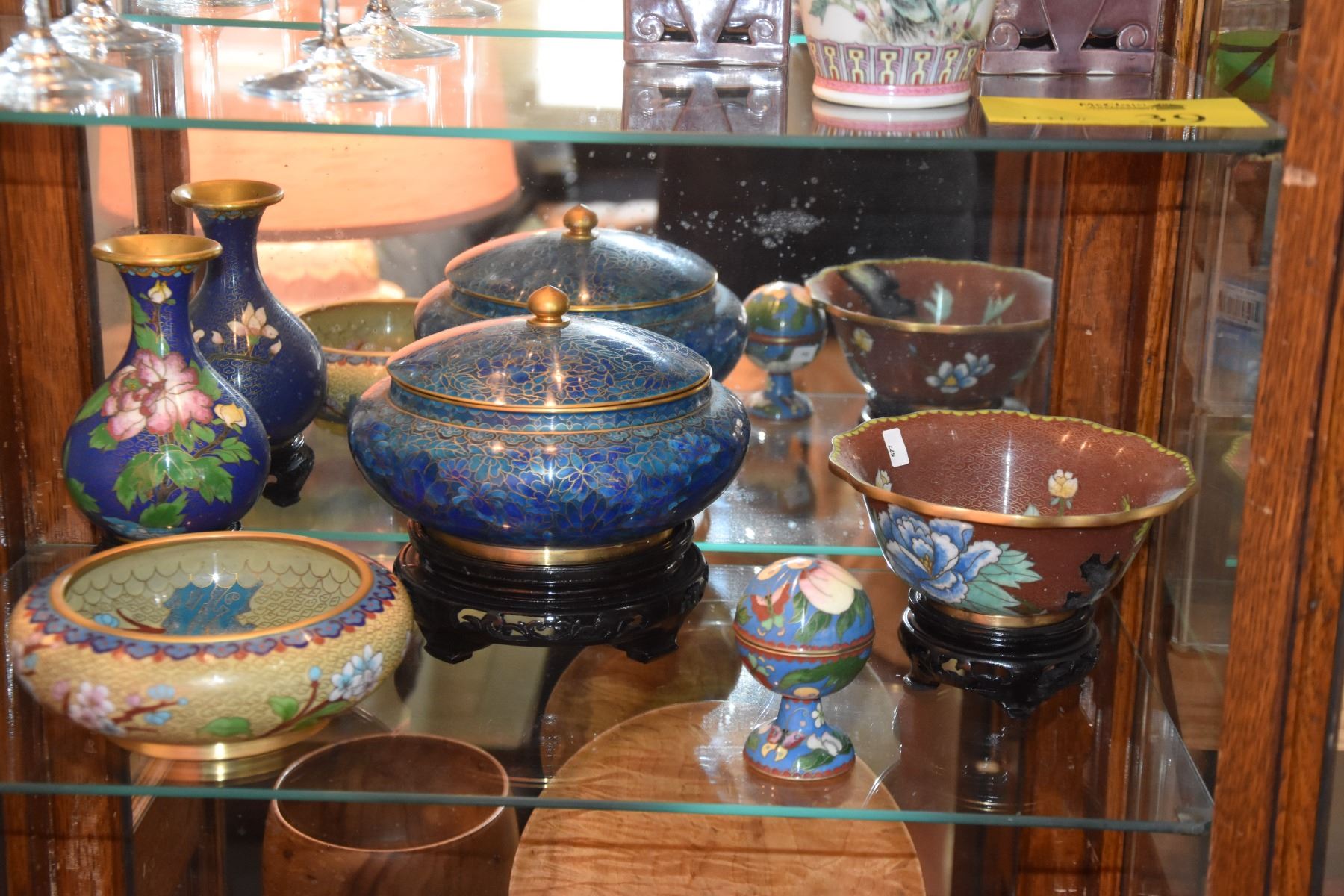 COLLECTION OF CLOISONNE BOWLS, VASE, COVERED DISH & TRINKET BOX (5 PCS)