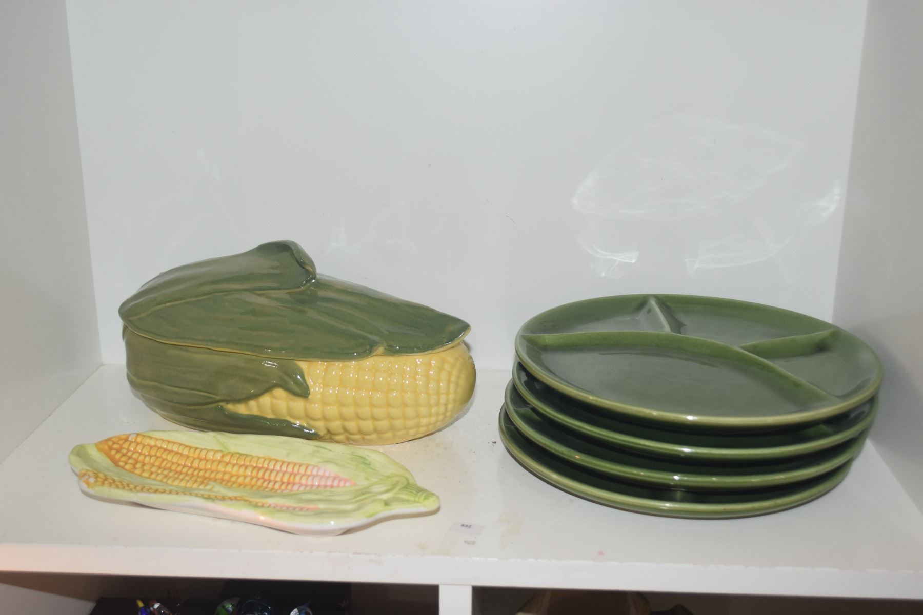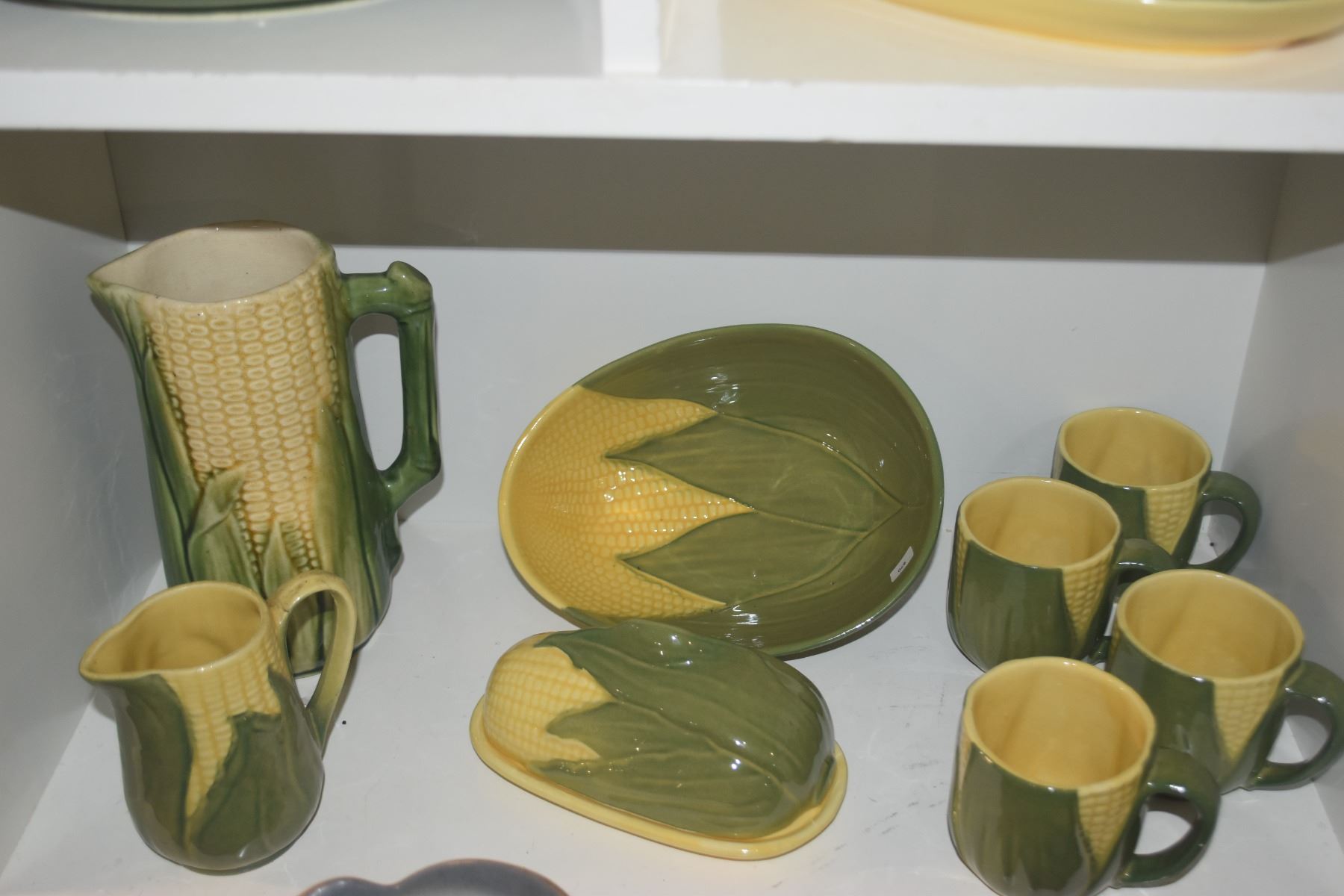 COLLECTION OF CORN THEMED PLATES, PITCHERS, CUPS, BUTTER DISH, ETC. (18 PCS)