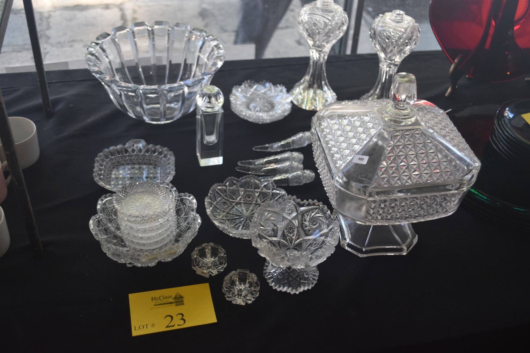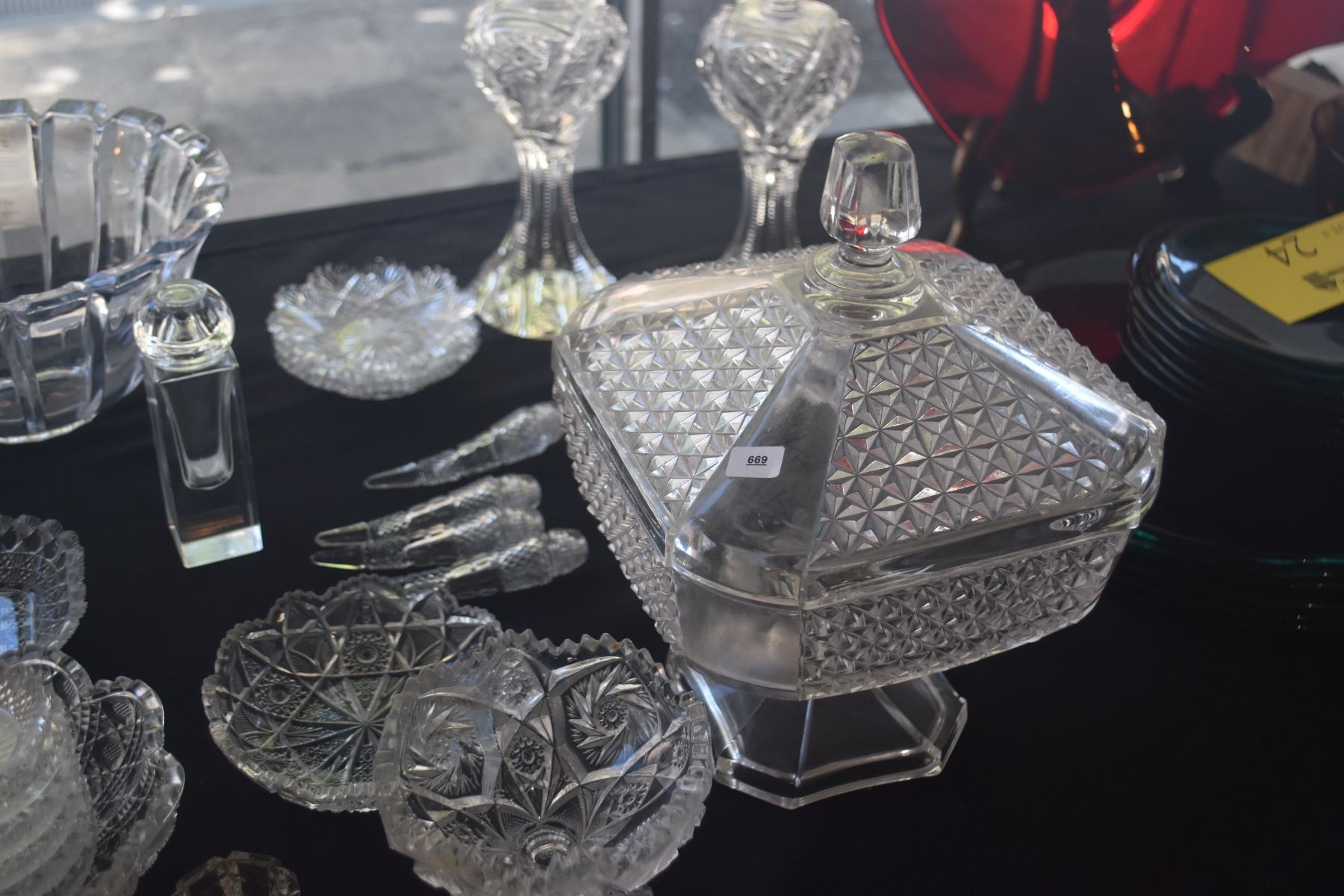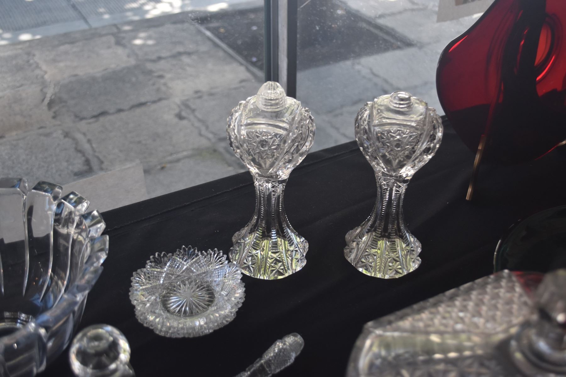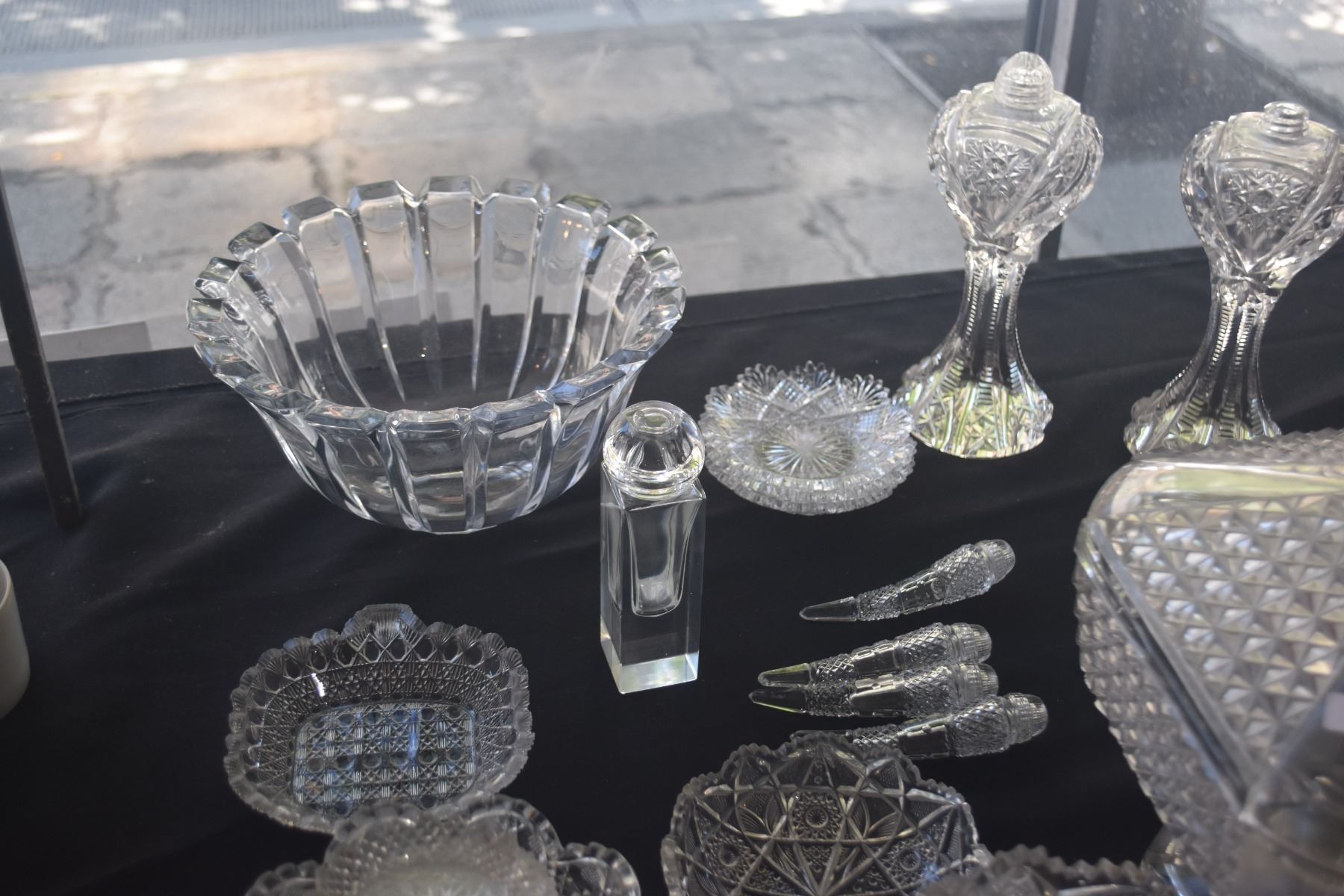 COLLECTION OF CUT & PRESSED CRYSTAL & GLASS SALT & PEPPERS, BOWLS, NUT DISHES, COVERED DISH, ETC. (2