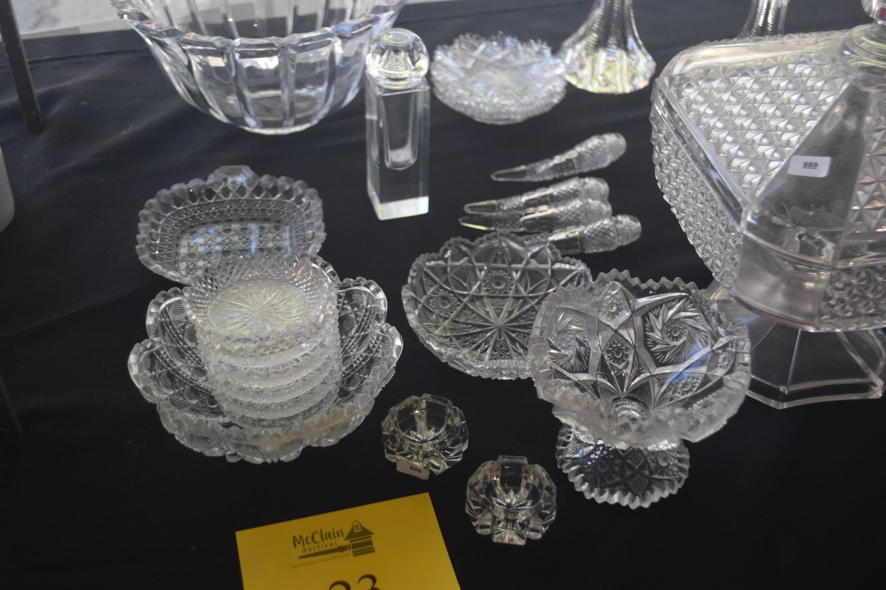 COLLECTION OF CUT & PRESSED CRYSTAL & GLASS SALT & PEPPERS, BOWLS, NUT DISHES, COVERED DISH, ETC. (24 PCS)