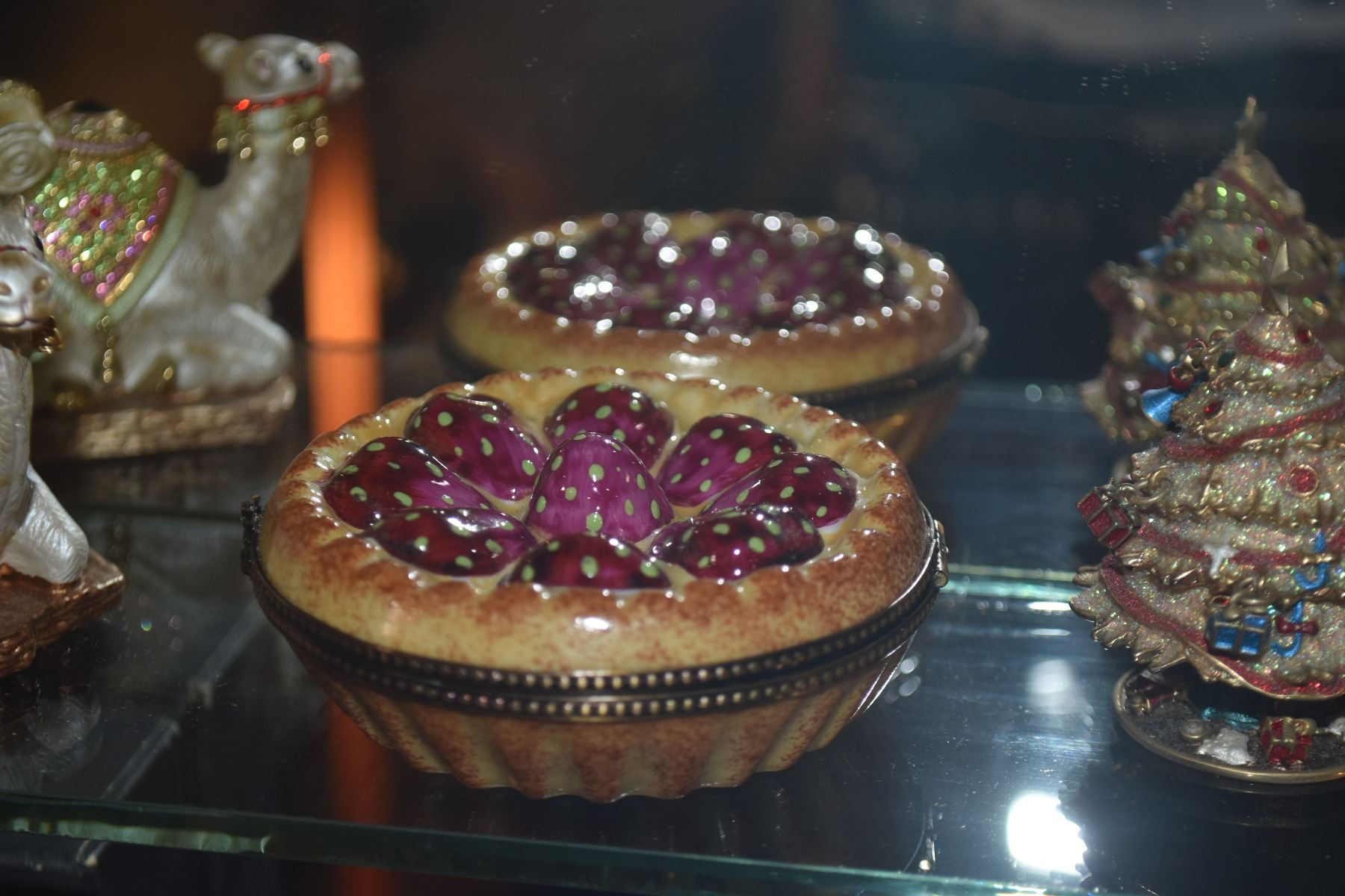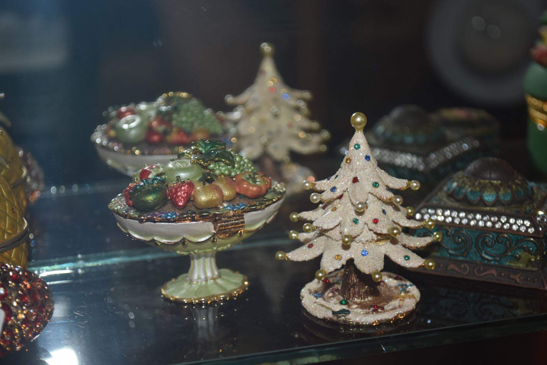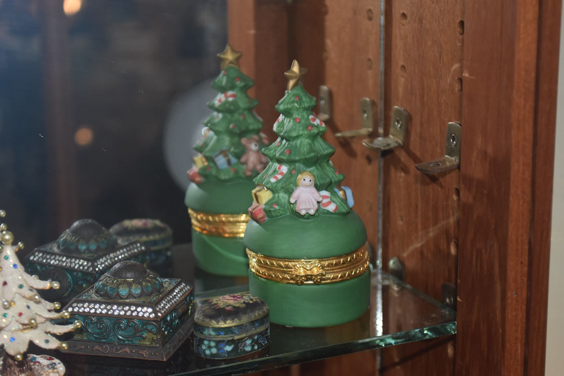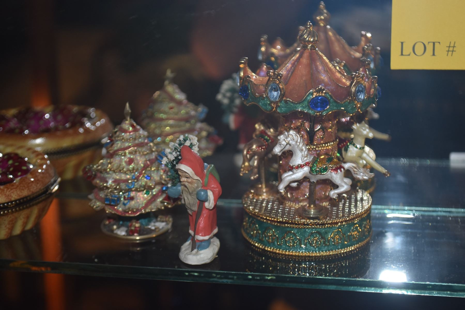 COLLECTION OF FIGURAL BOXES & MINIATURE SANTA FIGURE (14 PCS)